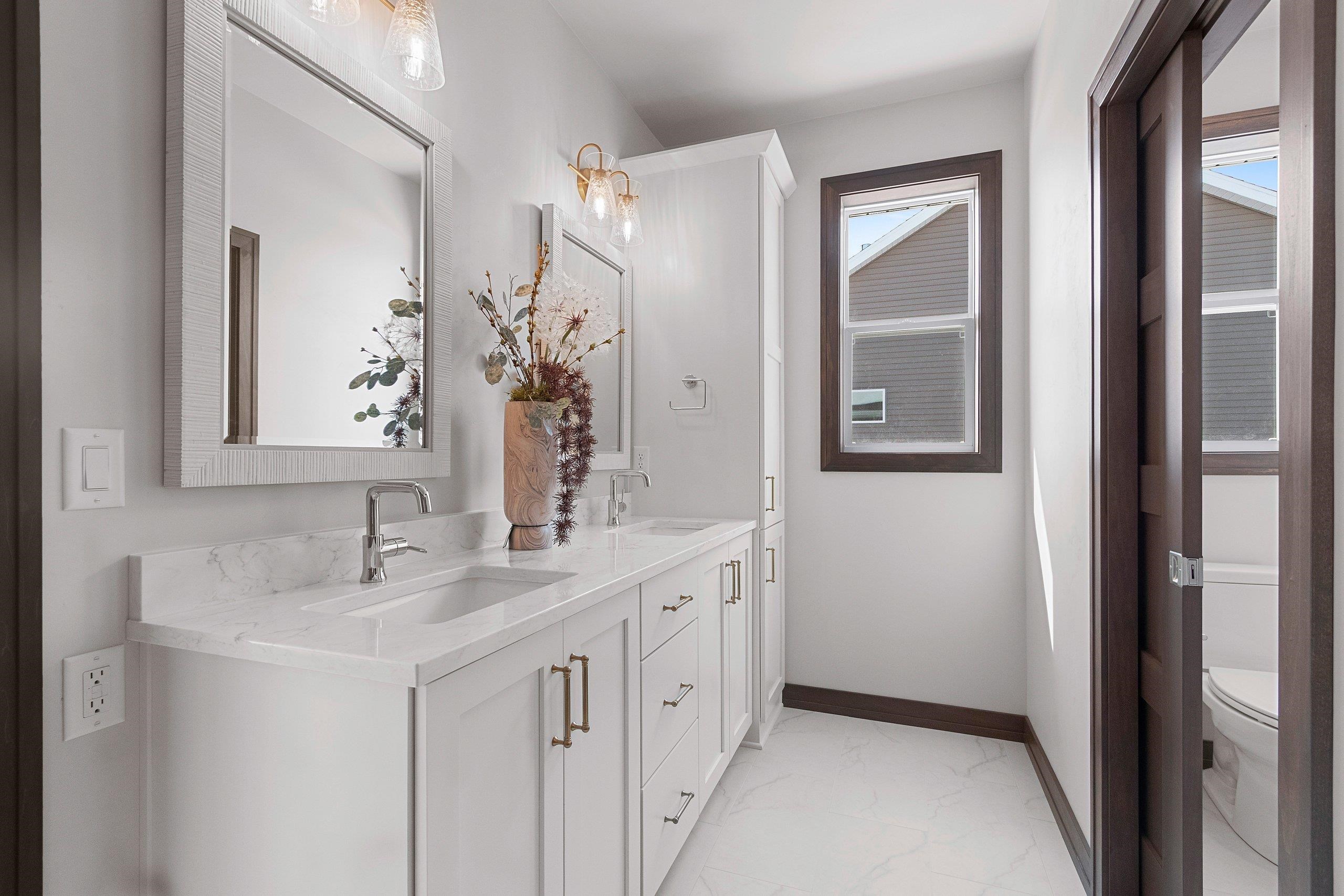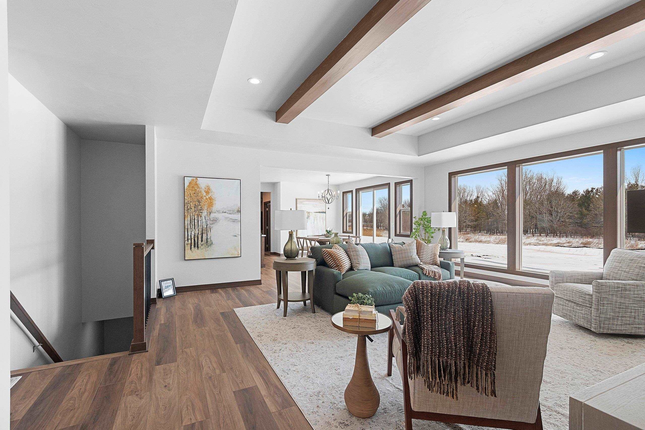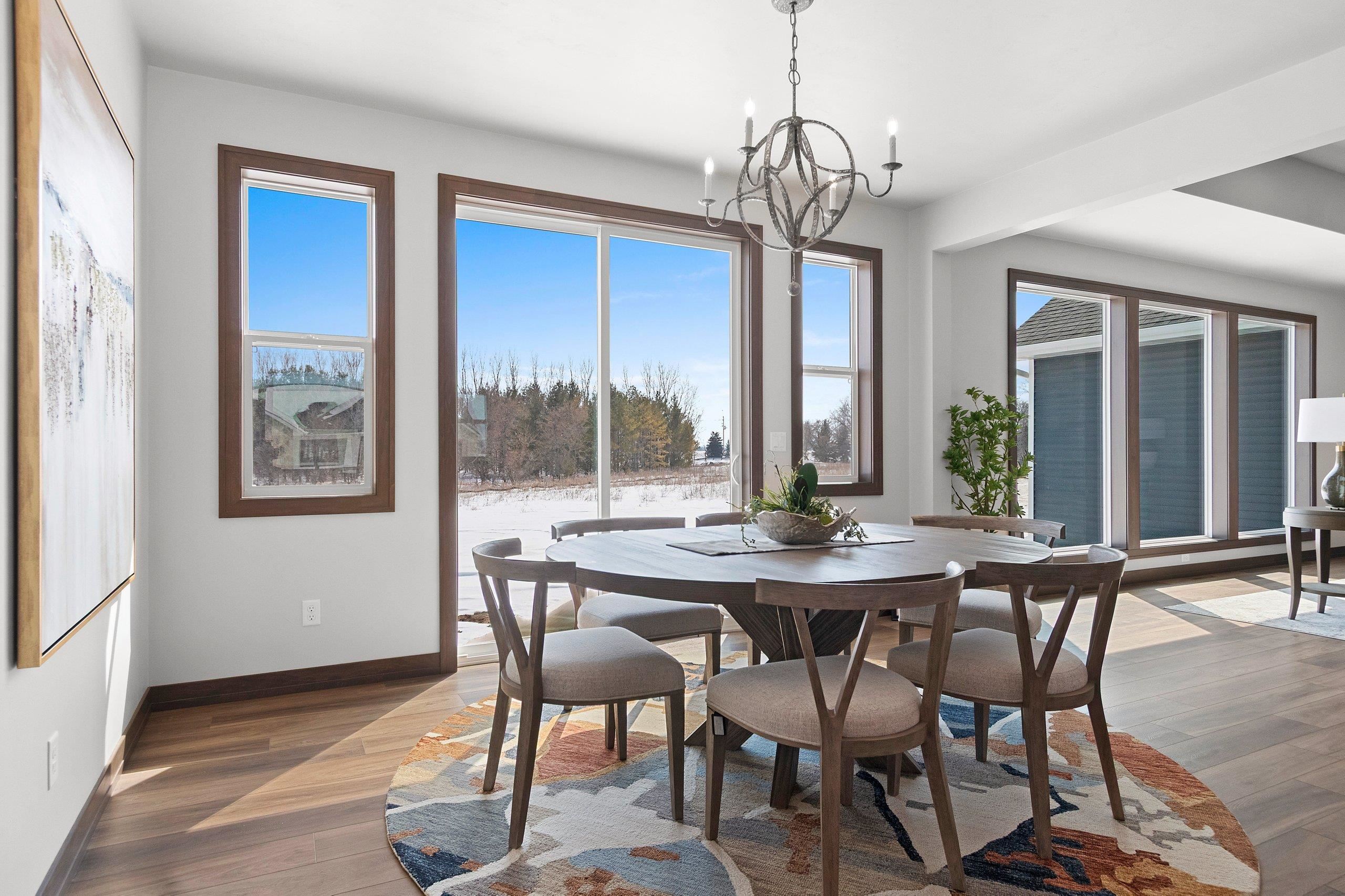 West De Pere living with room to spread out, this 2026 Spring Showcase sits on 1.5 acres and offers a thoughtfully designed space. A covered porch opens to a bright foyer and spacious living room anchored by a gas stone fireplace and tray ceiling. The kitchen delivers both style and function with high-end appliances, abundant cabinetry, an 8' island, and a 10x5 walk-in pantry, flowing easily to the dinette. The primary suite features a tray ceiling, double vanity, zero-entry tiled shower, and a 15x6 walk-in closet. Mudroom, laundry, and half bath add convenience. Heated 3.5-stall garage with extra depth, basement access, and rear door. The backyard opens wide with a 16x12 patio and plenty of space to relax, gather, or play. Lower level offers egress and room to grow.