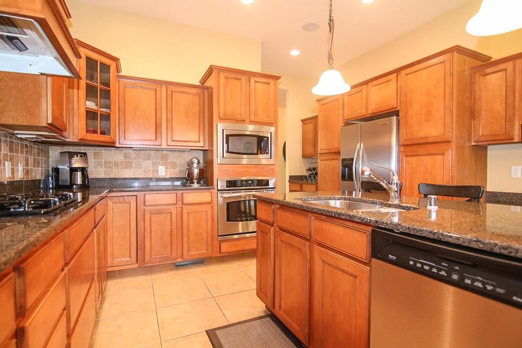 Sit back & take in the amazing sunsets & views from your new home! Classic 4 bdrm ranch w/open layout. Beautiful kitchen features granite counters, travertine backsplash, maple cabinetry & stainless appliances. Walk-out lower level includes 4th bedroom, office & huge family room with dry bar. 10 ft ceilings, built-in speakers throughout, central vac, professional landscaped, new roof in 2011. Within walking distance to neighborhood park & pool!