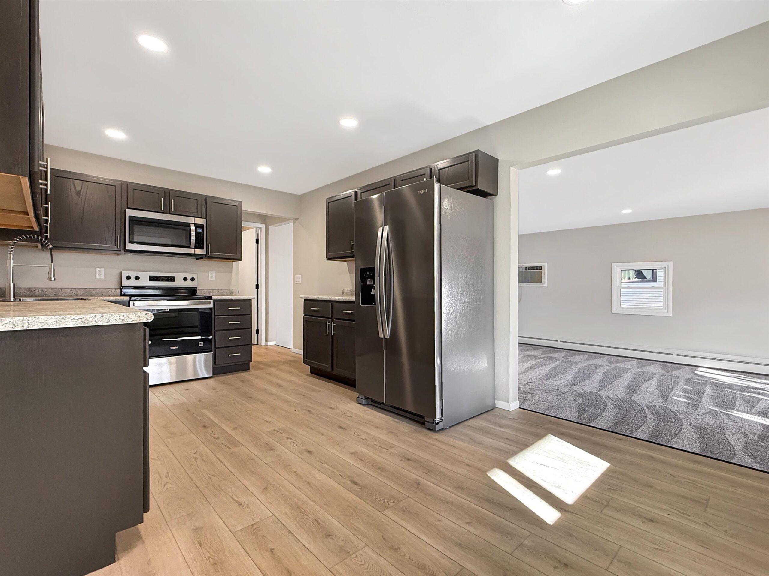 This beautifully updated 3-bd, 1.5-bath one-story home offers convenience & modern comfort, w/in walking distance to schools. Extensively remodeled, with new flooring throughout, fresh interior paint, updated lighting, & new fixtures. The completely renovated kitchen boasts brand-new cabinetry, countertops, fixtures, & stainless steel appliances. Fully remodeled full bath, & a new half bath has been added in the lower level, where you will find a spacious flex area ideal for a family room, office, or gym, along with plenty of storage space. The main-level family room offers new French exterior doors that open to a concrete patio. Additional major updates include professionally replaced windows (except the FR window) a new gas hot water boiler, new front door, & a new overhead garage door.