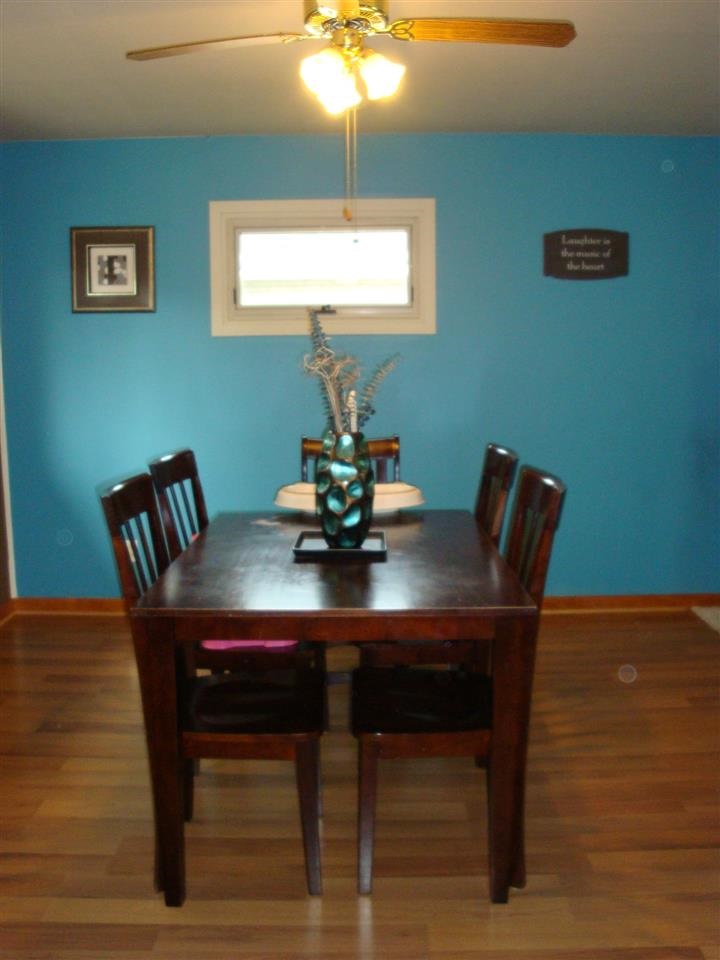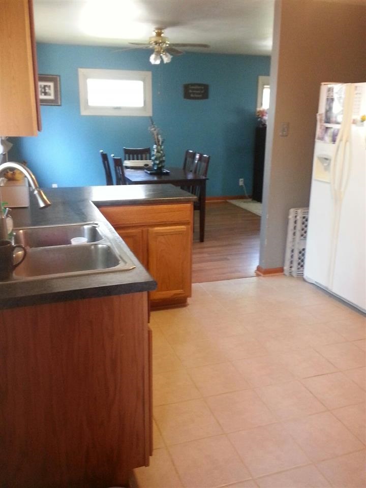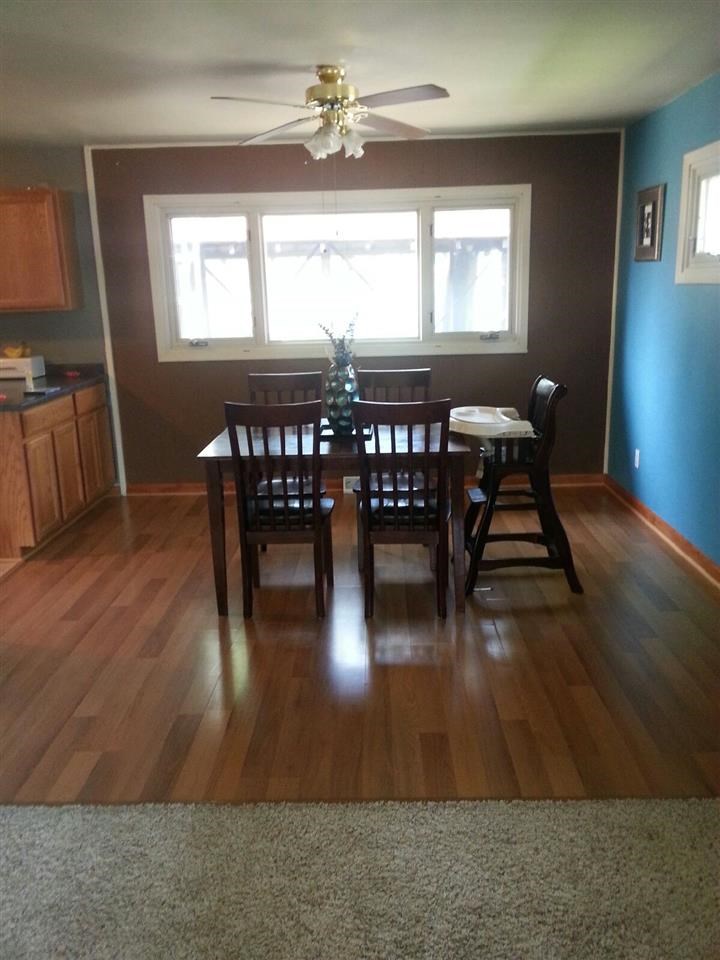 Perfect size home with many updates. New kitchen cabinets, countertops, tile floor, appliances. Laminate in dinette. Remodeled bathroom. 3rd bedroom has been converted to laundry/play room. Could be moved back to basement if desired. Hardwood floors throughout except kitchen. Newer awning style windows provide extra privacy. Includes a whole house fan, reverse osmosis and a new roof! Exterior features fenced yard, screened gazebo and play set. Everything you need for your own private backyard oasis!