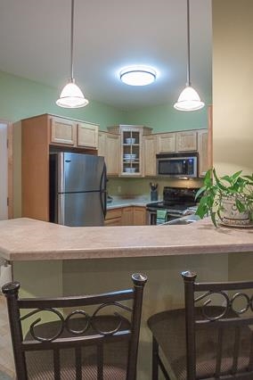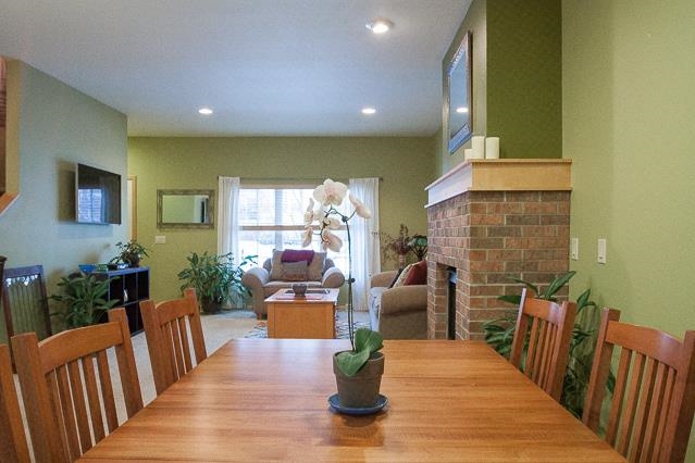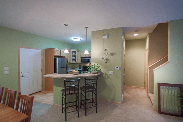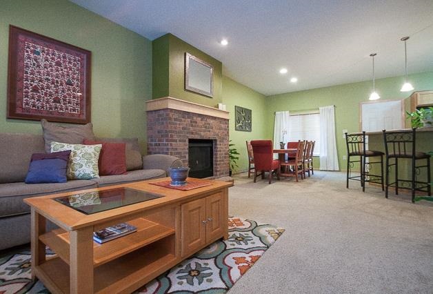 Come home at the end of the day and relax in your modern, low-maintenance condo. Cook a meal for friends in the kitchen as they linger at the breakfast bar or in the open living room near the brick, gas-burning fireplace. Entertain in the finished, exposed lower level which would also make a great guest room thanks to a full bath. Upstairs offers two large bedrooms with vaulted ceilings and a master with a walk-in closet. This lovely town home includes a private patio and 2-car garage.