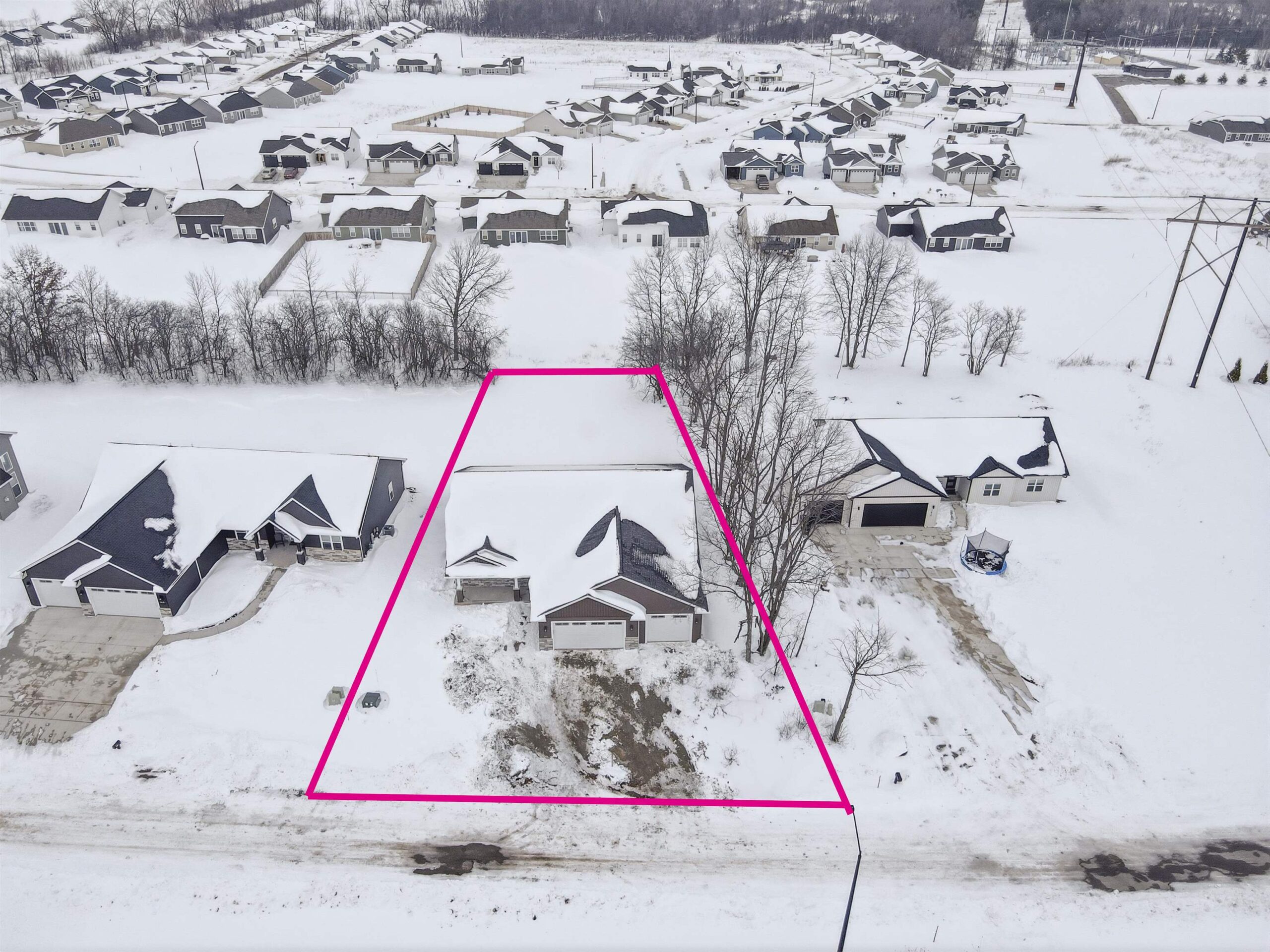 Brand new 4 BR with finished LL. Neenah schools in a newly developed subdivision. Fall in love with this 4 car extra deep garage w/60+ feet deep and has garage door out the back! A private lot with mature trees on the lot line. This new construction stands out featuring a full SS appliance package, window treatments, driveway, back patio & finished lower level! Granite throughout the entire property. Primary features vaulted ceiling, HUGE WIC, full BA with double vanities and tiled WIS w/ glass door. LL welcomes family room, full bath and 2 BRs. Walk up attic in garage and stairs to basement. Future special assessments for curb, gutter, finished street and final apron will be assessed to homeowner in the future when completed. Current driveway apron is temporary for convenience to buyer.