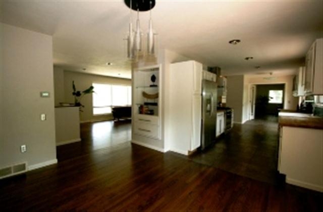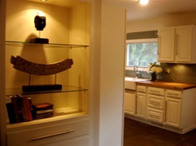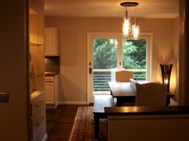 Modern Asian zen ranch re-imagined w/dark hardwood fllors, slate/travertine bathrooms w/tempered glass showers & jacuzzi tub, modern kitchend w/stainles steel appliances, 3 bedrooms on main level - master connected to private bath, living room w/natural fireplace, study area open to kitchen, multi-tiered deck w/zen room, exposed asement w/bamboo floors & study, laundry room w/washer & dryer, large wooded lot, attached 2 car garage & treehouse big enough for the whole family. Available 7/1.