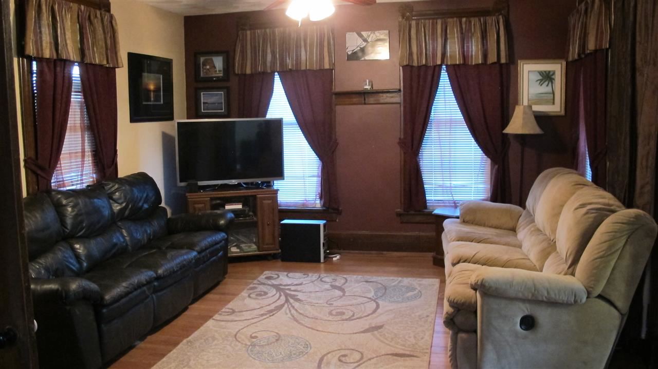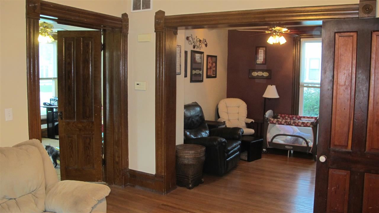 Beautiful three bedroom home offers an updated kitchen, first floor laundry hardwood floors, family friendly layout and porches. The large fenced in yard is a plus for any family. Home also offers a two car garage with plenty of parking. The corner lot location keeps you centered to schools, parks, golf course and the downtown.