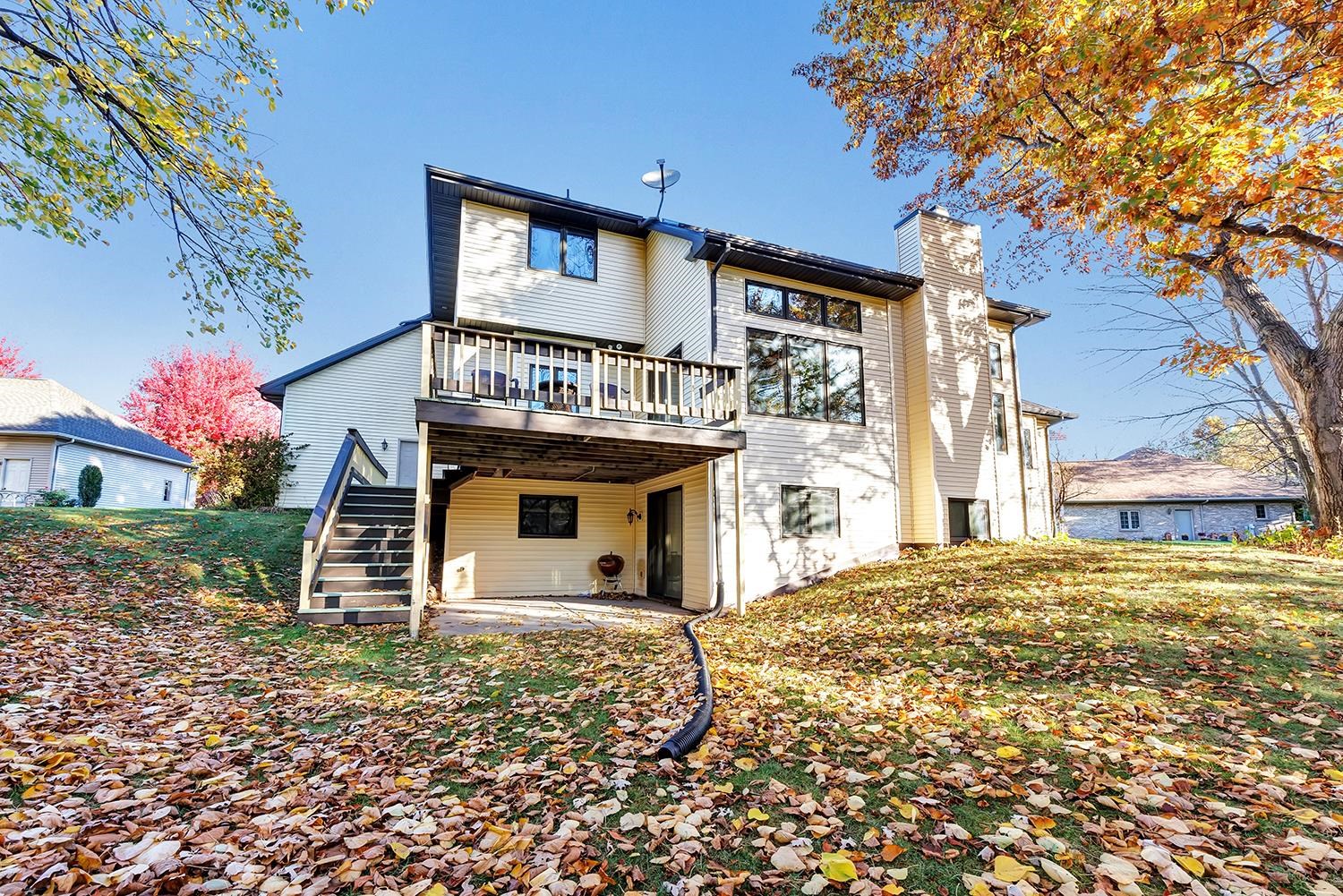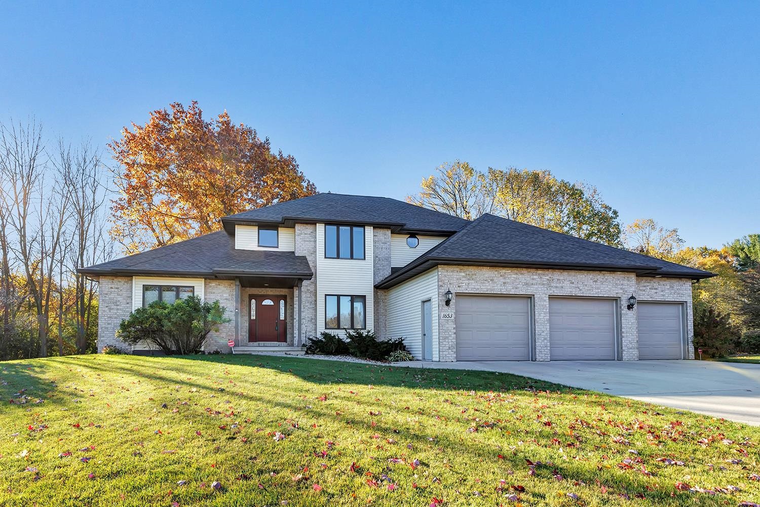 Stunning West De Pere Home! Nestled on a peaceful cul-de-sac, this breathtaking 2.5-acre setting offers deck and patio overlooking the wooded backdrop. Great room impresses with its soaring ceiling, expansive windows and cozy fireplace offering an inviting space to relax and entertain. Open to kitchen and dining featuring center island and walk-in pantry. Leads to a sun-filled 4-season room flowing seamlessly to the outdoor living spaces. 1st floor primary suite boasts lighted tray ceiling, transom-topped entry to generous walk-in closet and bath with jetted tub, heated floor, dual sinks and walk-in shower with dual showerheads. 1st office and laundry room provide added convenience. Upstairs, there are 2 more bedrooms, a bath and spacious cedar-lined closet offering exceptional storage.
