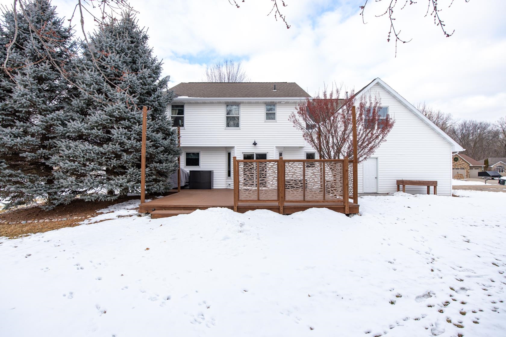 Beautiful 2-story home offering 4 BRs and 2.5 bath in a highly desirable neighborhood. The flexible 4th BR can easily serve as a spacious bonus room, home office, or guest space. The inviting living room features a cozy fireplace and is complemented by a main level that includes convenient first floor laundry. The kitchen offers a built in buffet area, perfect for extra storage and entertaining. The finished lower level expands your living space with a rec room and family room highlighted by a bar area ideal for gatherings. Step outside to a gorgeous private backyard with a Trex deck-perfect for relaxing or hosting. A super-sized 2.5 car garage provides exceptional storage. A wonderful blend of comfort, space and lifestyle. Sellers request 72 hours for binding acceptance.
