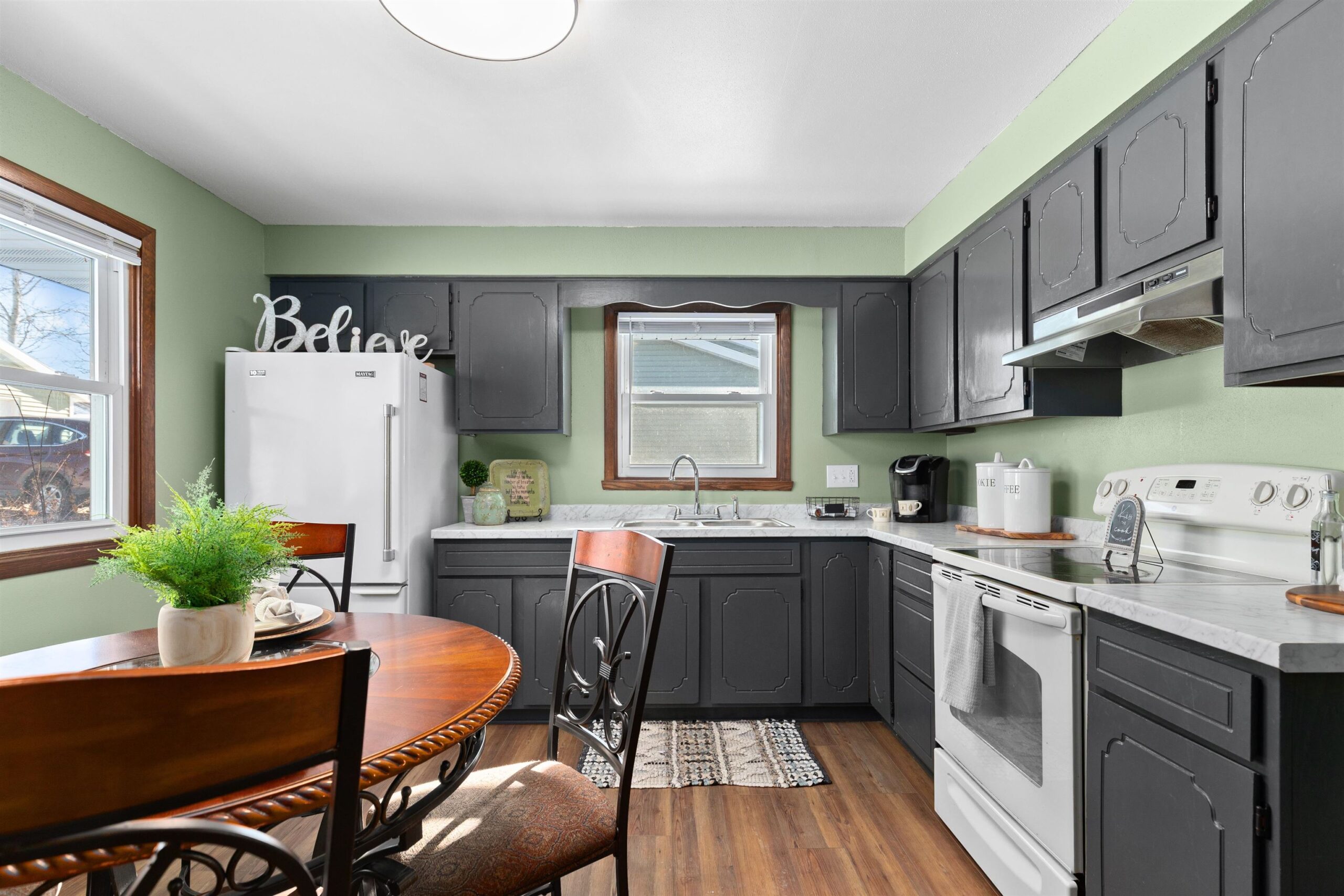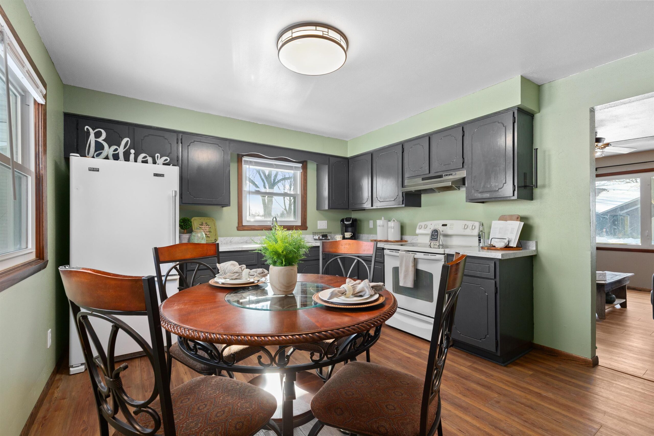 Stop your search at this beautifully modernized 3-bedroom, 2-full bath ranch! From the moment you cross the threshold, the sun-drenched gathering room creates an inviting atmosphere for both quiet mornings & lively evenings. The seamless flow of new flooring & lighting fixtures throughout the first floor elevates the entire home. The kitchen offers new countertops & freshly painted cabinetry & direct access to the backyard for easy entertaining. The true showstopper is the fully finished basement, offering a massive recreation room, private home office, second full bath, & a specialized shop/workout space. Enjoy your private fully fenced backyard, complete w/a detached garage for added storage. With fresh updates & incredible versatility throughout, this is the perfect place to call home!