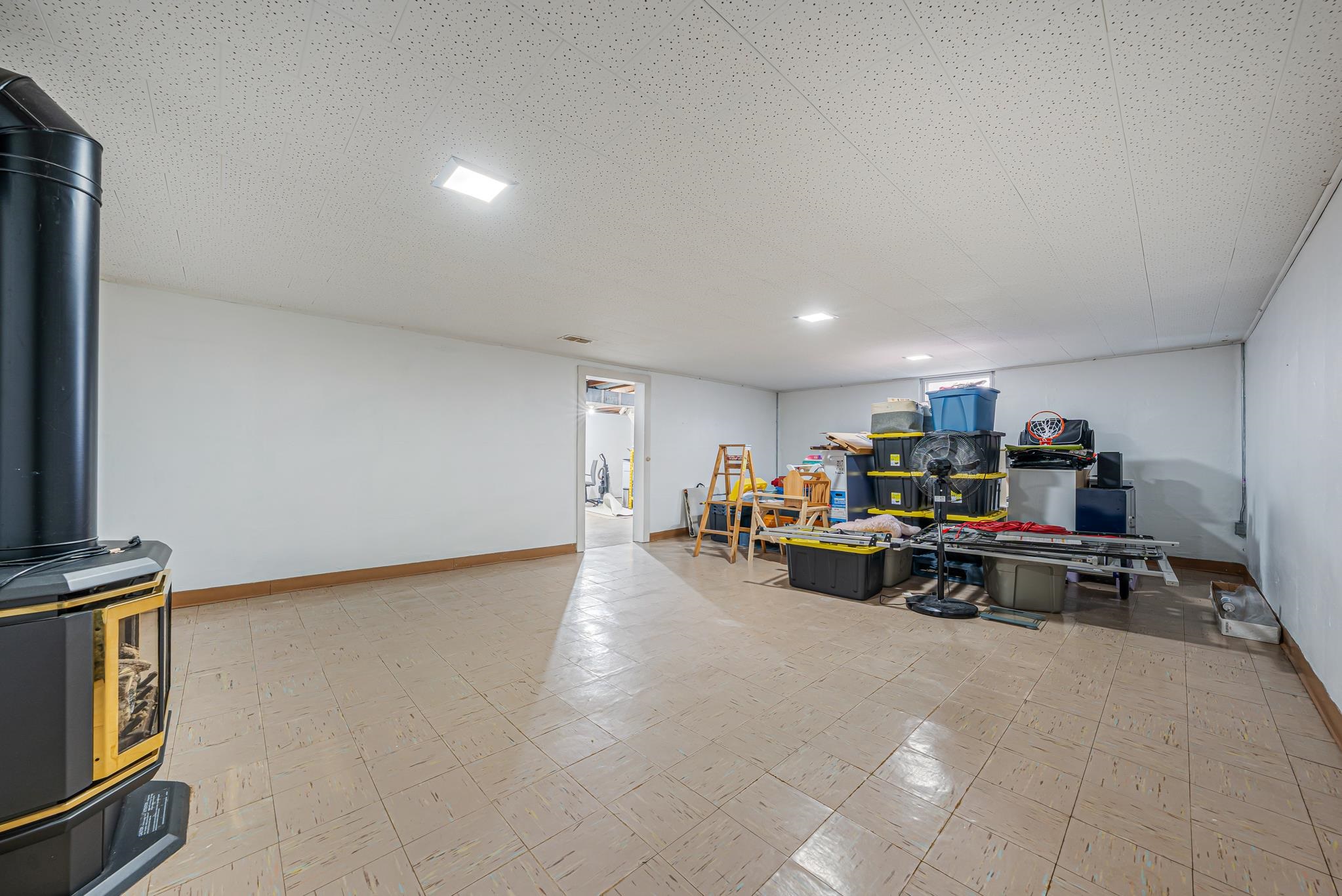 T.V and mount, metal storage shelving, basement freezer and Seller's Personal Property