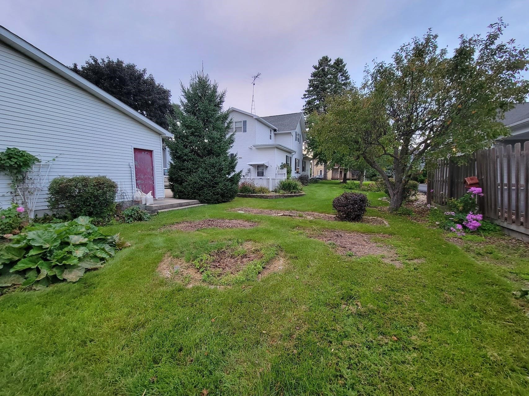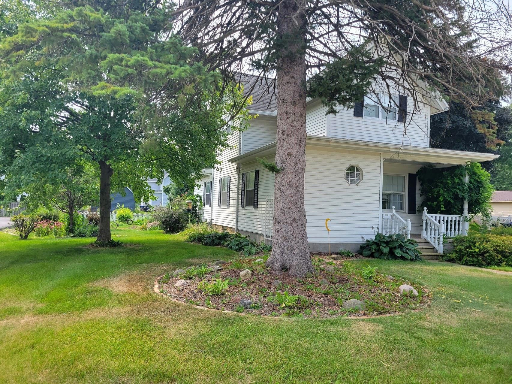 Spacious 4-Bedroom 2-Story Home and a detached 2.5-car garage with a modine LP gas heater on a .23 acre nicely landscaped yard with a multitude of beautiful perennial beds and mature trees. There is a breakfast bar in the kitchen, a large L-shaped living room and dining area, den/office on main floor, beautiful original hardwood flooring, full bathroom on main floor plus a toilet & shower in the basement and lots of storage area. Nice covered front porch, back patio, within walking distance to schools, parks, library and local businesses.