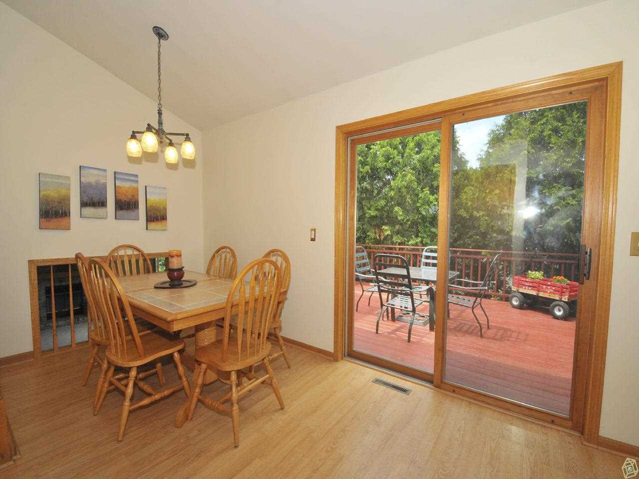 Attractive 3 bedroom tri-level home on beautiful lot in popular NW neighborhood of Stoughton. Cathedral ceilings in living room & kitchen with dinette are overlooking large family room with gas fireplace & patio doors out to private backyard. Nice deck off kitchen for easy entertaining. Master suite with big walkin closet & double vanity. New carpet & paint. All appliances, window coverings and home warranty included.