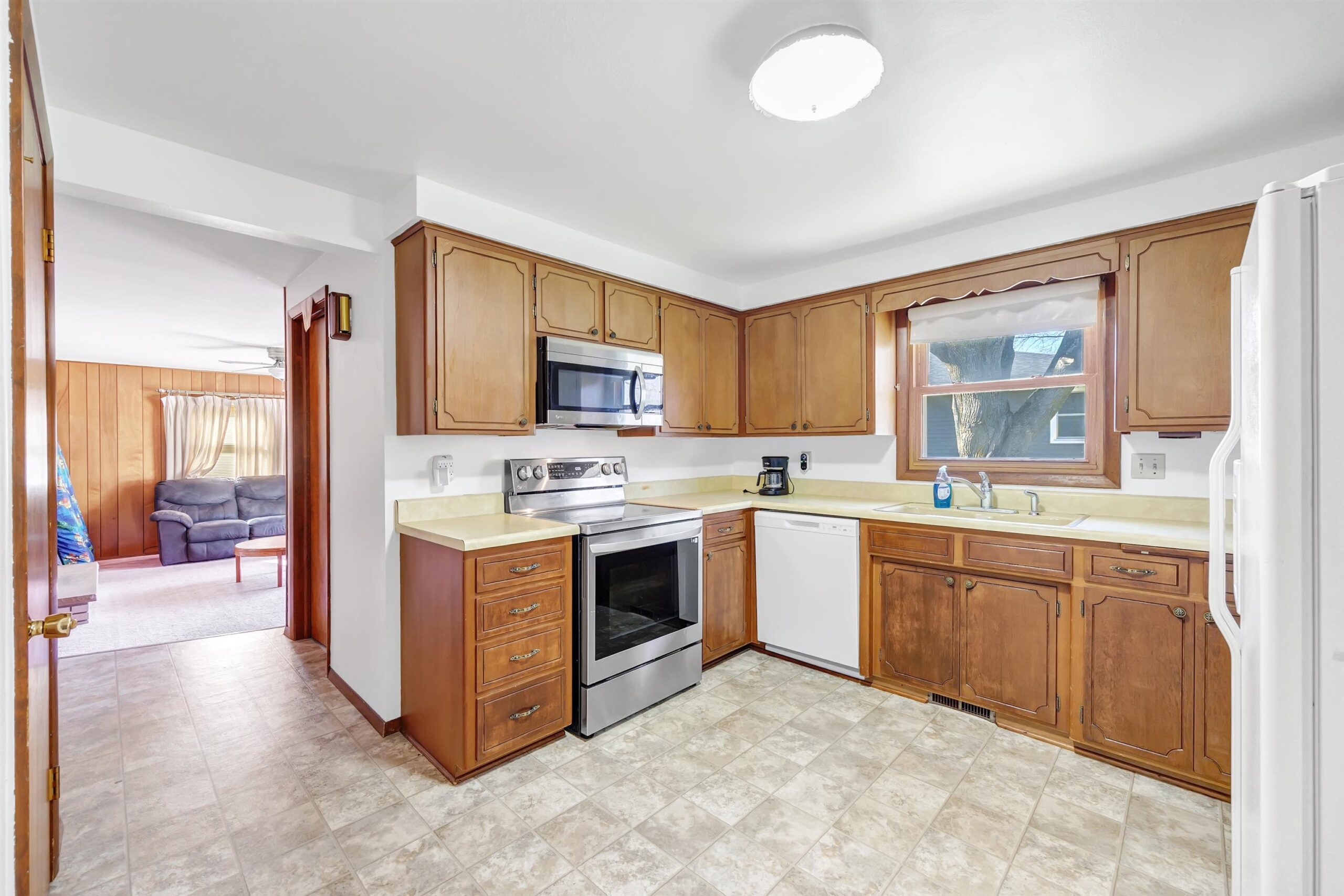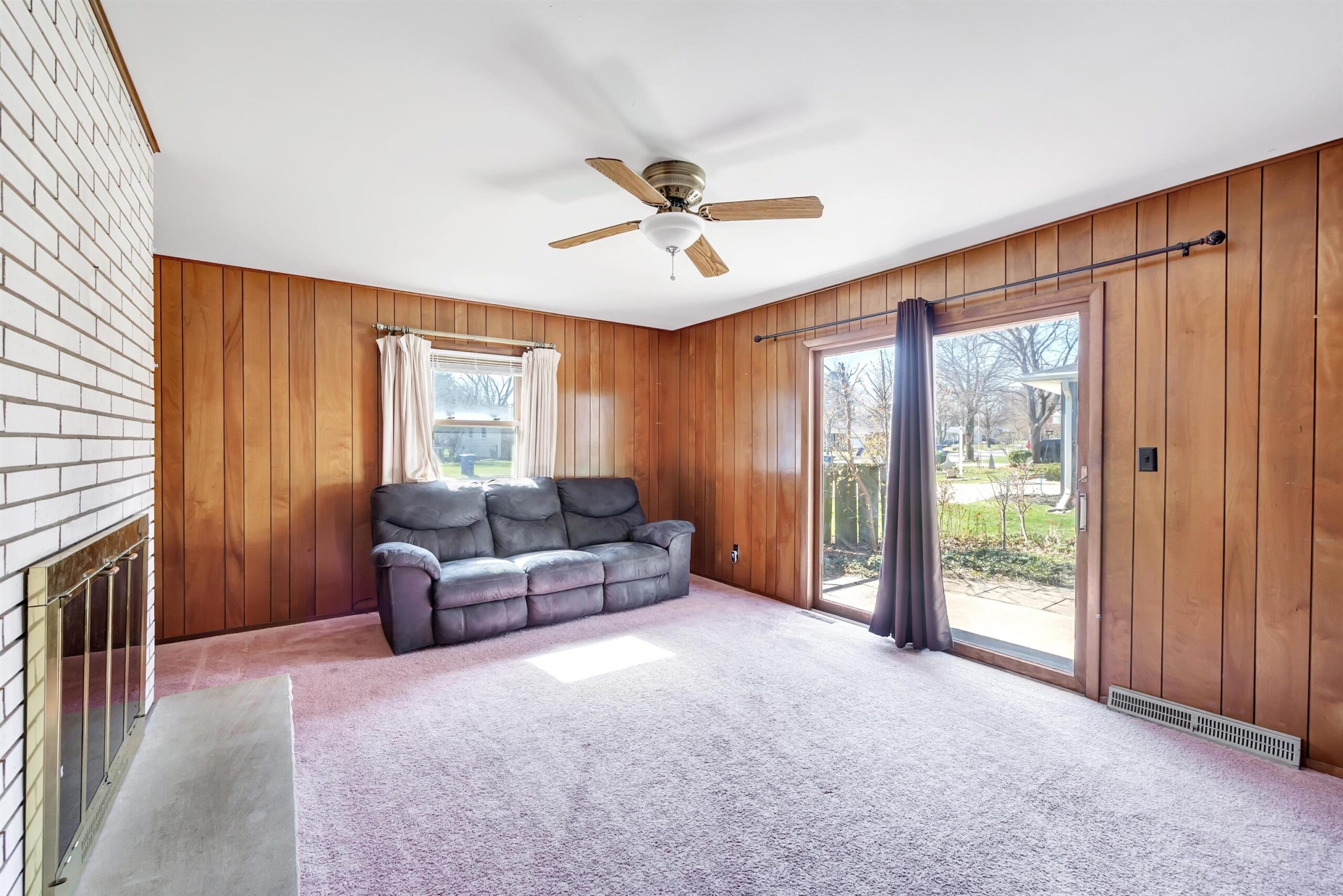 Convenient west side location for this spacious 3-bed 1.5 brick-front ranch home. Large front living room. e bedrooms with hardwood floors. Back Family room with wood-burning fireplace on the main level leading to a private patio. Newer central air. Newer gutter guards. Open and dry basement for future expansion. All appliances included. 2.5-stall attached garage.