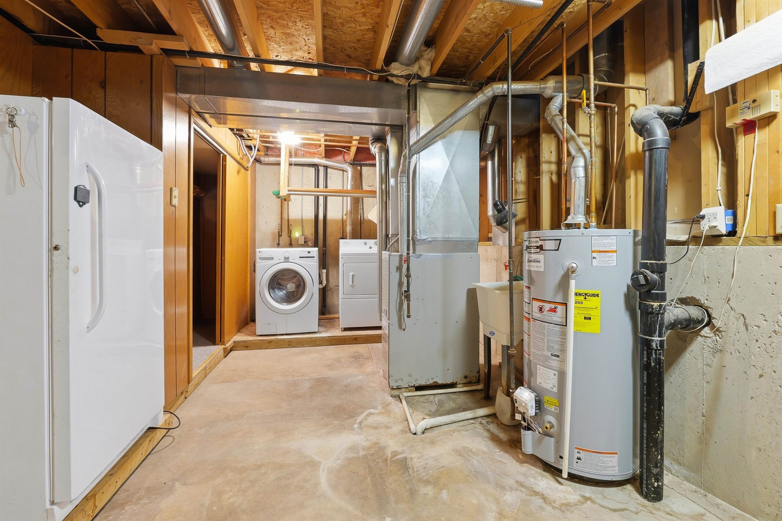 Refrigerator, dishwasher, stove, washer, dryer, stand up freezer in the basement. Lawn ornaments (inc. deer) and pots to remain with the property.