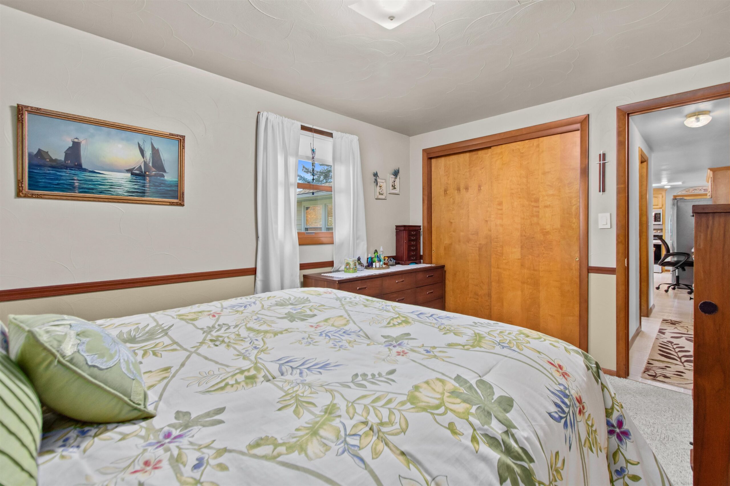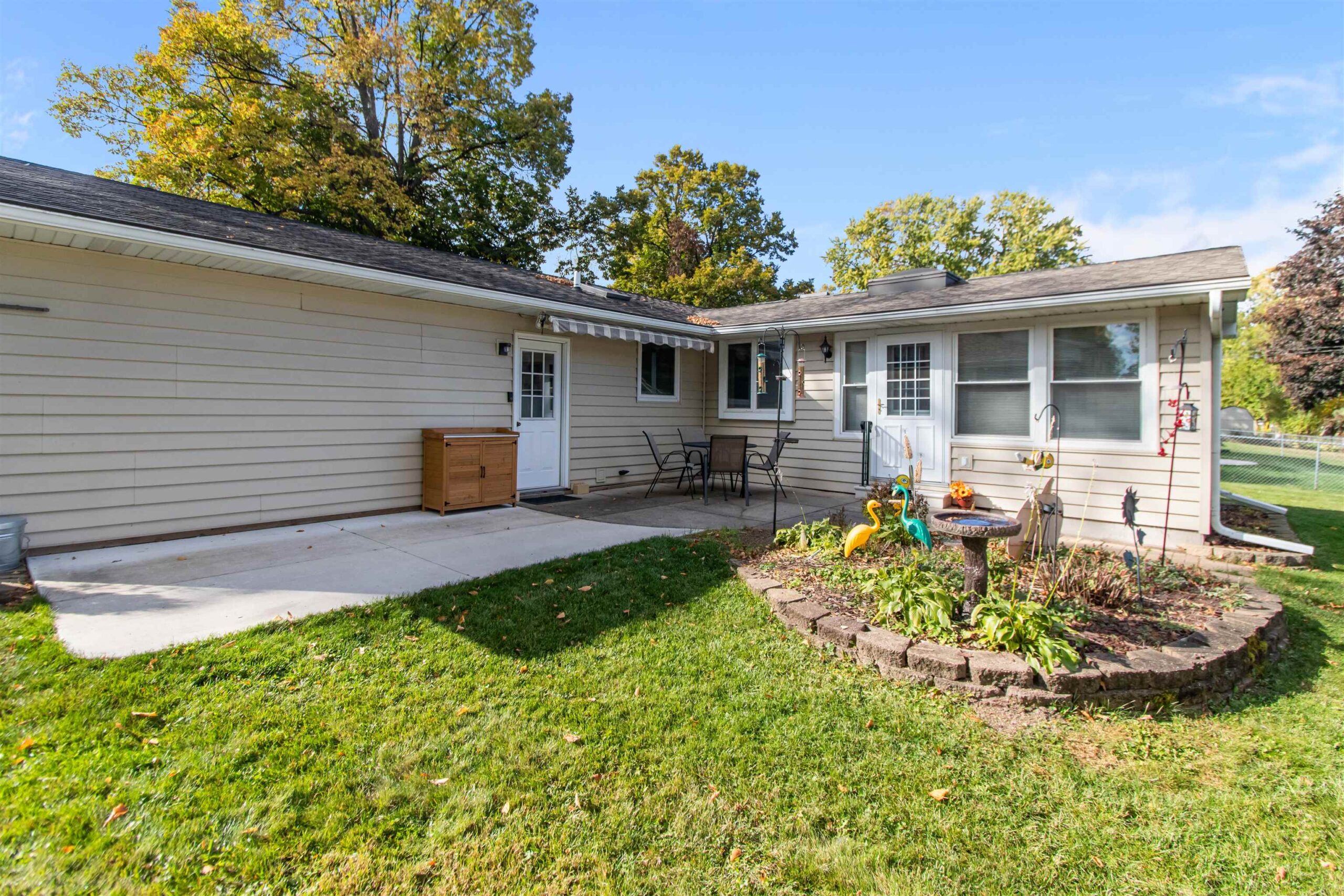This super clean 2-bedroom home can easily be converted back to a 3-bedroom layout — offering flexibility to fit your needs. Enjoy the cozy 3-season porch overlooking a beautifully landscaped backyard with plenty of room to relax or garden (and don’t forget the garden shed for your tools!). Inside, you’ll love the bright bay window in the living room, a main-level laundry with additional hookups in the basement, and a spotless epoxy garage floor. The unfinished full basement provides loads of storage or future living space potential. Built solid and lovingly maintained, this home combines comfort, convenience, and great value — all just minutes from everything Green Bay has to offer!