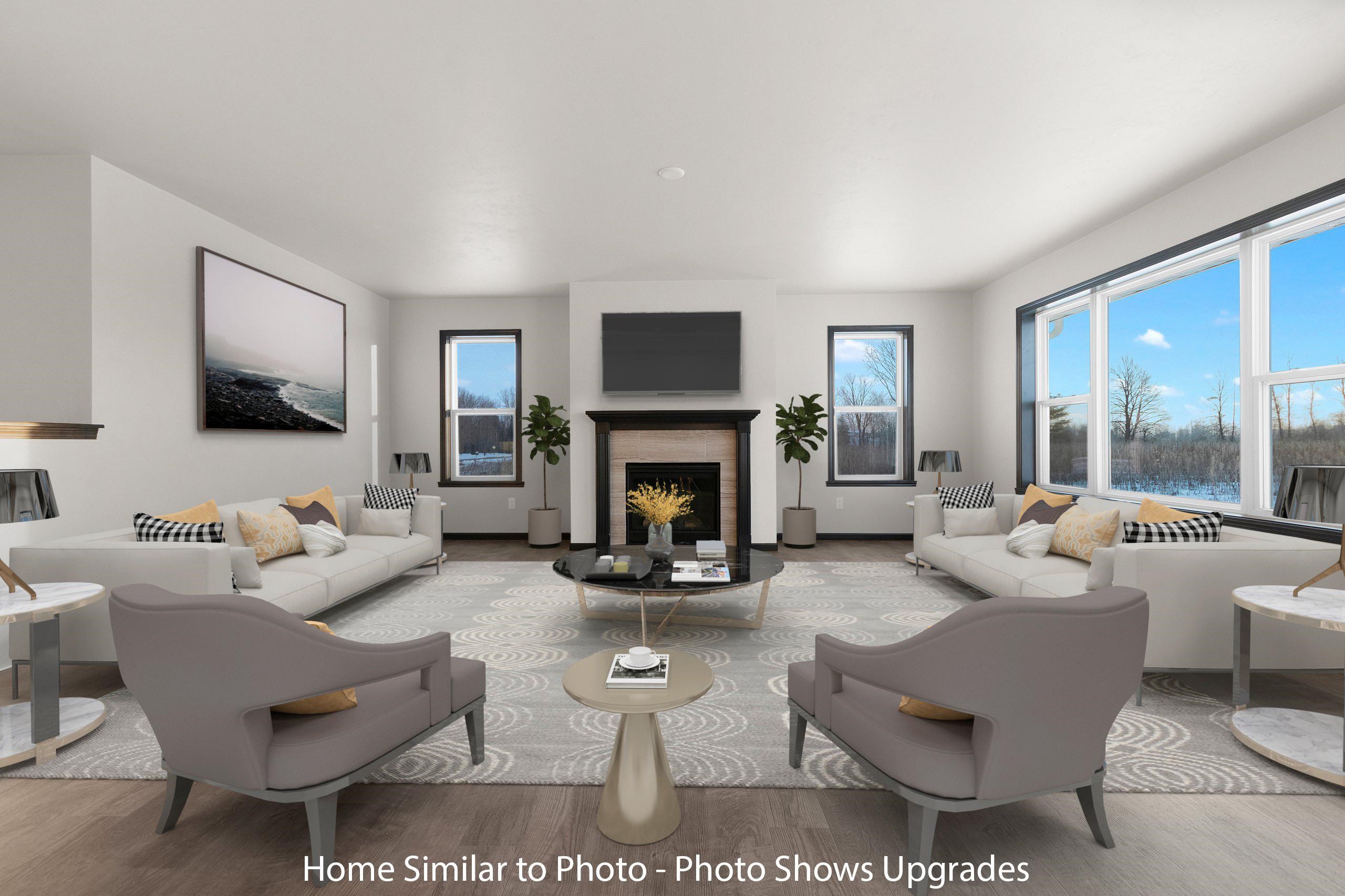 Gorgeous new construction featuring 1,706sf w/3 beds, 2 baths & living room featuring a gas fireplace. Kitchen features an island/snack counter, SS dishwasher, microwave & large walk-in pantry. Master bedroom offers 2 closets, private bath w/double sinks & walk-in shower. Convenient 1st-floor laundry w/lockers & sink. Attached 3-stall garage. Full basement features egress window & plumbed for future bath. Exterior features horizontal & vertical vinyl siding per plan & stone per plan. Main photo is computer generated. Photos are similar but may not be exact. Virtual staging in photos.