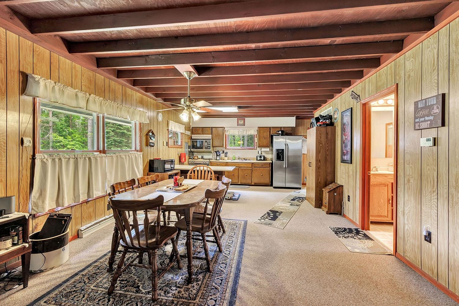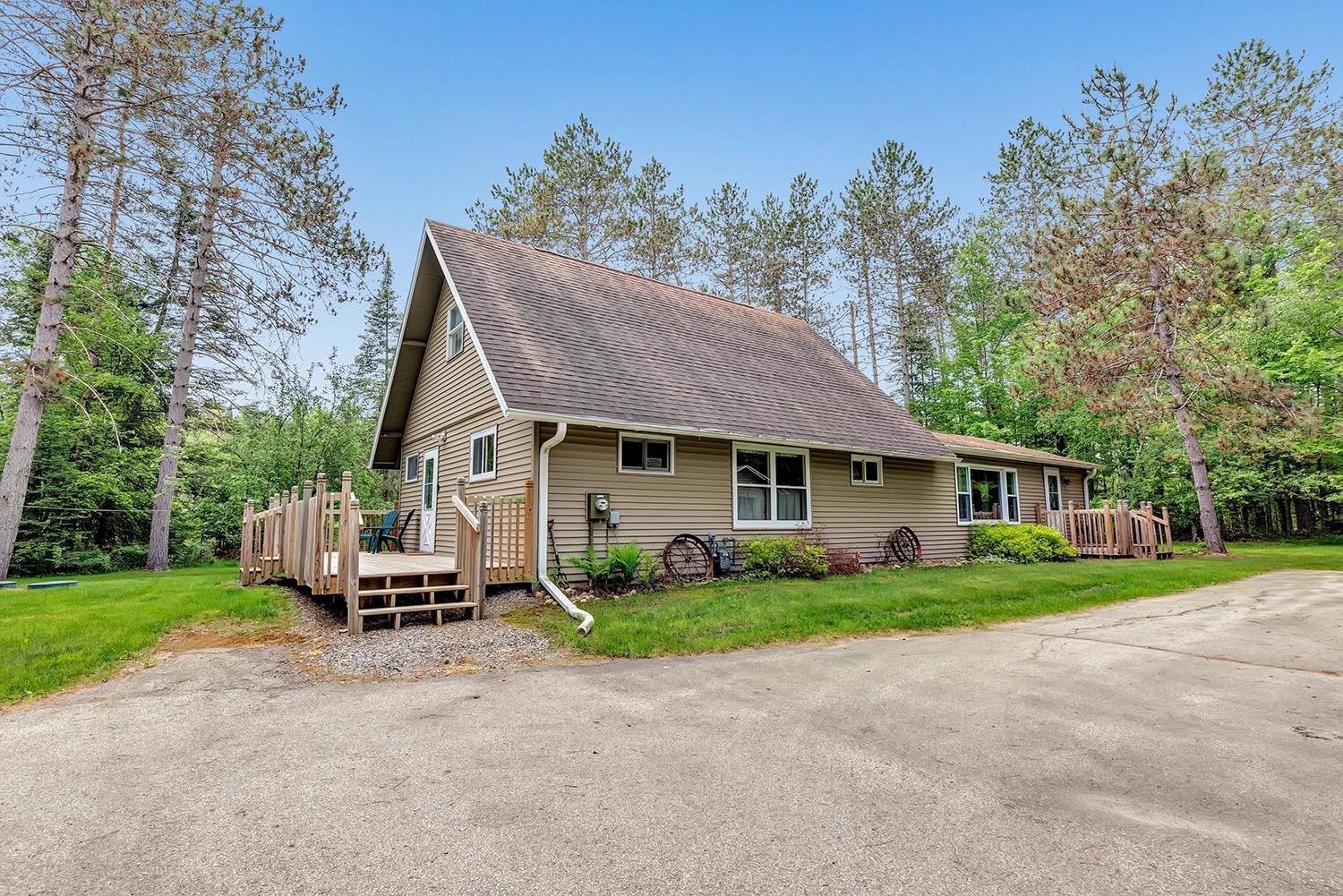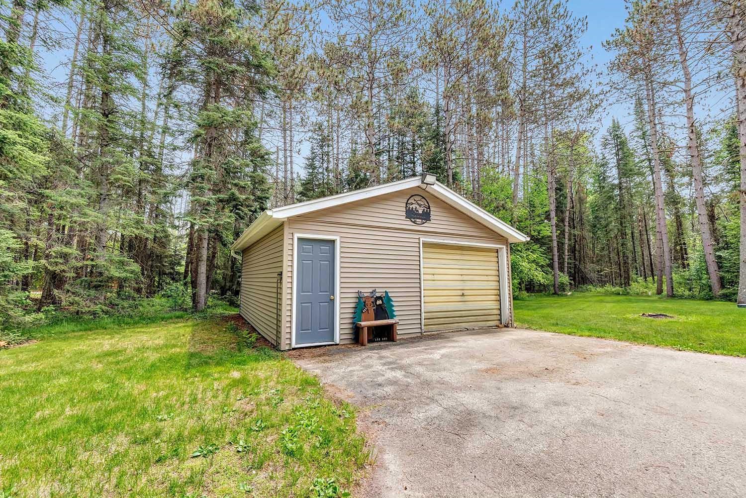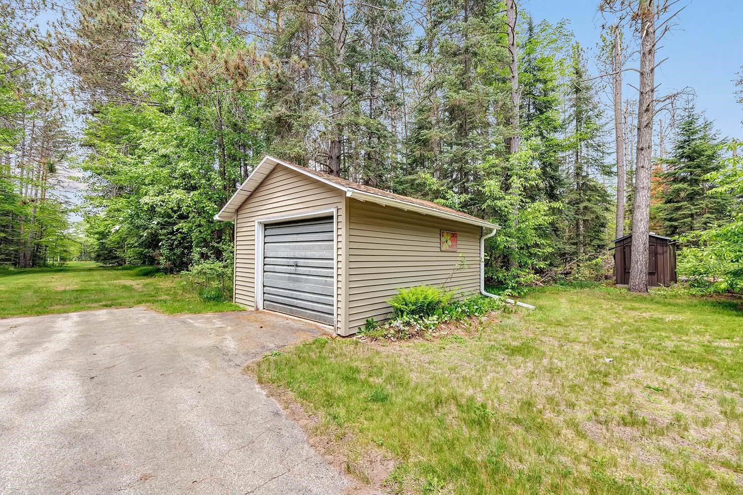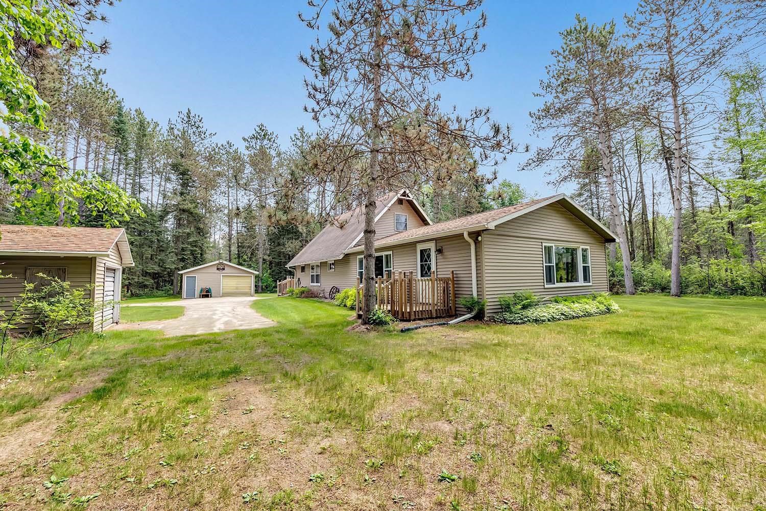 Great Northwoods location on 1.70 private wooded acres with 2 garages. Close to Boot, Bass, Archibald, Reservoir Pond, Townsend Flowage and Horn Lake. There are 3 boat landings within 5 minutes of the property. Town roads are ATV-friendly. Snowmobile and ATV trails accessible on Presbyterian. Spacious home with room for everyone! Kitchen appliances included. Main level bedroom and laundry complete with washer and dryer. Bonus room upstairs used as a bedroom. Many updates: siding on home and garages, LED flood lights, gutter screens, gutters and downspouts and front storm door.