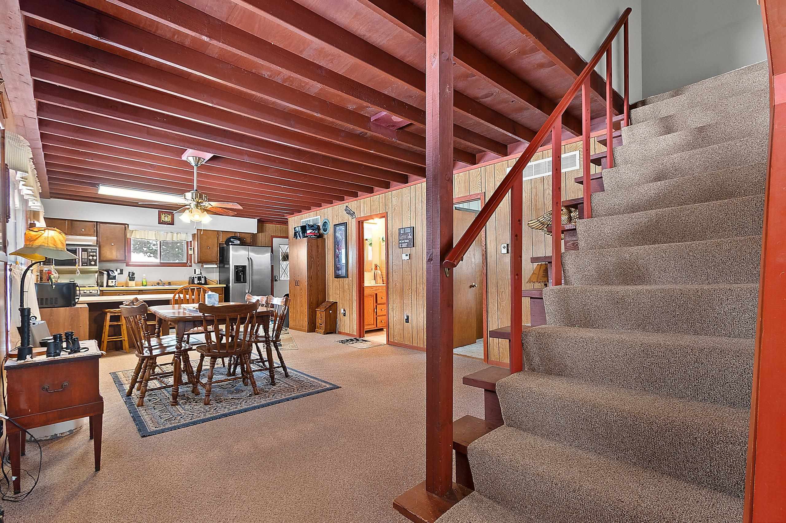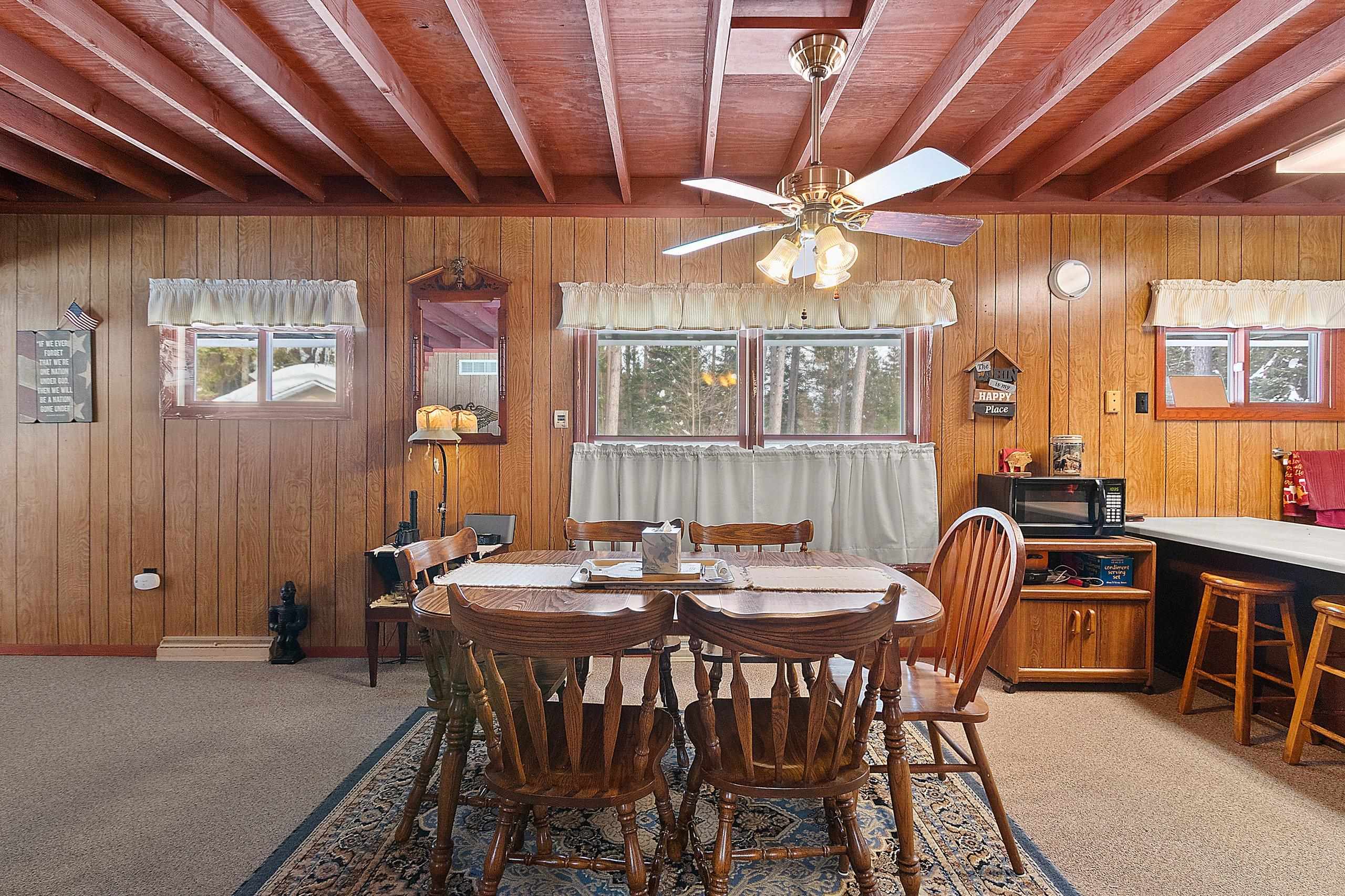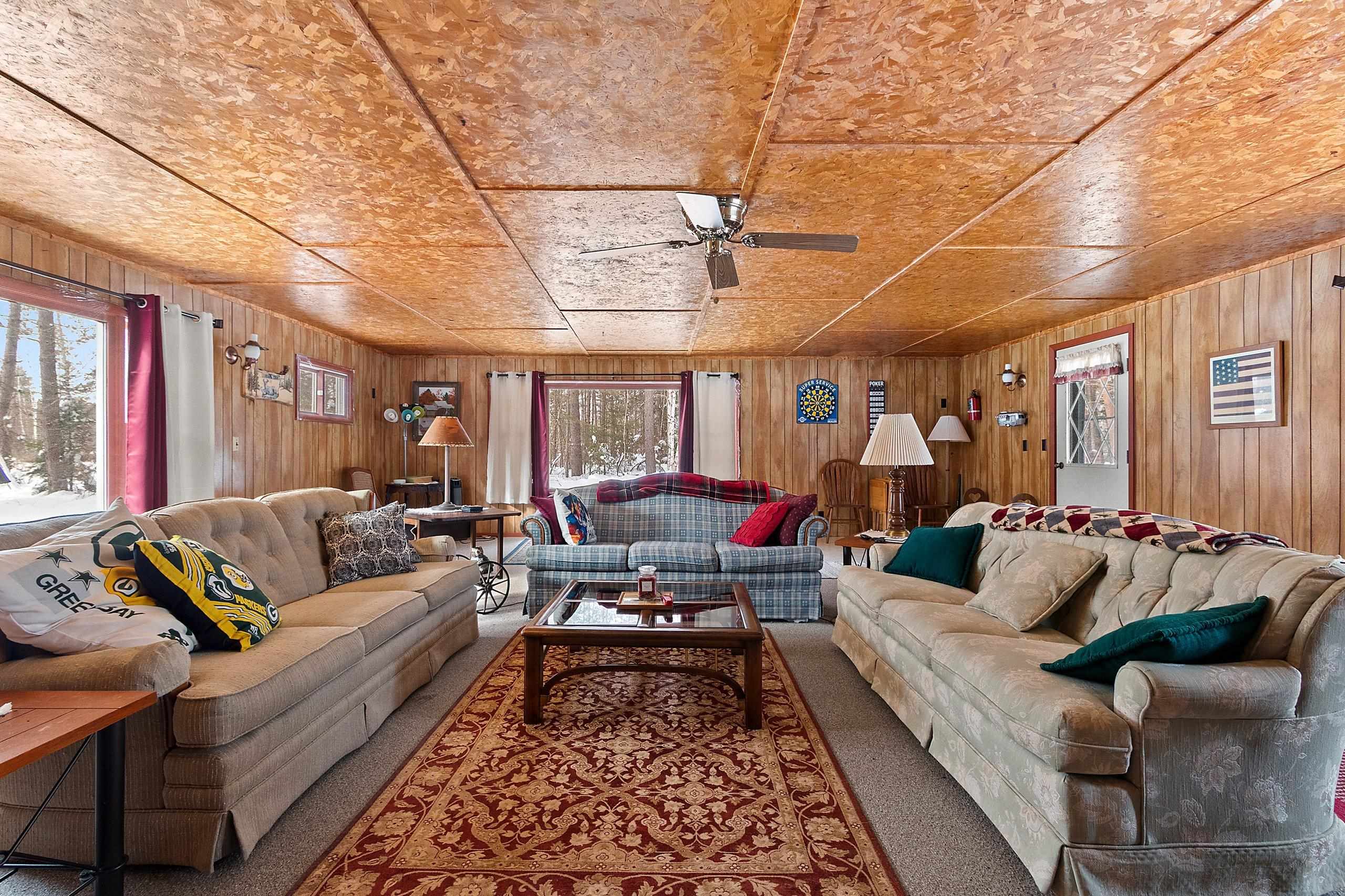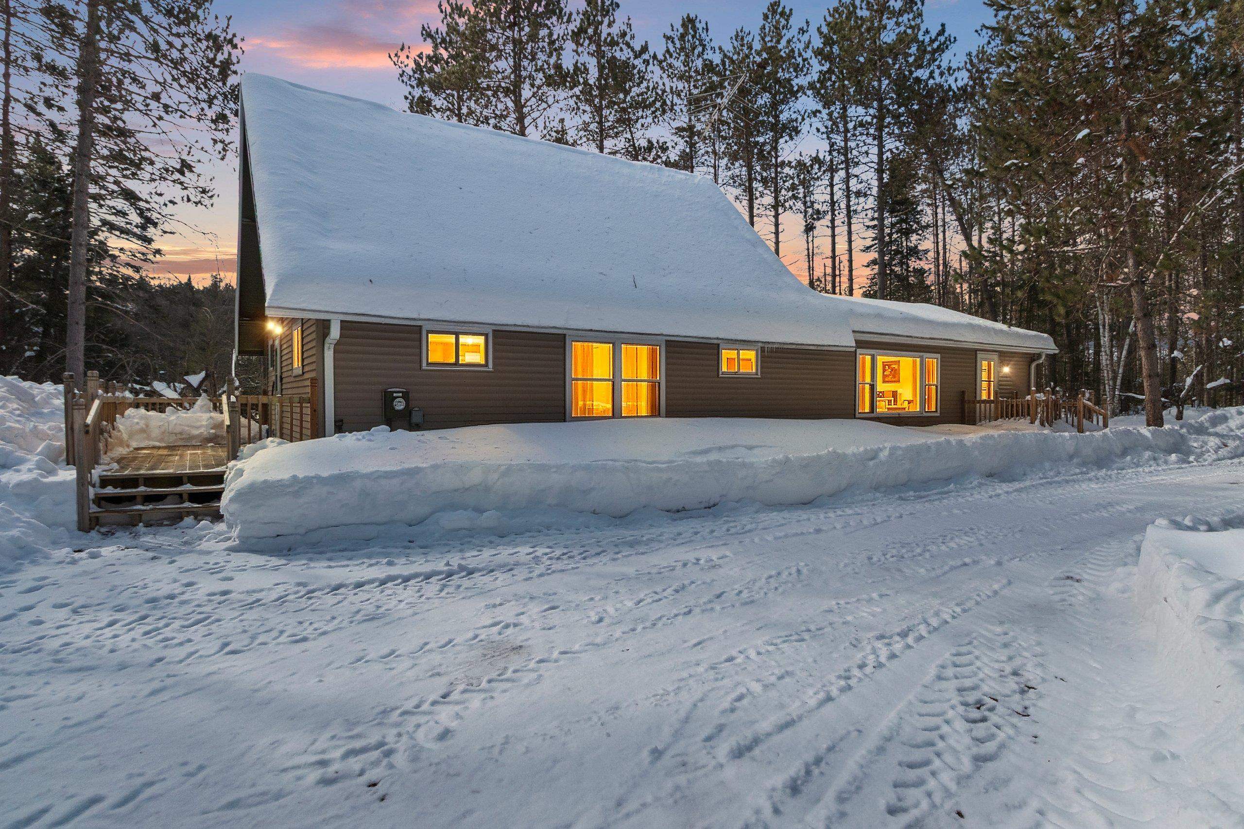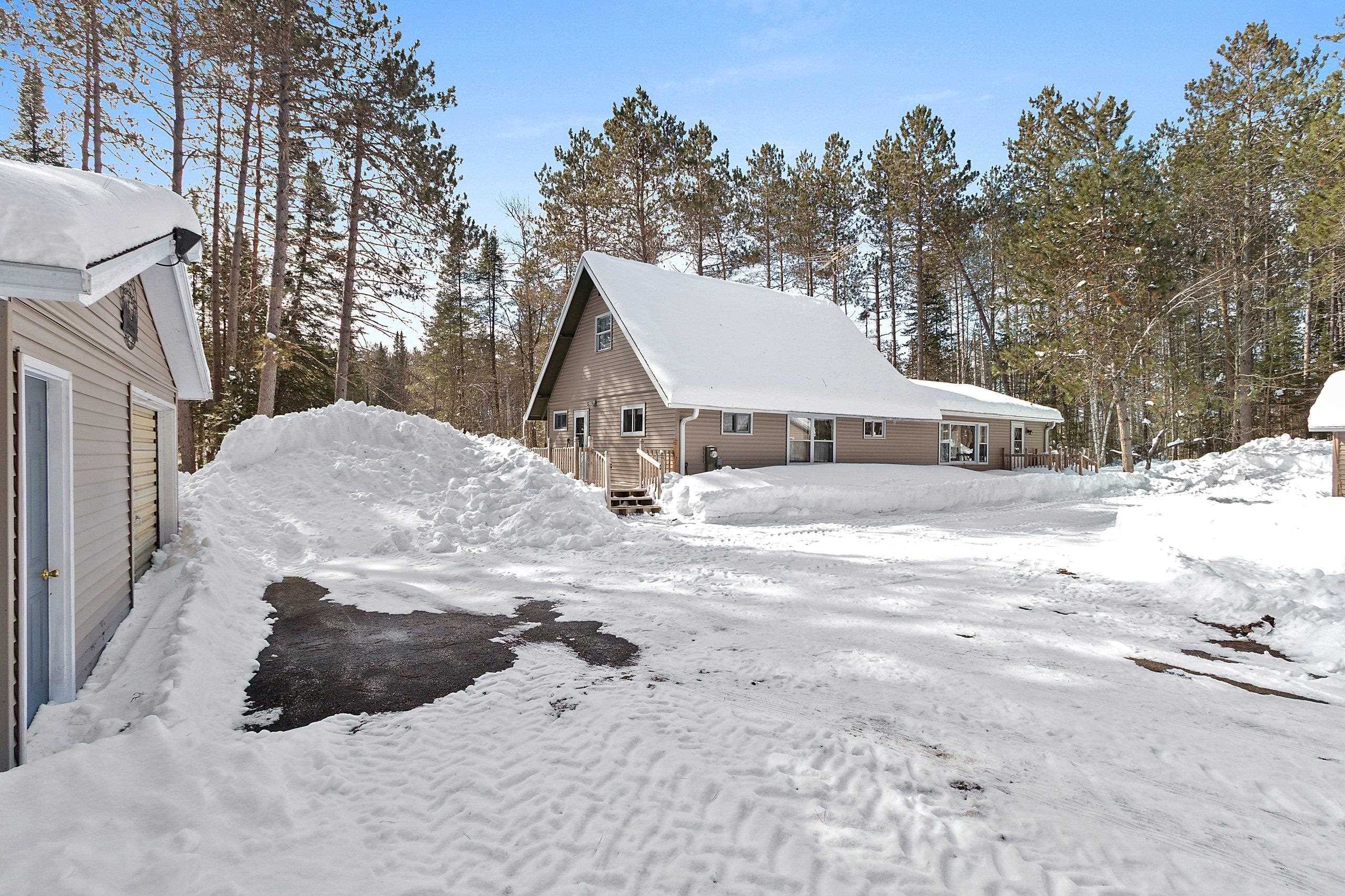 Peaceful wooded setting surrounded by all the Northwoods activities you love! Mostly furnished, move-in ready home is perfect for enjoying right away. Step inside a spacious living room filled w/natural light from large windows, offering beautiful views of the outdoors, an ideal space for gathering & making memories. The main level features a bedroom, full bath, & convenient laundry/mudroom. Upstairs, you’ll find an additional bedroom, a den (with potential to be a third bedroom), & a half bath. Storage won’t be an issue with two garages offering ample space for boats, UTVs, and all your outdoor gear. 1 garage even comes stocked w/seasonal supplies! Enjoy direct trail access and close proximity to numerous area lakes, making this the perfect year-round getaway or full-time retreat.