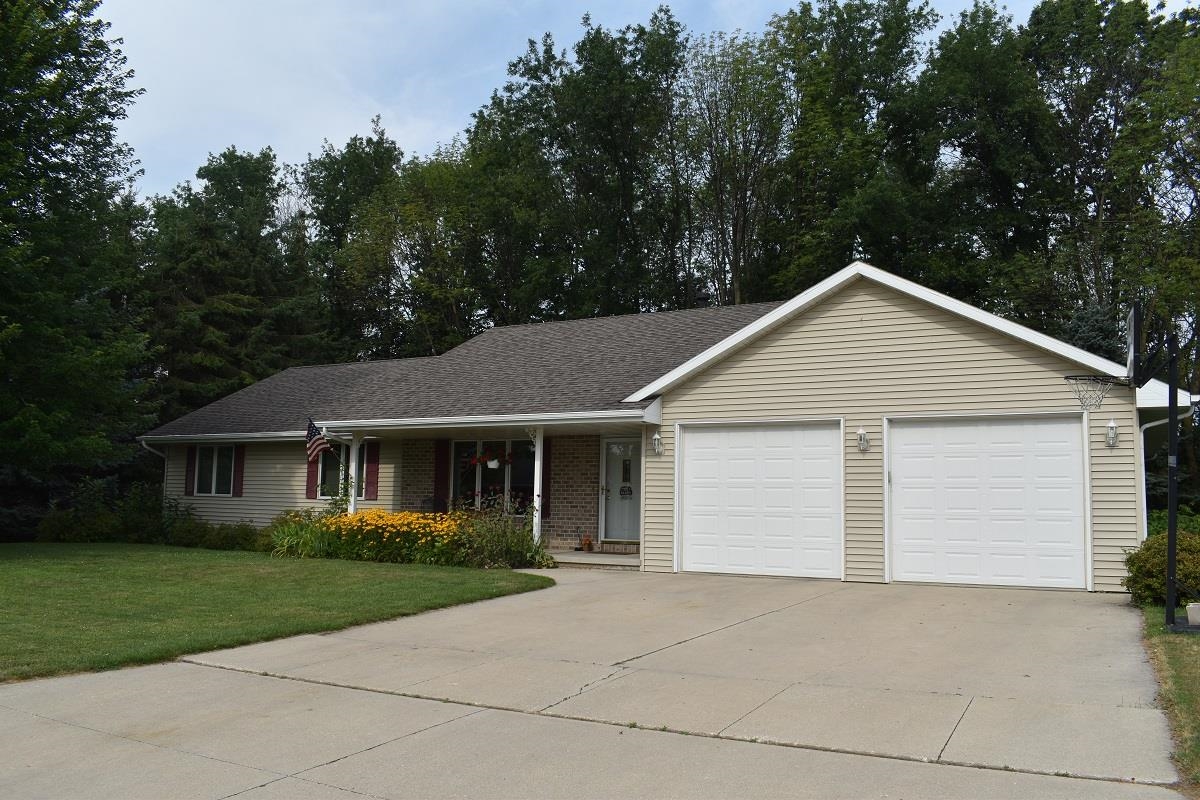 Spacious 4 BR ranch home welcomes you into an open concept living room featuring a gas fireplace, lighted decorative ledge & vaulted ceiling. Beautiful kitchen offers lots of oak cabinets, breakfast bar & large dining area with patio doors to an amazing backyard. Maintenance free deck, 24' swimming pool & woods that provide almost 100% backyard privacy. Great for entertaining. Finished lower level with large rec room, family room & room for hobby/office/den. Backyard storage shed included.