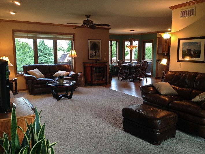 Start the day in your breakfast nook with a meal prepared in your spacious, remodeled granite kitchen (stainless appliances, 2 pantries, wood floor) leading to a great room (boxed window seat, gas fireplace, great views). The Master suite had a large arched window, vaulted ceilings, walk in closet, dual vanities, and a jetted tub. A walkout LLincludes a huge bedroom and an exercise room. Walking distance from a dog park, bike path, Viking Park, and the Yahara river. Hot tub NOT included in sale price.