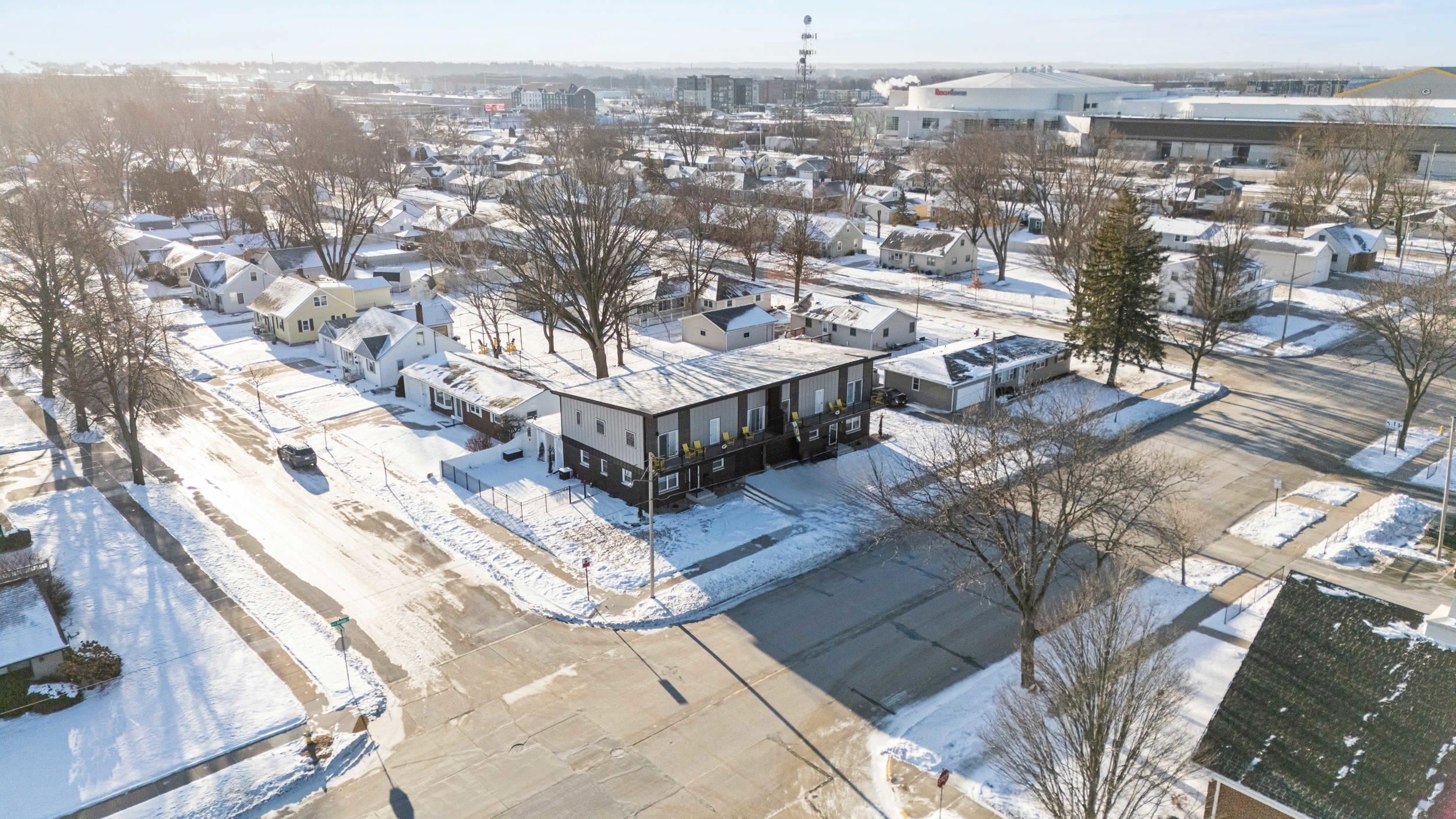 The ultimate "Lambeau Leap" into luxury real estate! This 2024-rebuilt condo offers unbeatable proximity to the stadium and modern sophistication. Featuring a total studs-out renovation—new roof, windows, HVAC, and electrical—the interior shines with stone finishes and 12ft ceilings. Highlights include 4 massive bedrooms primary suite, 2nd flr laundry, a 37’ stadium-view balcony, and a finished LL perfect for a gym or lounge. Relax in the hot tub or bonfire under the backyard pergola after the game. Move-in ready and available furnished! Perfect as a primary home or high-yield investment. Don't miss out! Can be purchased with MLS 50322406 for a rare double-unit package.