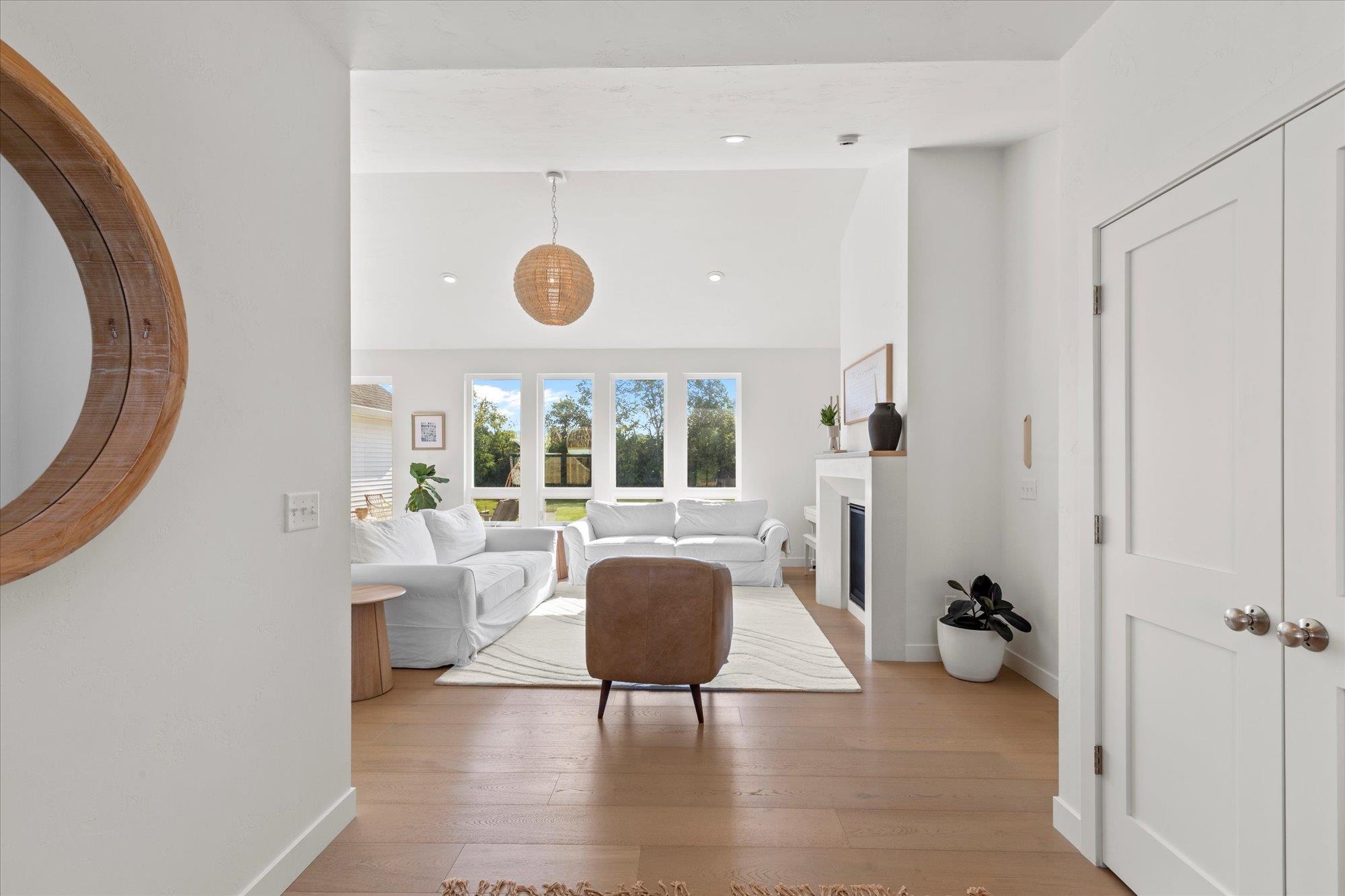 Welcome to this stunning 2024 custom ranch home with over 2,000 sq ft on .8 acres. Step inside the 8’ French doors to vaulted ceilings, a custom mantel fireplace, and tons of natural light. Enjoy hardwood floors, a split-bedroom layout, a chef’s kitchen with 9’ soft-close cabinetry, large island, coffee bar, double wall ovens, 36" gas cooktop, and first-floor laundry. The primary suite boasts a trayed ceiling, a shower, and free-standing tub. Bathrooms feature tile floors and double vanities. Added perks include a mudroom with lockers, basement with 3 egress windows, stamped concrete porch, patio with footings for a future 3-season room, and a huge yard for gatherings. So many more things to experience and see in this one! Tour it today!