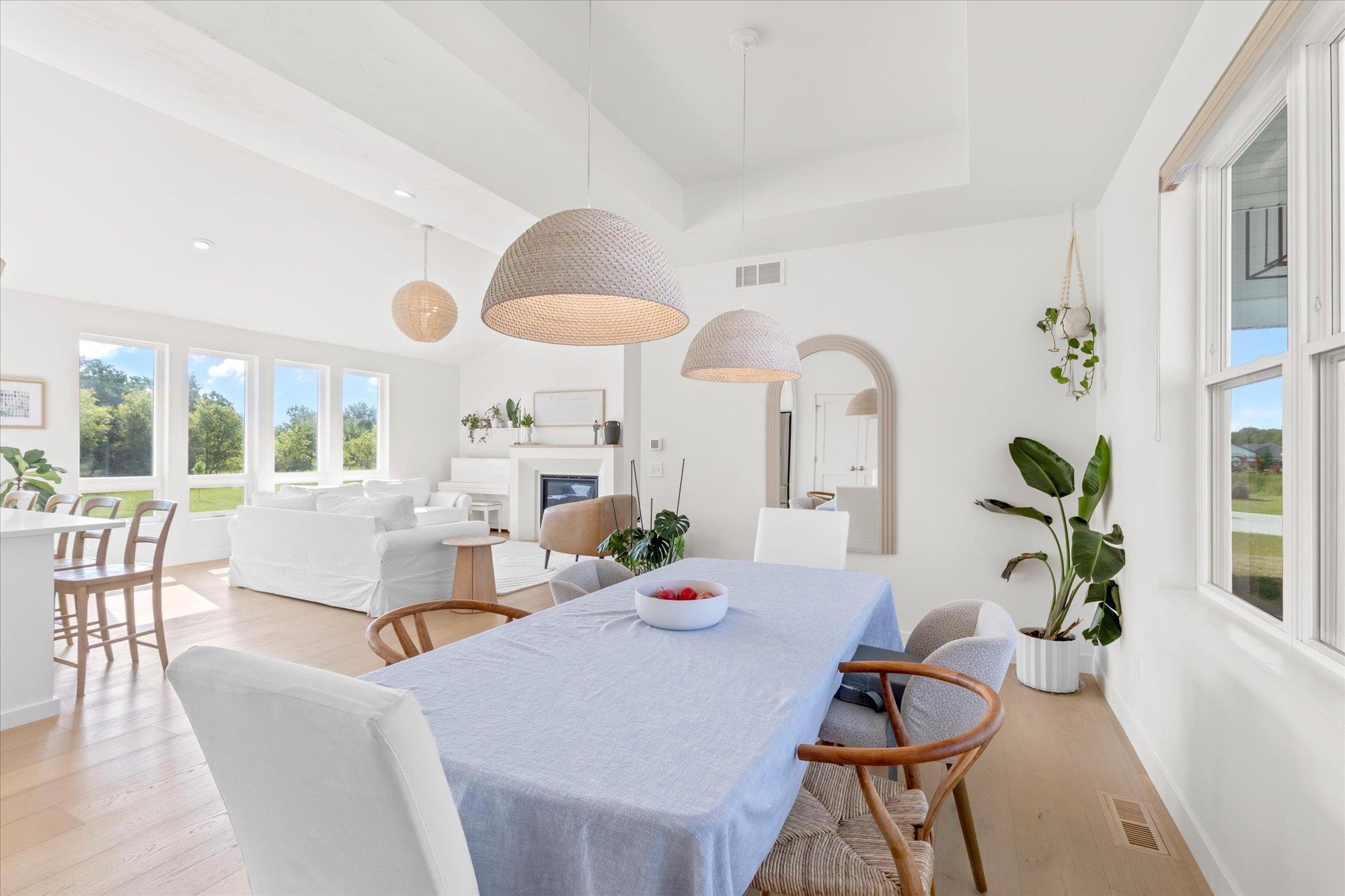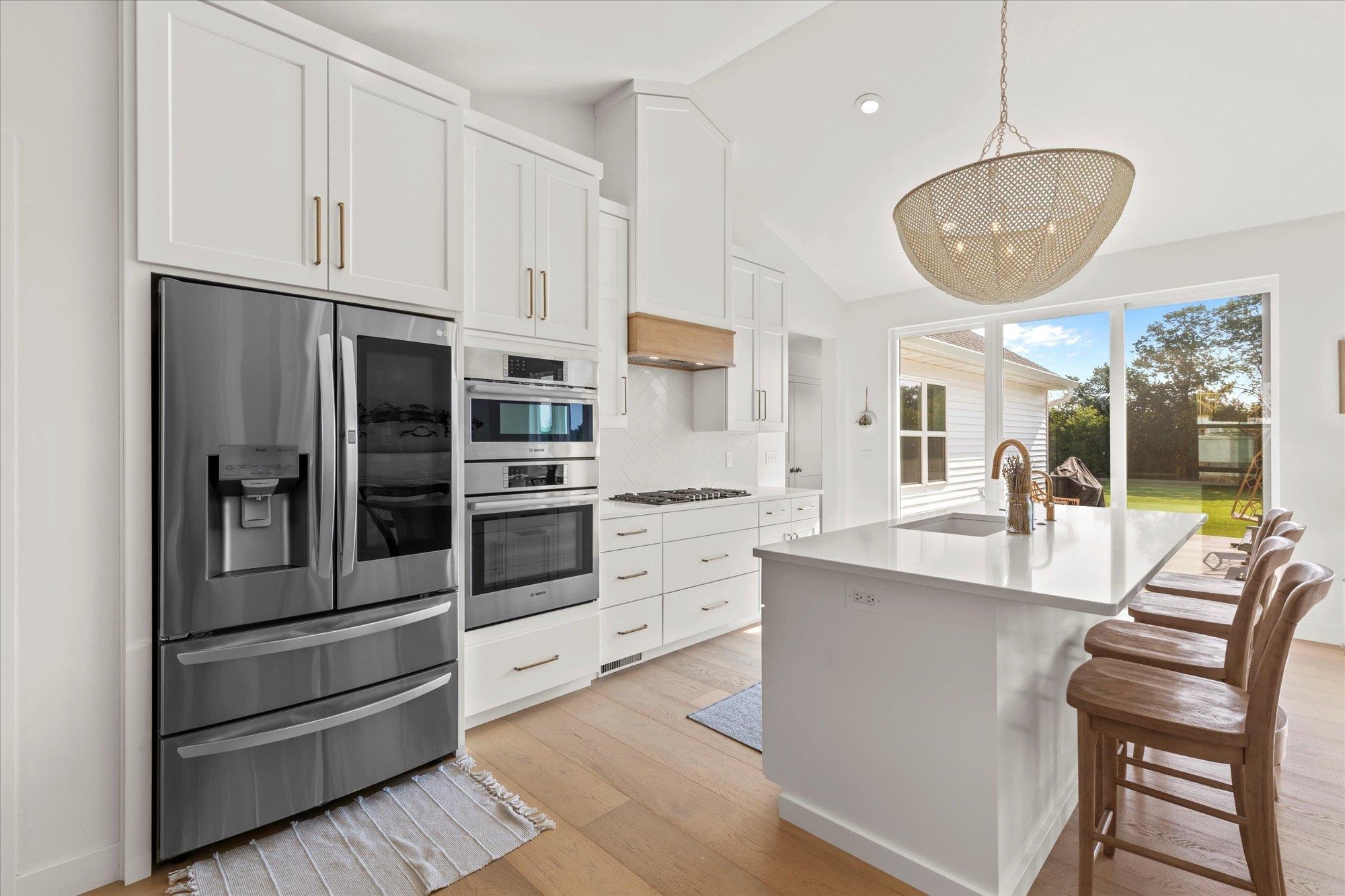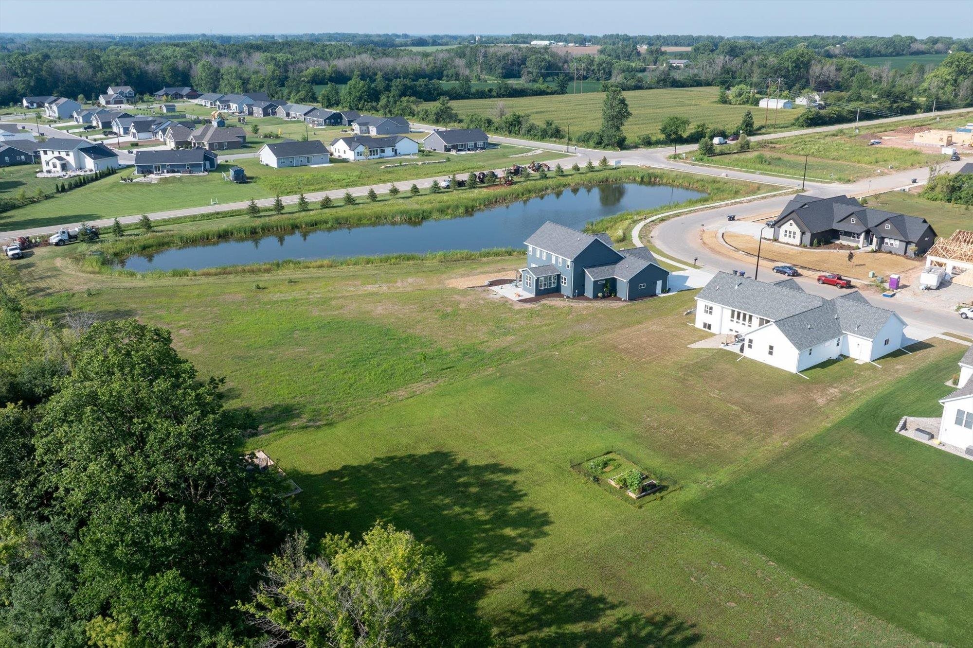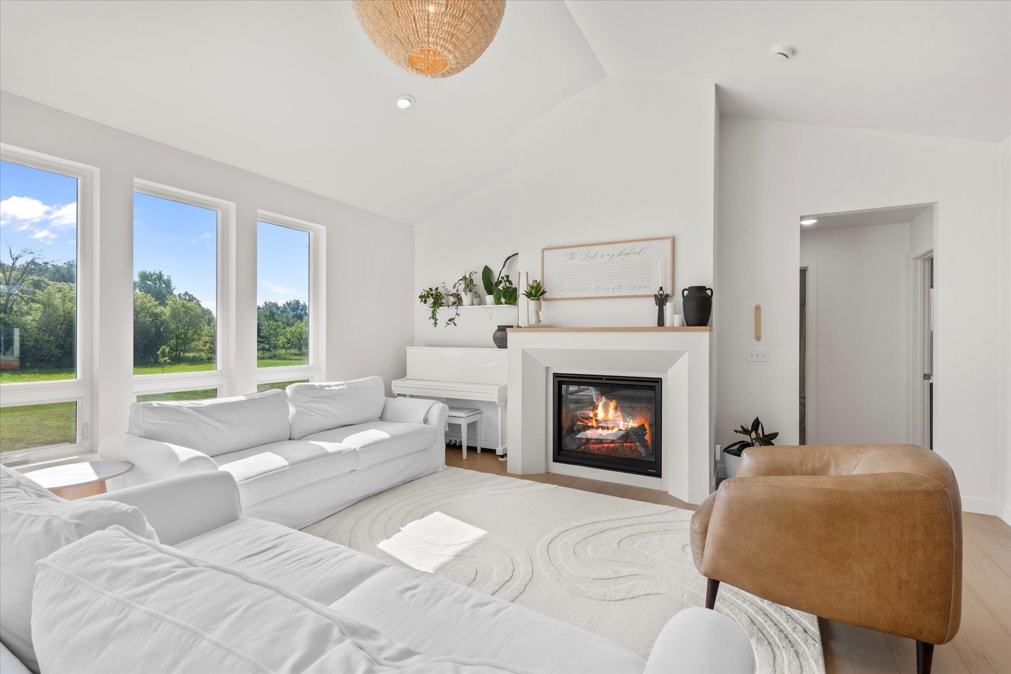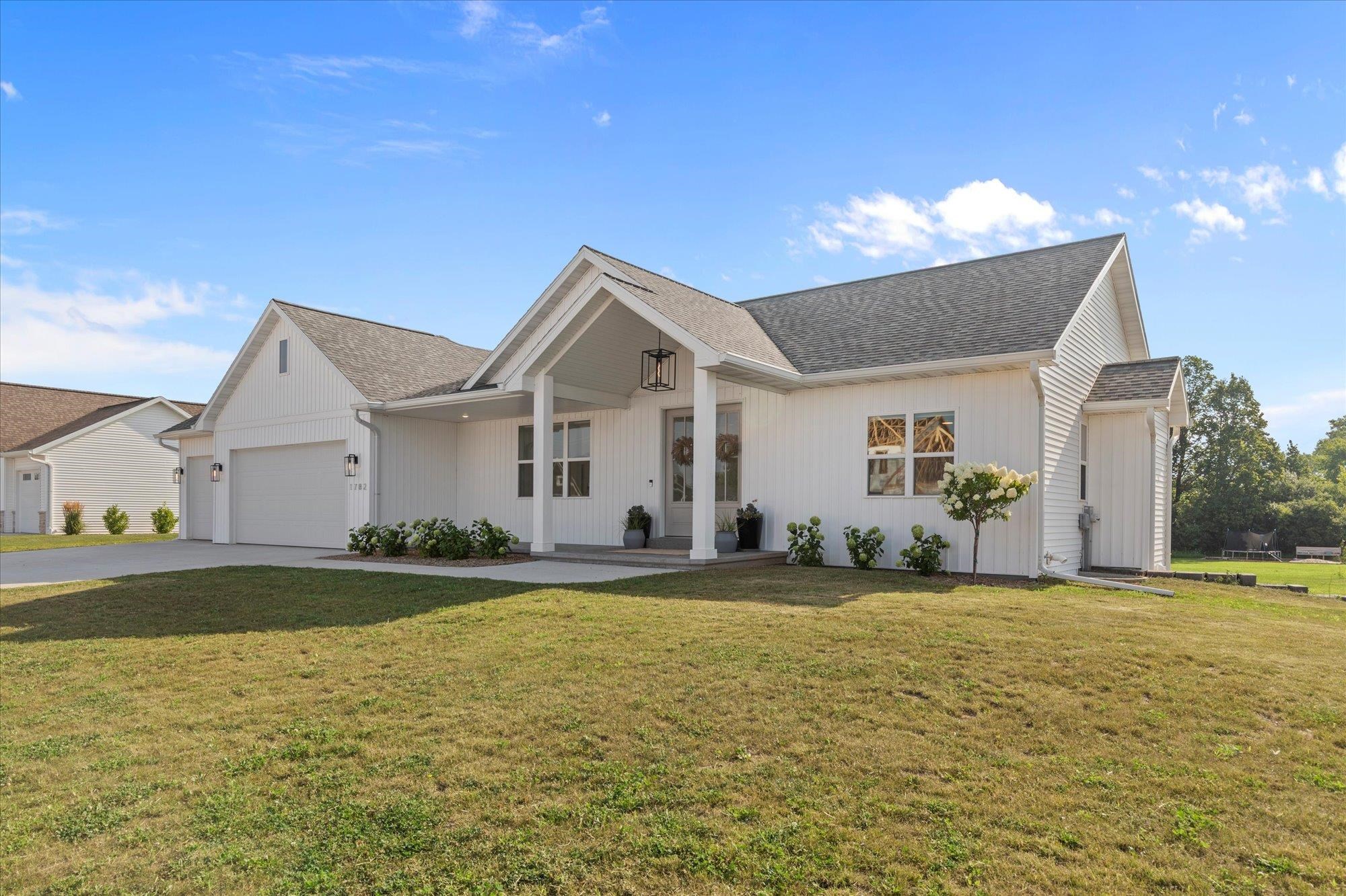 Welcome to this stunning 2024 custom ranch home with over 2,000 sq ft on .8 acres. Step inside the 8’ French doors to vaulted ceilings, a custom mantel fireplace, and tons of natural light. Enjoy hardwood floors, a split-bedroom layout, a chef’s kitchen with 9’ soft-close cabinetry, large island, coffee bar, double wall ovens, 36" gas cooktop, and first-floor laundry. The primary suite boasts a trayed ceiling, a shower, and free-standing tub. Bathrooms feature tile floors and double vanities. Added perks include a mudroom with lockers, basement with 3 egress windows, stamped concrete porch, patio with footings for a future 3-season room, and a huge yard for gatherings. So many more things to experience and see in this one! Tour it today!