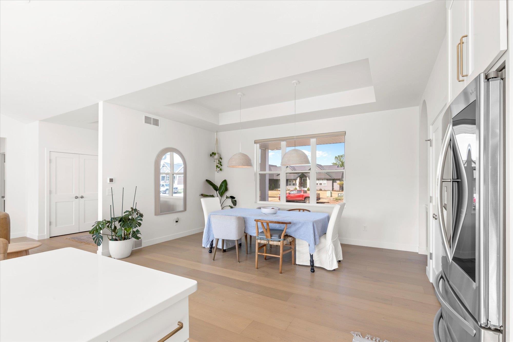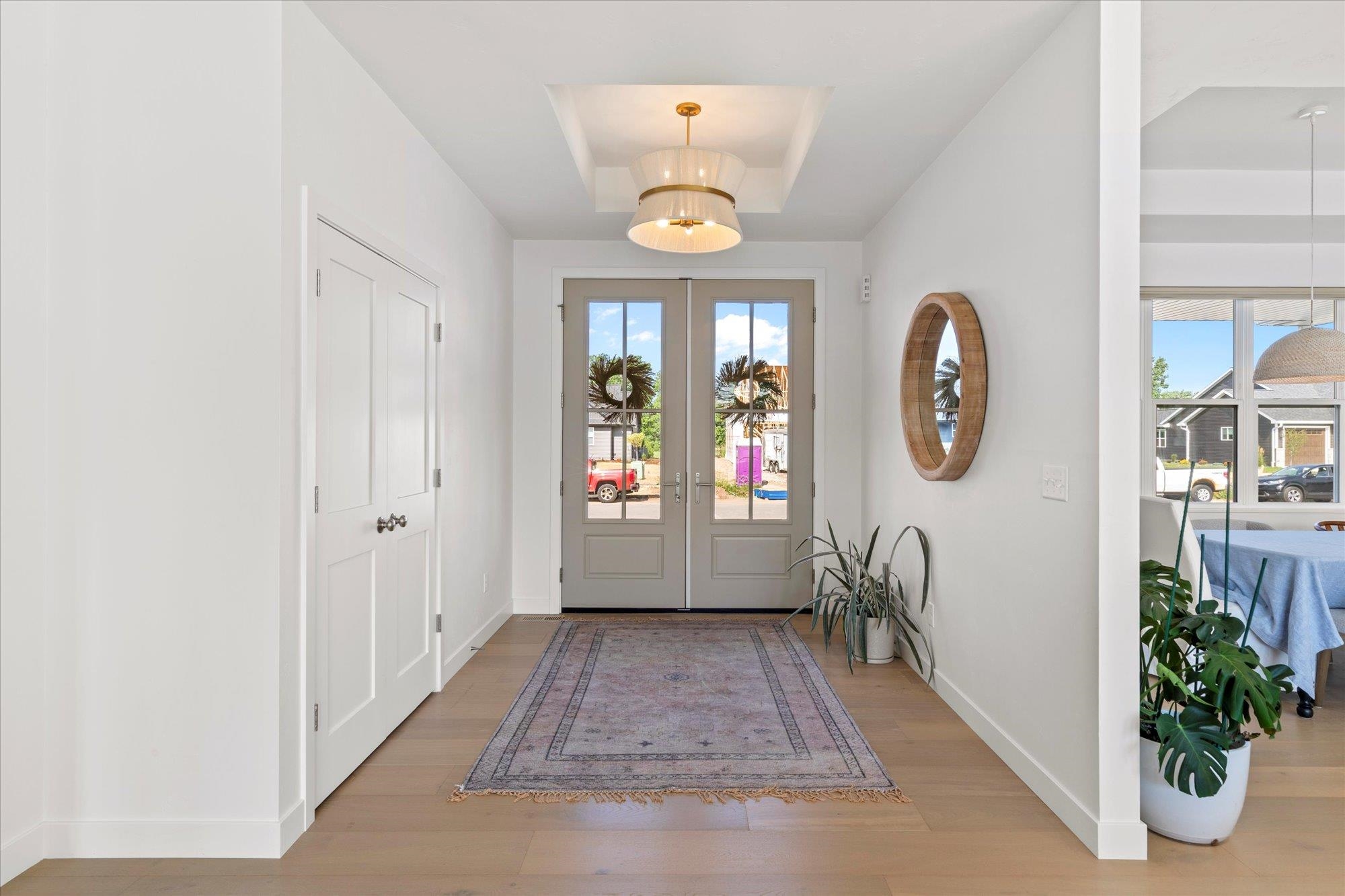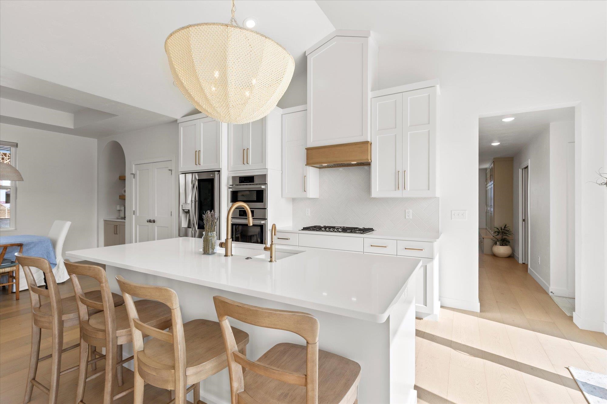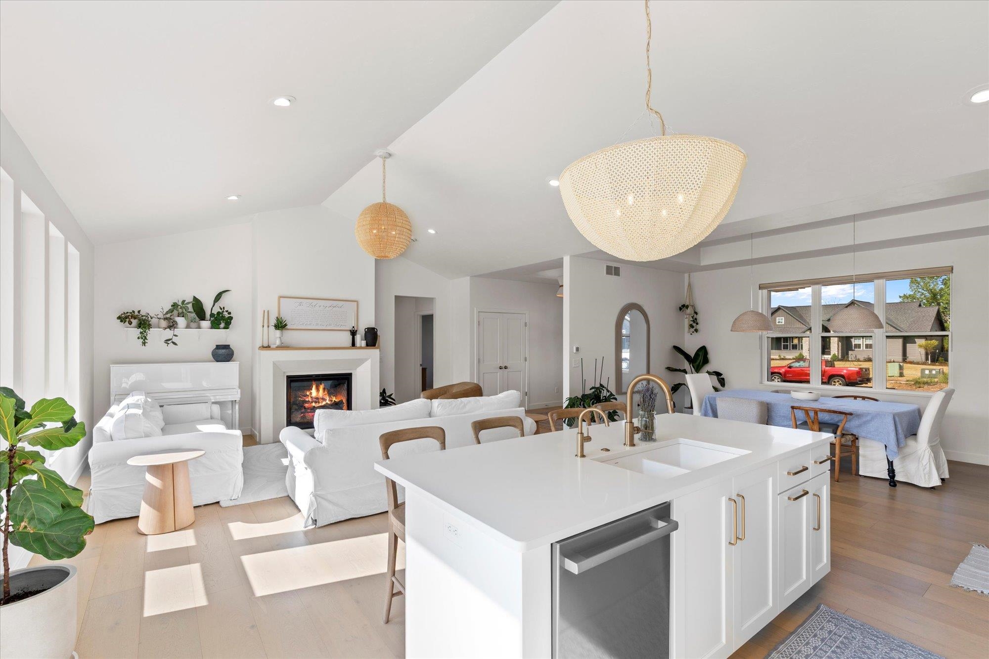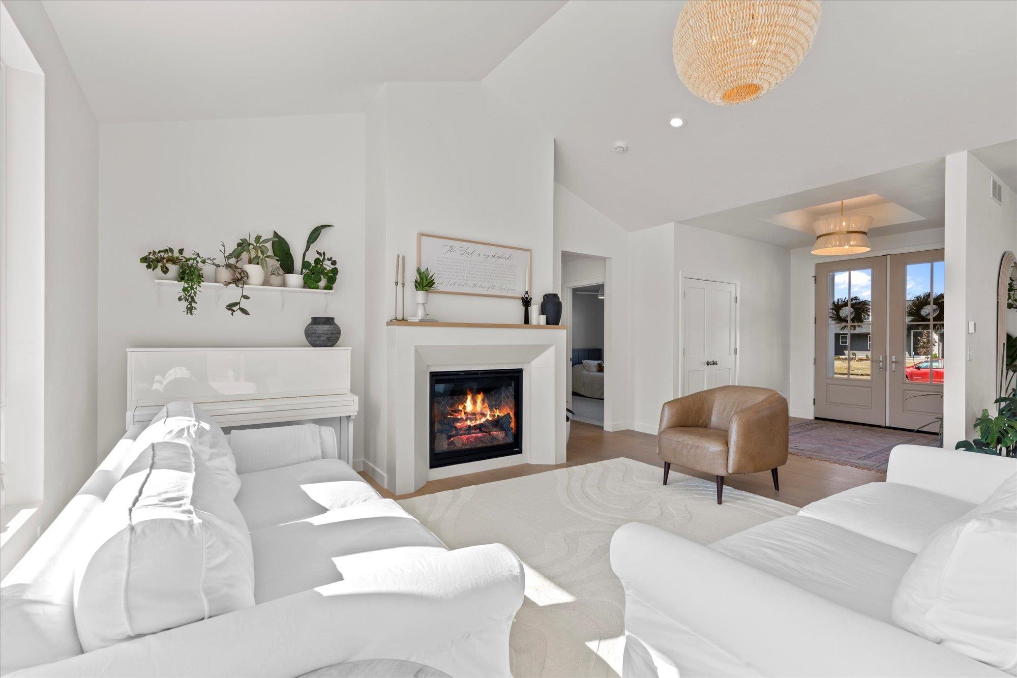Welcome to this stunning 2024 custom ranch home with over 2,000 sq ft on .8 acres. Step inside the 8’ French doors to vaulted ceilings, a custom mantel fireplace, and tons of natural light. Enjoy hardwood floors, a split-bedroom layout, a chef’s kitchen with 9’ soft-close cabinetry, large island, coffee bar, double wall ovens, 36" gas cooktop, and first-floor laundry. The primary suite boasts a trayed ceiling, a shower, and free-standing tub. Bathrooms feature tile floors and double vanities. Added perks include a mudroom with lockers, basement with 3 egress windows, stamped concrete porch, patio with footings for a future 3-season room, and a huge yard for gatherings. So many more things to experience and see in this one! Tour it today!