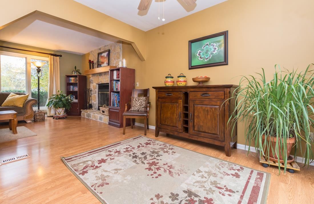 Beautifully sited on a cul-de-sac in a lovely mature neighborhood with lovely trees and landscaping this home will sell fast.Features:stone fireplace in living rm;laminate flring main level;large kitchen/dining rm with bay window nicely open to the beautiful and huge backyard;deck and screened porch.Upstairs there are 3 bedrooms w/a good sized master suite (walk-in closet), and large full bath with entrance to mstr.Exp lower level with family room, office area and possible 4th bedroom adjacent to full bath.
