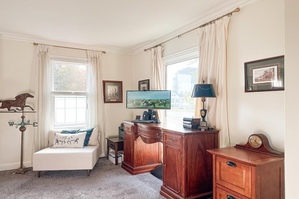 Charming 2-story brick home located in a desirable neighborhood on a corner lot. With a high-pitched roof & classic brick exterior, it exudes the cozy charm of a gingerbread house. Conveniently in walking distance to 2 schools. It features 2 spacious bedrooms, 1.5 bathrooms, an attached 2-car garage, & a shed on a generous front & back lot. Front deck is perfect for enjoying your morning coffee or breakfast, while the backyard includes a relaxing lean-to where you can unwind & enjoy the cool breeze or even park your small boat. Inside, the home has been meticulously maintained & kept shoe-free for decades. The dining room features durable laminate flooring, the living room has newer carpet, & the kitchen/bathrooms are finished with easy-to-clean tile floors. *see documents for full remarks