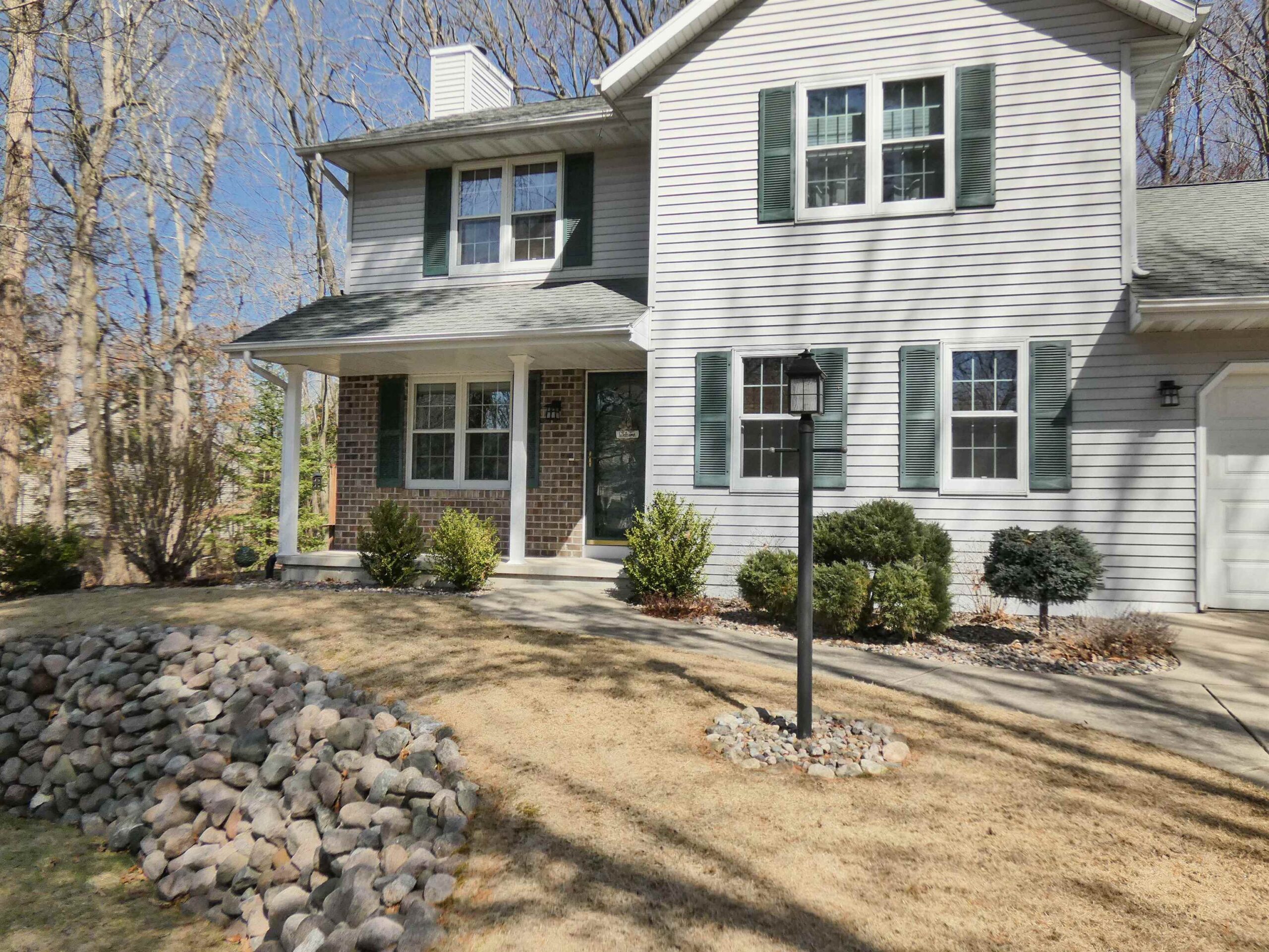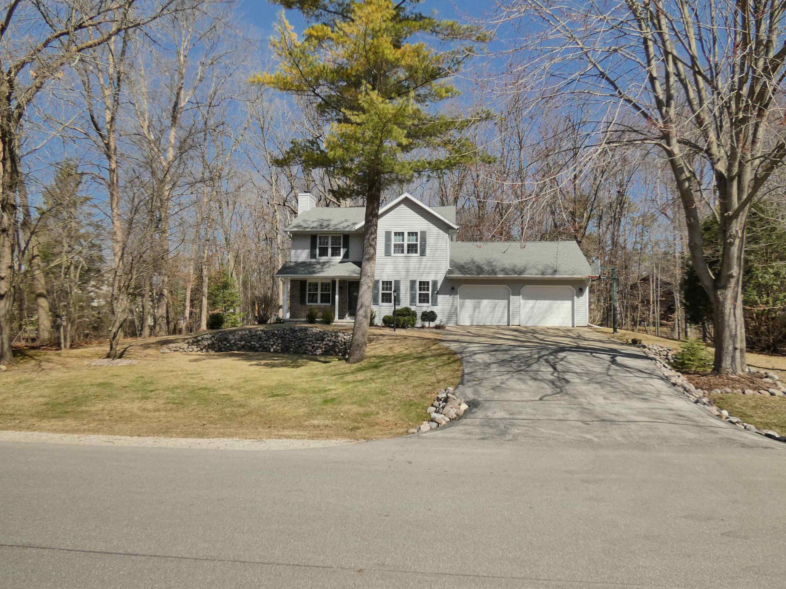 Well Maintained Suamico 2-Story Home. 3 Bedrooms, 2.5 Baths, Extra deep 2-stall garage. Enjoy a backyard of wooded serenity, on your Deck, sitting around your firepit, or practicing your golf swing. Room to Store your toys in extra deep garage and storage shed. Upgraded kitchen has Granite Island and counters, tile backsplash, stainless appliances. Patio Door access to back. Full Length Living room w/ gas fireplace. FF Laundry/mudroom. Separate Half Bath. 3 Bedrooms Upstairs w/ full length Primary Suite, dual vanity (granite) bath, W/I Closet. 2nd upstairs Bath w/ tub/shower combo between beds 2 & 3. Updated Roof, Furnace, A/C. Outside well for unlimited outside water! Beautiful Granite boulder landscaping. first showings 4-11-2025, seller to respond to offers 4-15-2025.