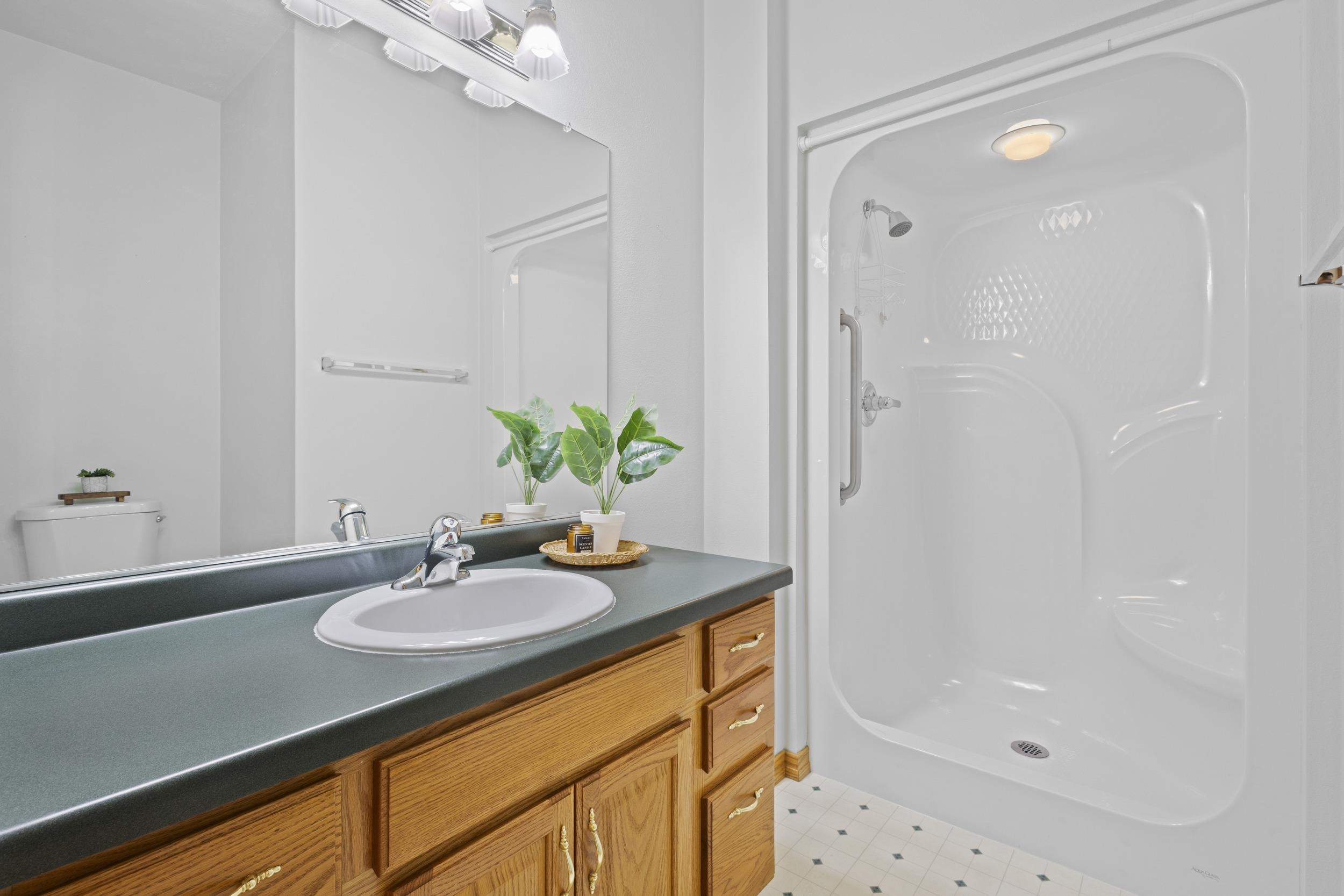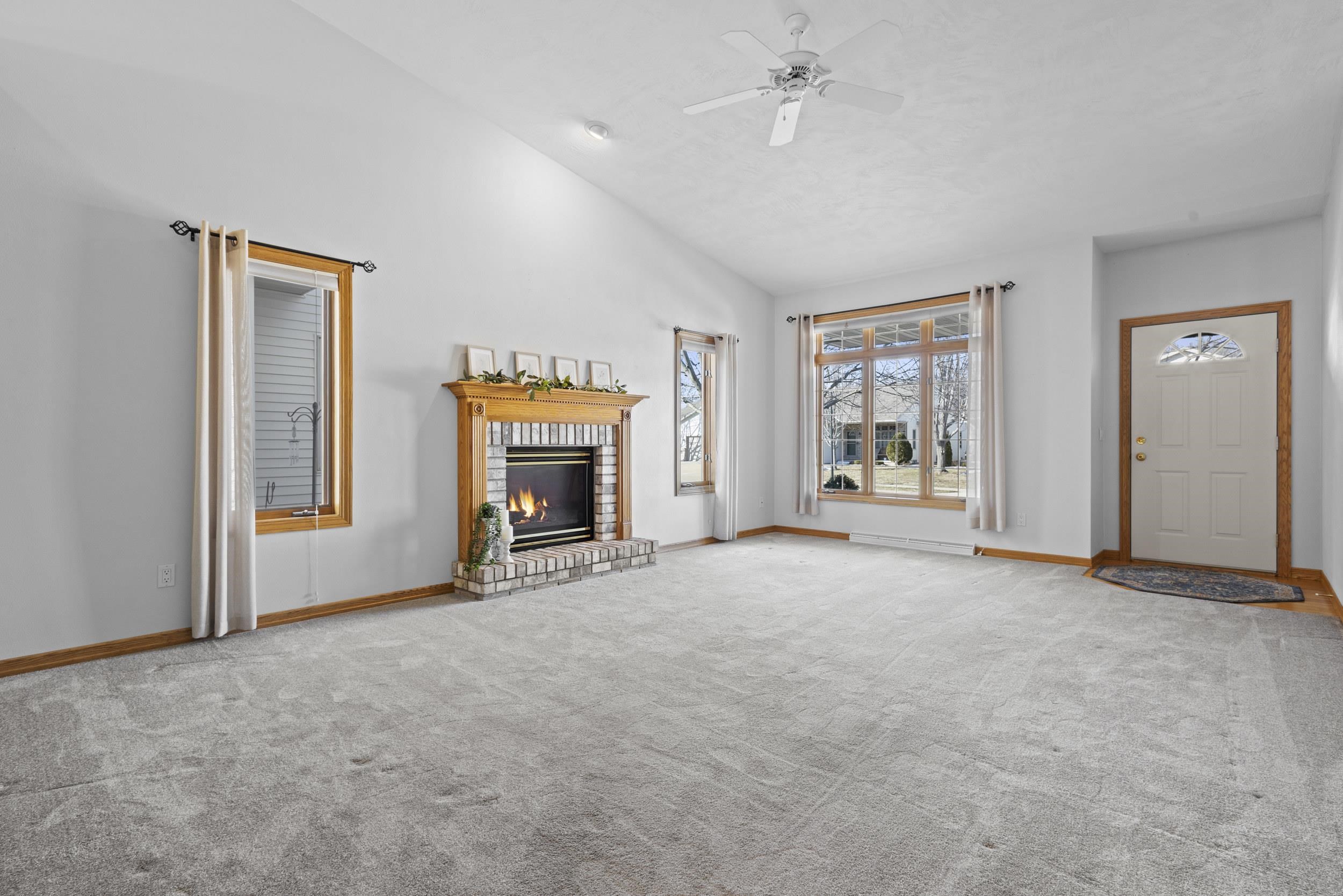 Move-in ready 2-bed, 2-bath condo offering easy, low-maintenance living in a great location. Vaulted ceilings and a cozy gas fireplace create an inviting main living space that flows into the kitchen and dining area, plus a bright sunroom leading to your private patio. The primary suite features its own full bath, and the second bedroom is perfect for guests or a home office. Main-floor laundry and an attached insulated garage add everyday convenience. The lower level offers room to grow or extra storage. Simple. Easy. Living - Some photos virtually staged.