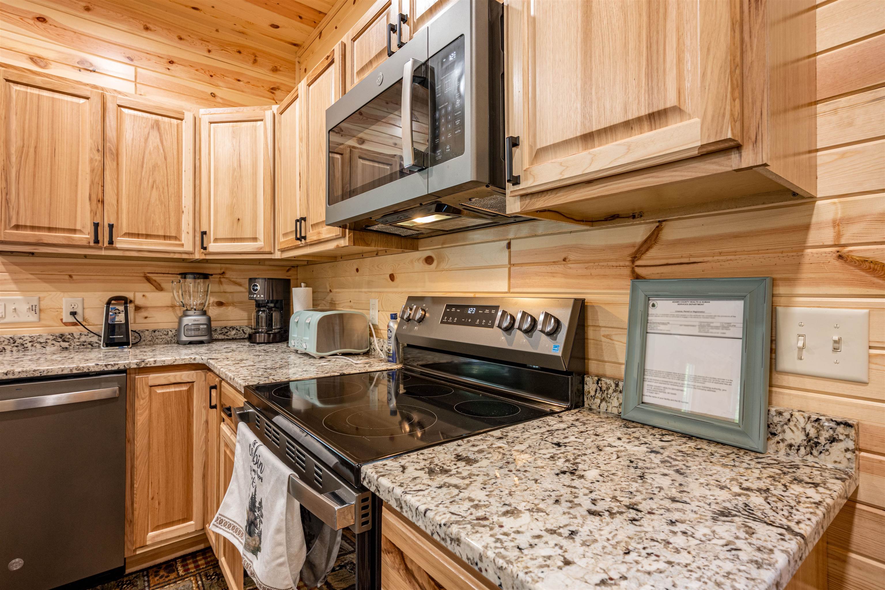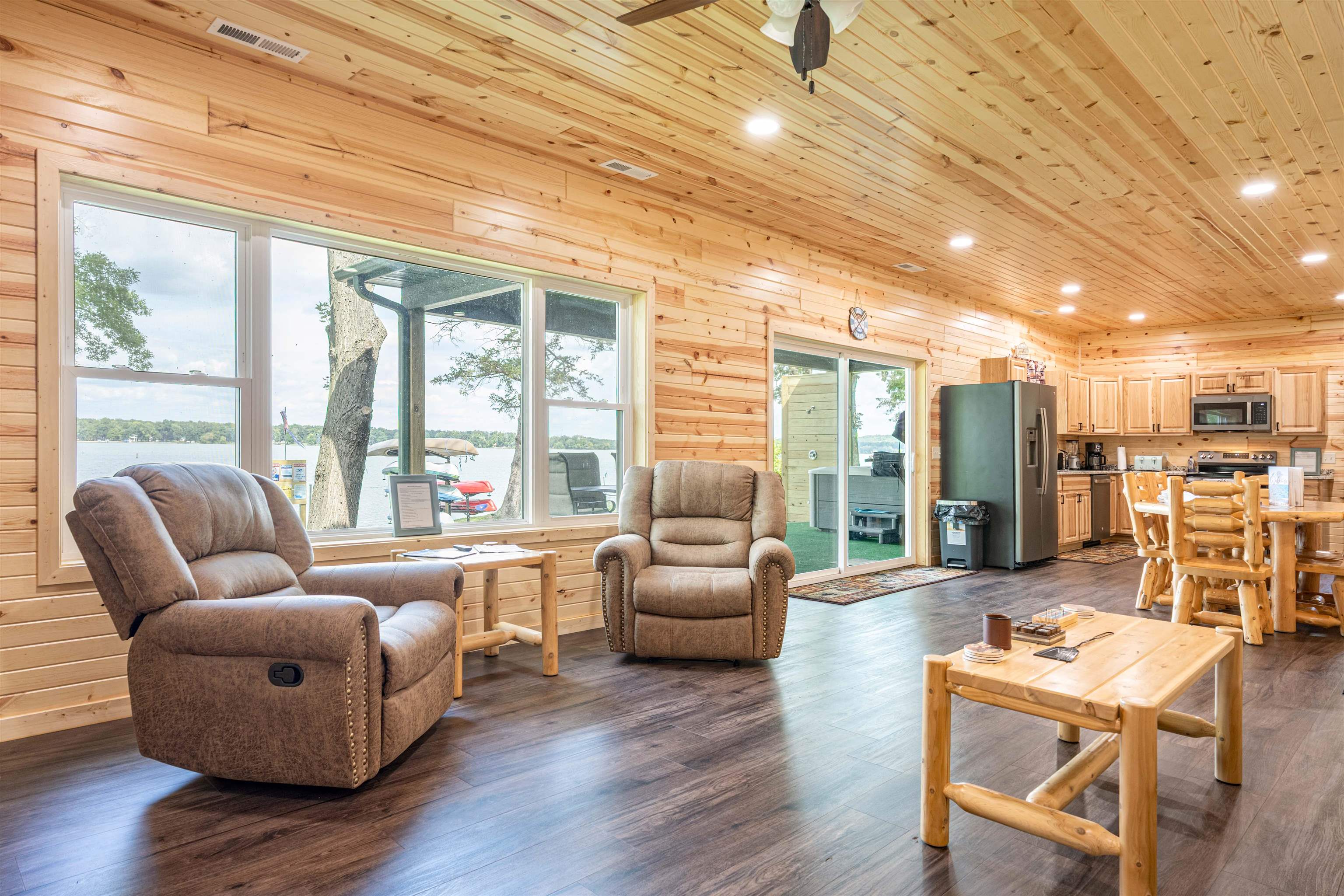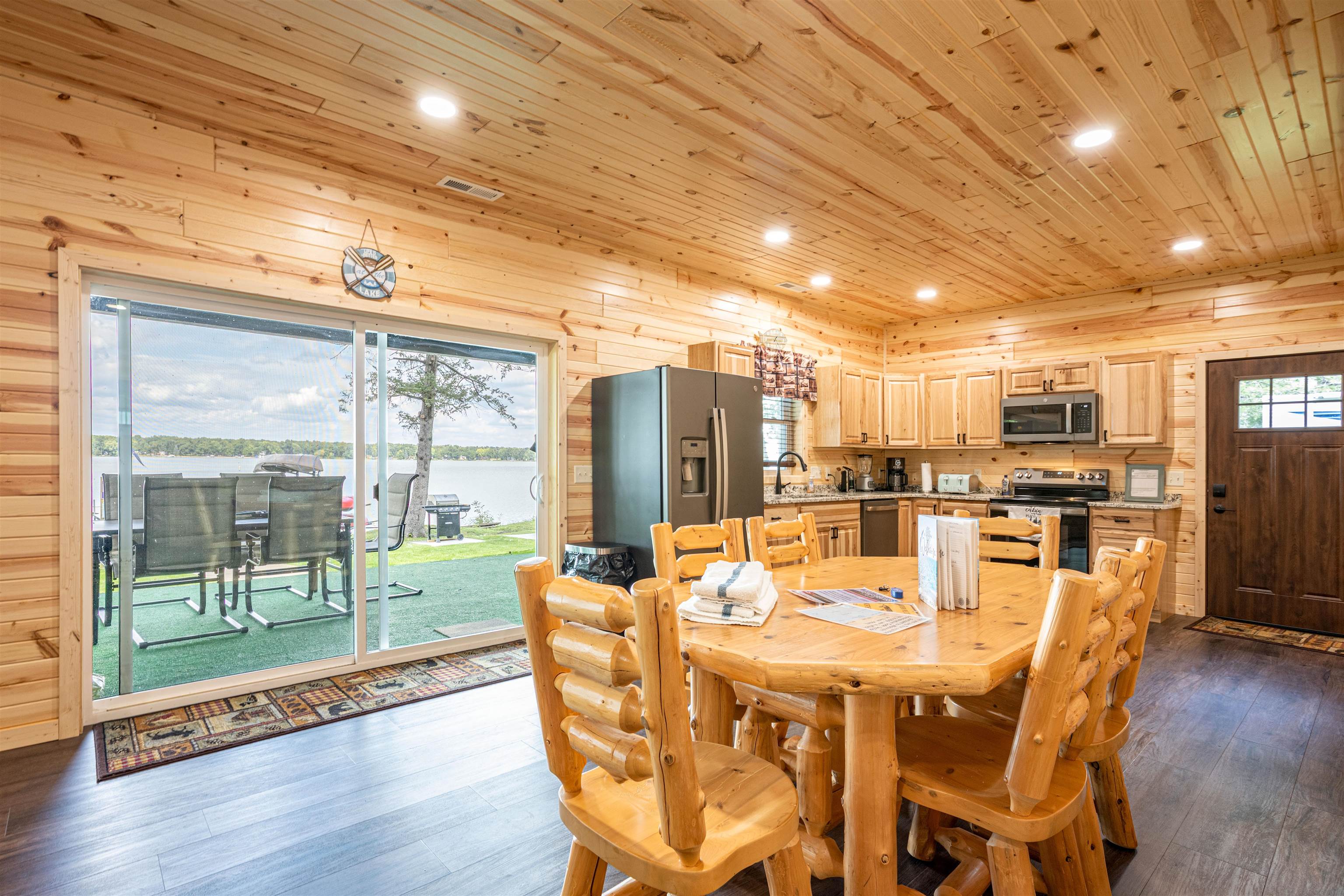 Refrigerator, Stove, Microwave, Dishwasher, Washer, Dryer, Boat Dock and 6 Kayaks, Window Treatments, All Furniture, Bedding, Kitchen Small Appliances, Utensils, Cookware, TVs and Decorative Items. 6 person Jacuzzi and LED lighting, LP Gas Grill and Fire pit.
