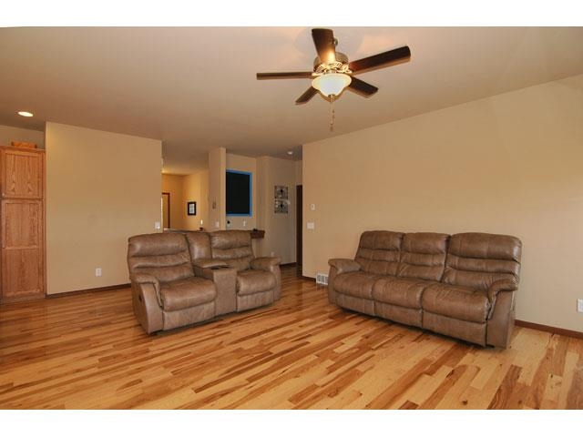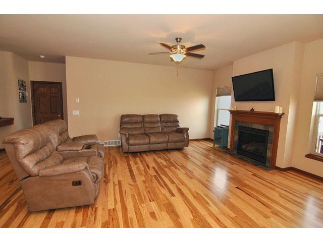 Beautiful 4 BR, 3 BA, ranch home with walkout basement, built in 2012, featuring 2,637 finished square feet. Gorgeous hickory hardwood floors in entry way, living room, kitchen, and dining room. Upgraded carpeting; oak kitchen cabinetry with crown molding; solid 6-panel oak interior doors; gas fireplace; soft water system; and theater room w/120” professional screen. Extended deck off of living room. Spacious 3-car garage; .3 acre lot with beautiful views; and a short drive to Epic or Madison.