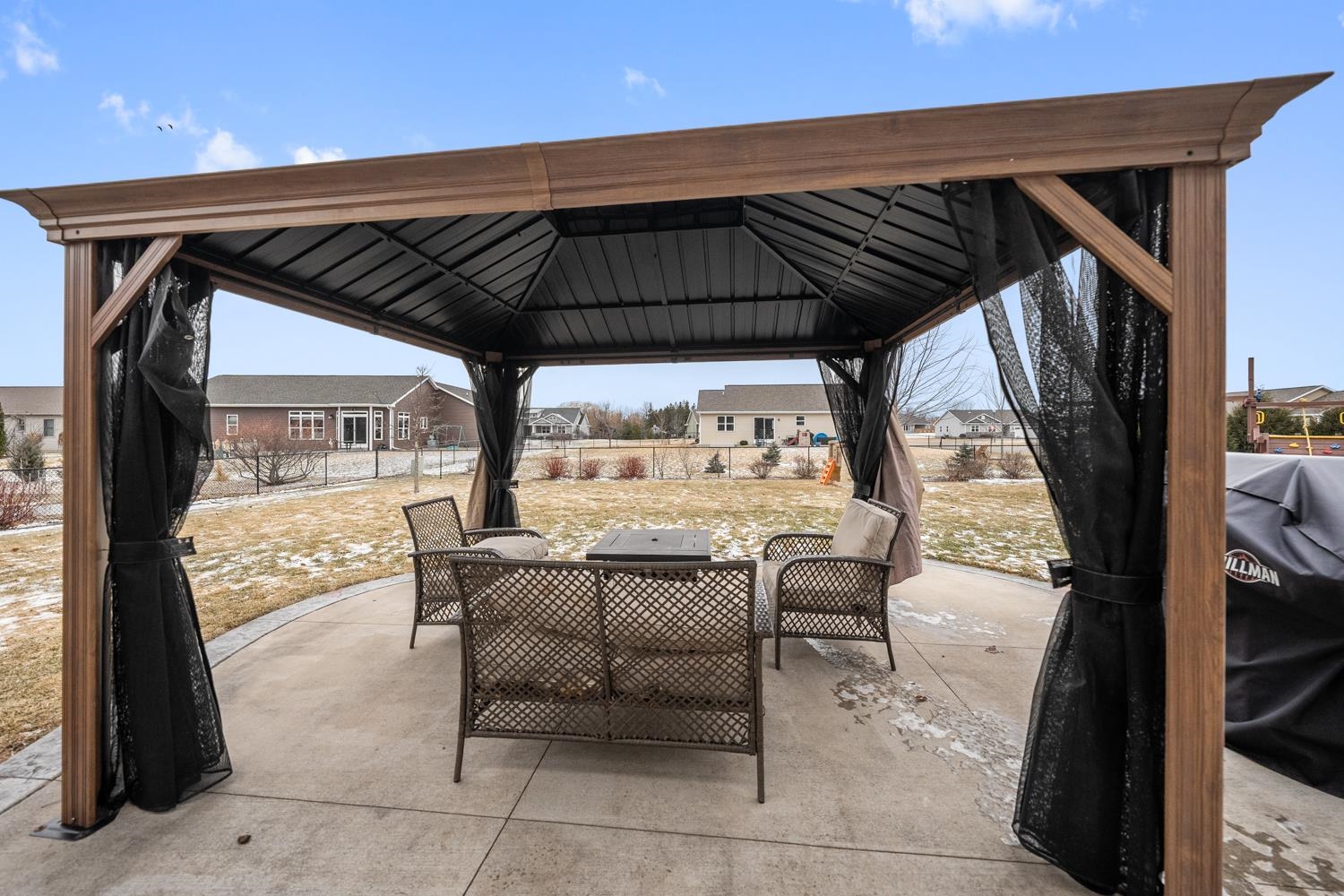 Refrigerator, Oven/Range, Dishwasher, Microwave, Window Treatments, Pergola, Playset, City Issued Garbage/Recycle Bins
