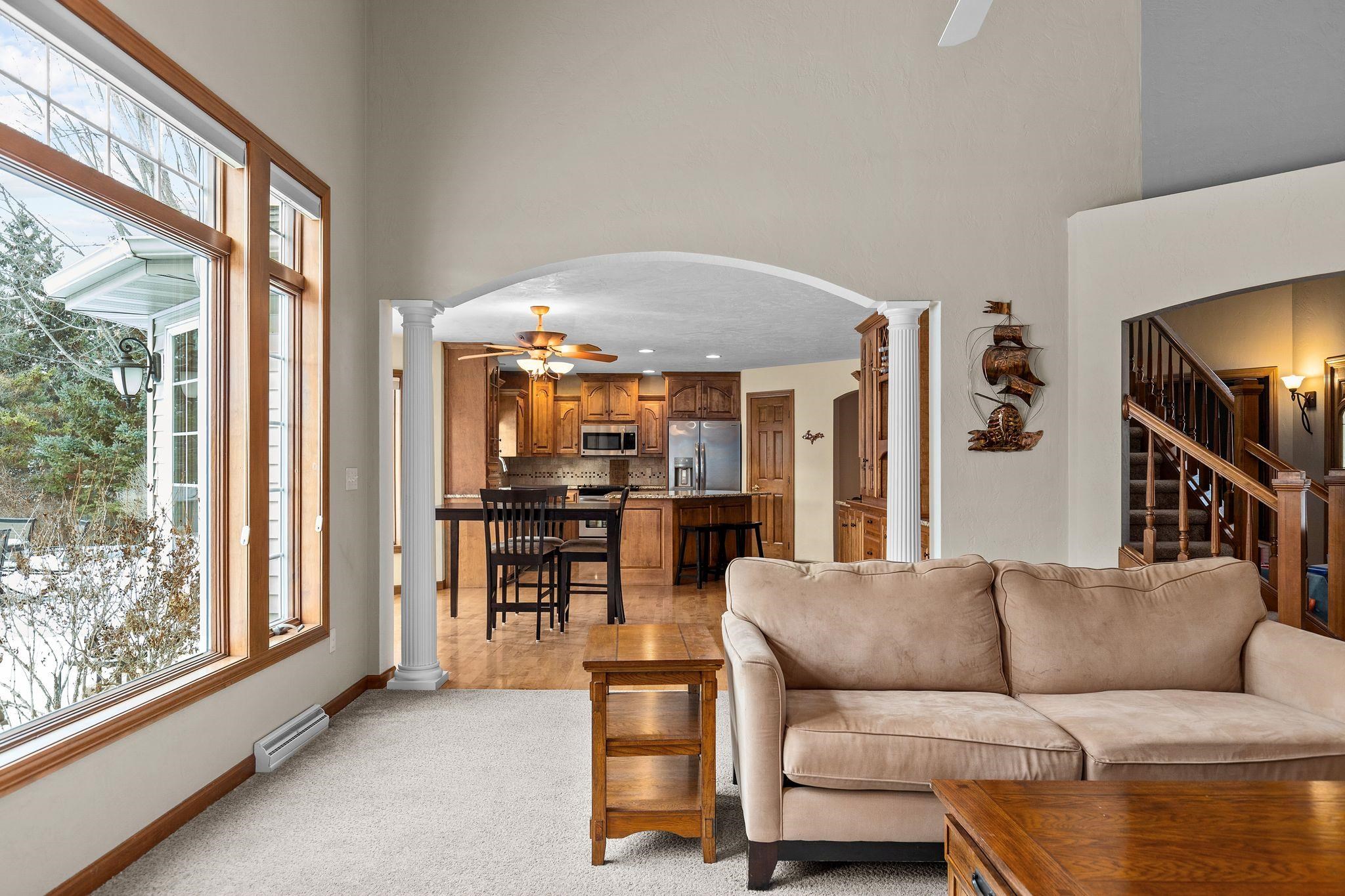 Welcome home to this beautifully maintained 4 bed, 2F/2H bath 1.5 story property offering exceptional curb appeal and an attached 3-car tandem garage. Inside, you'll find stunning hardwood floors, soaring vaulted ceilings, elegant pillars, and archways that add charm and character throughout. The main-level primary suite and convenient first-floor laundry add ease to daily living. The kitchen features granite countertops and ample cabinet storage. Relax by the cozy living room fireplace overlooking the private fenced backyard. The lower level offers a spacious rec room with flexible spaces. Agent measurements of square footage is approximate. If material to buyer, please verify independently. Offers to be submitted by 10:00 pm March 2nd, 2026 and to be reviewed by 4:00 pm March 3rd.