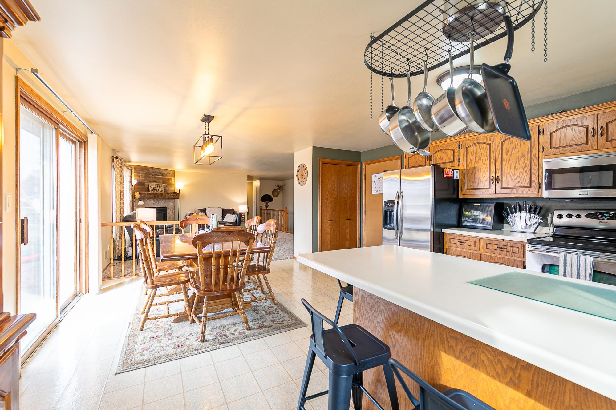 Easy to love this well-maintained, move in ready, open-concept ranch tucked on a quiet cul-de-sac! Situated on nearly a half-acre lot, this home offers room to relax & entertain both inside & out. The inviting living room features a cozy gas fireplace & flows seamlessly into the spacious kitchen w/large breakfast bar & dining area. The generous sized primary suite offers a walk-in closet & private bath for your own retreat. The lower level provides a versatile space with egress, perfect for a 4th bedroom, family room, or home office. Recent updates include new carpet in the lower-level room, fresh paint in main floor bedrooms, and a partially fenced yard. Step outside to enjoy the deck & paver patio overlooking the expansive backyard with mature trees! Call today for your private showing!
