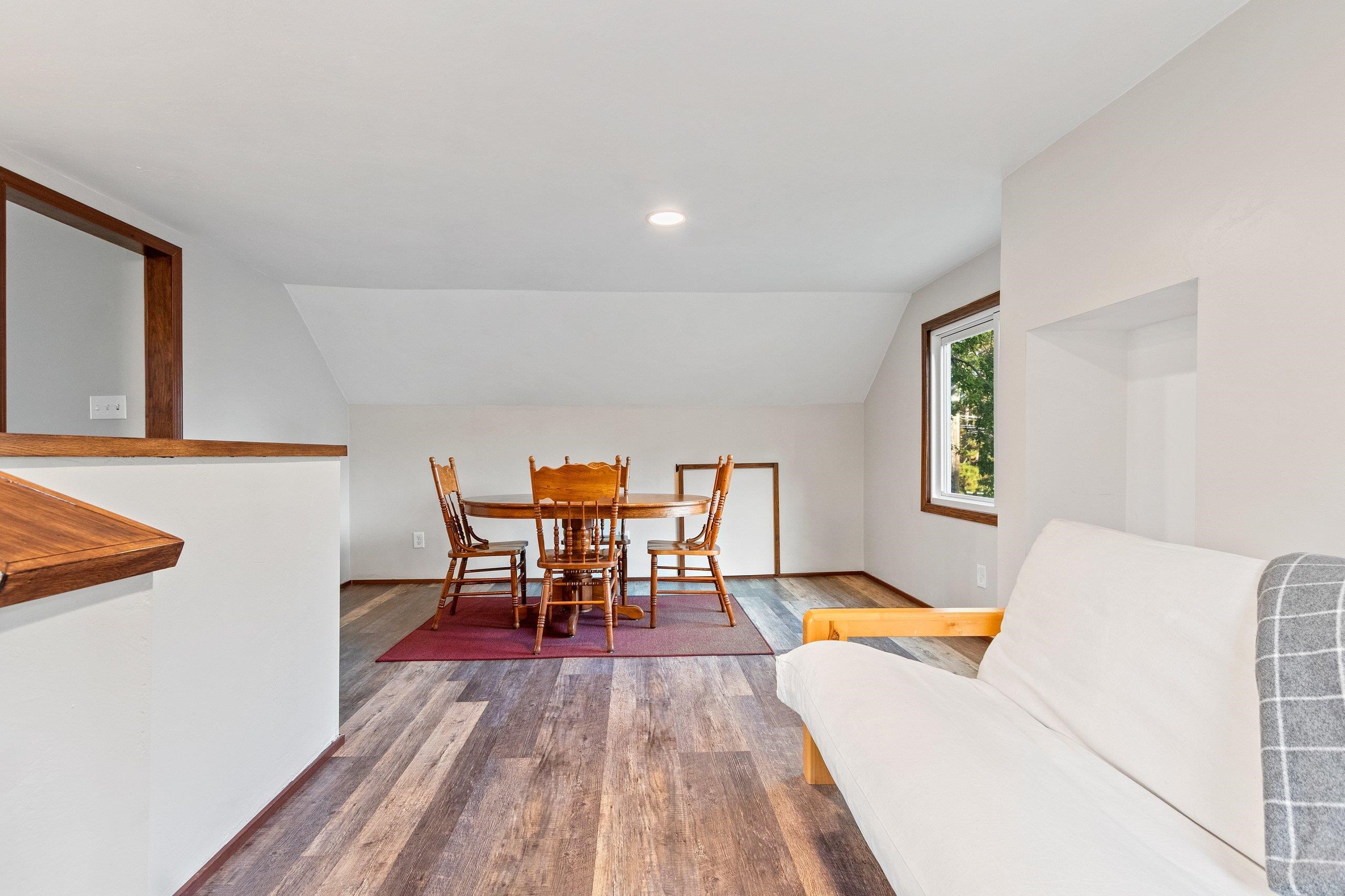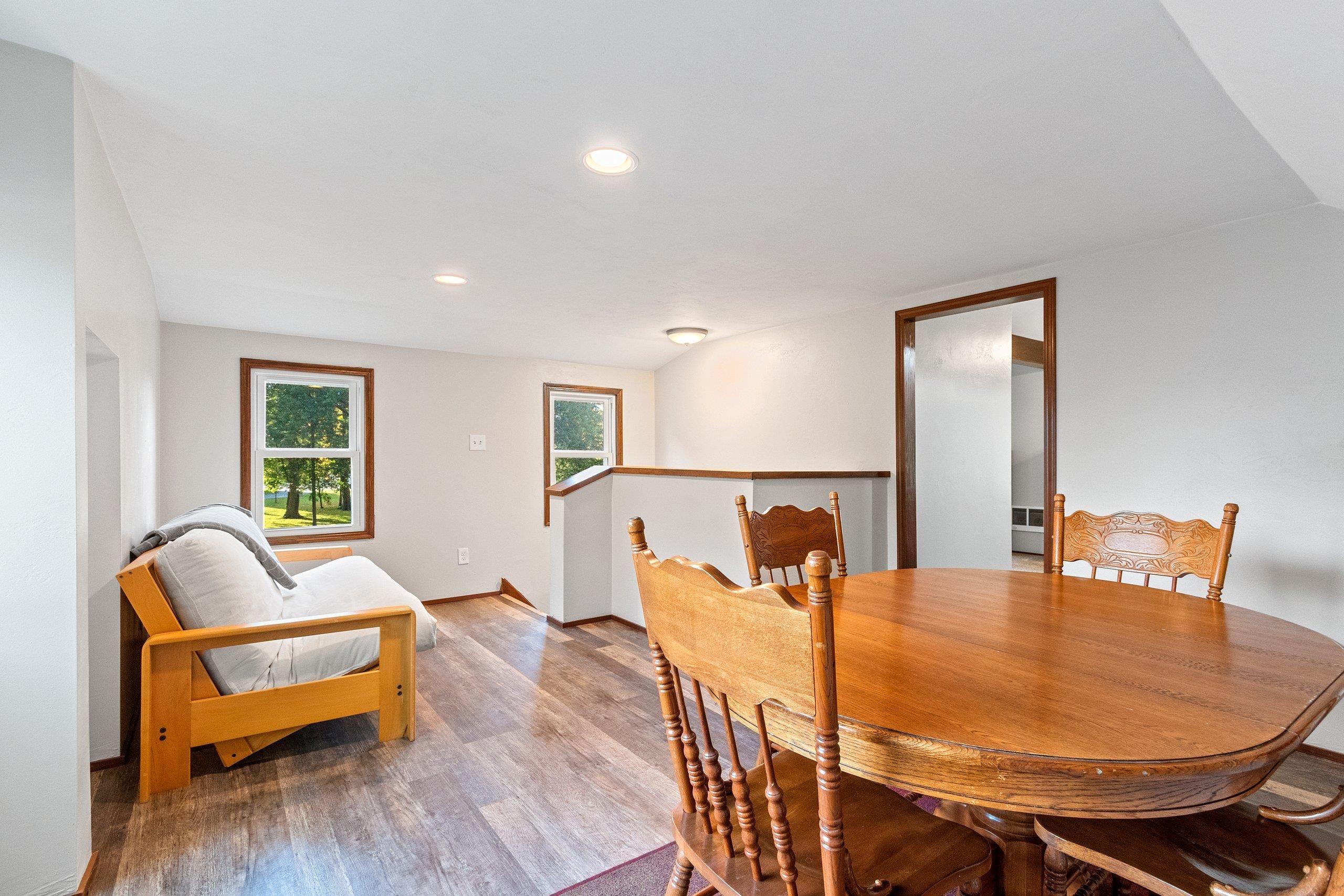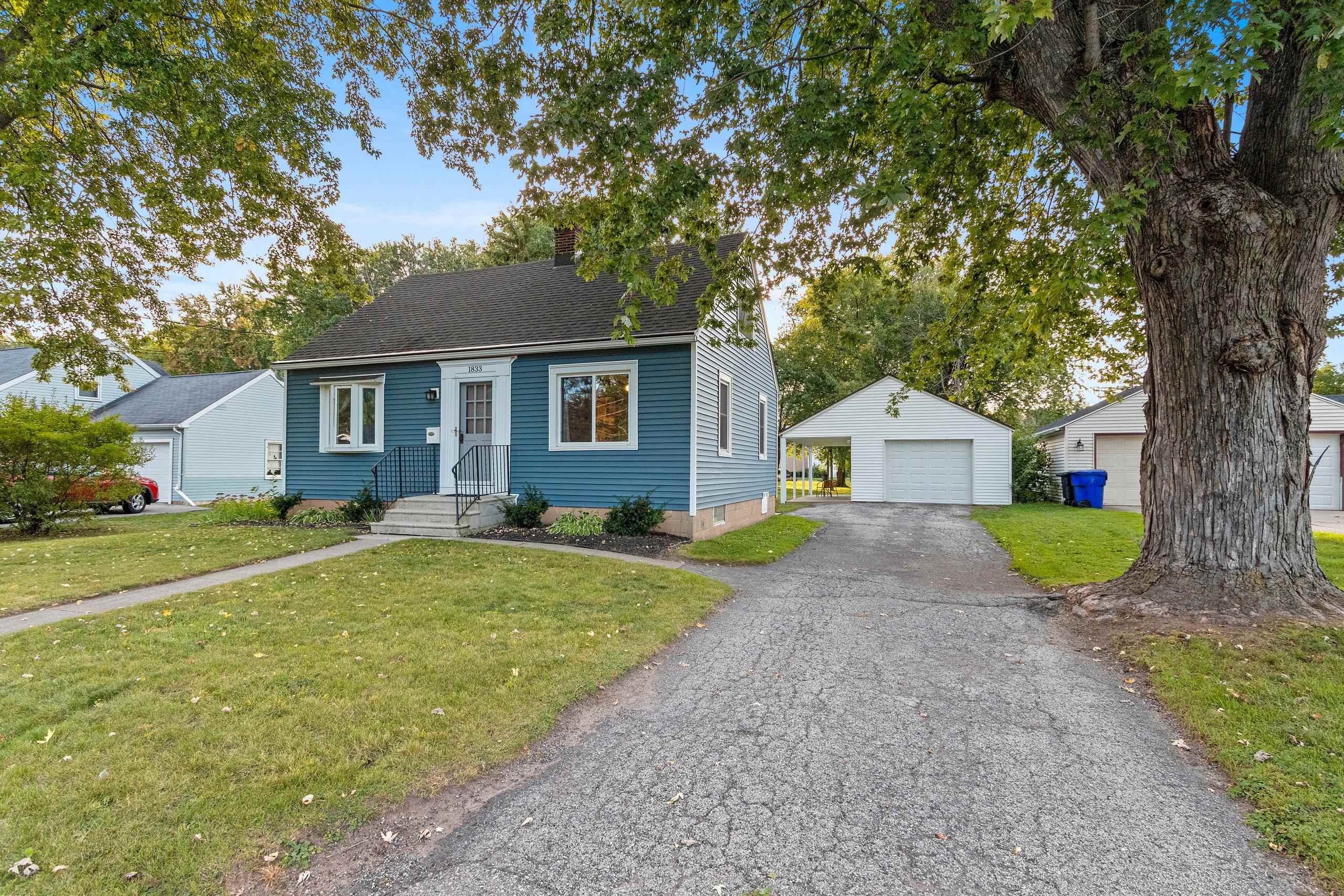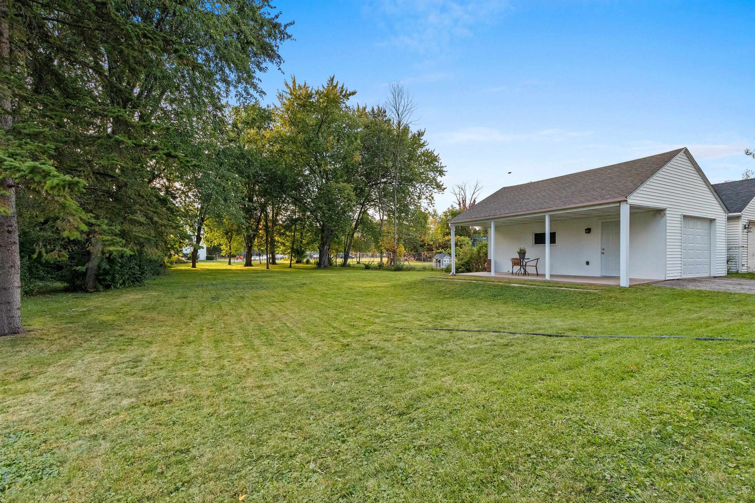 Charming 1.5 story home on a large city lot with nearly half an acre of outdoor space. The garage offers a covered patio with views of the expansive backyard and beautiful landscaping. Features include updated siding, flooring, windows, furnace, and A/C. The upper level offers a spacious bedroom with a walk-in closet and full bathroom. Full appliance package included, with washer and dryer. Preferred closing is mid-December to align with the completion of the sellers’ new home, though a sooner date may be possible. Showings to start Friday, October 3rd with offers due Tuesday, October 7th.