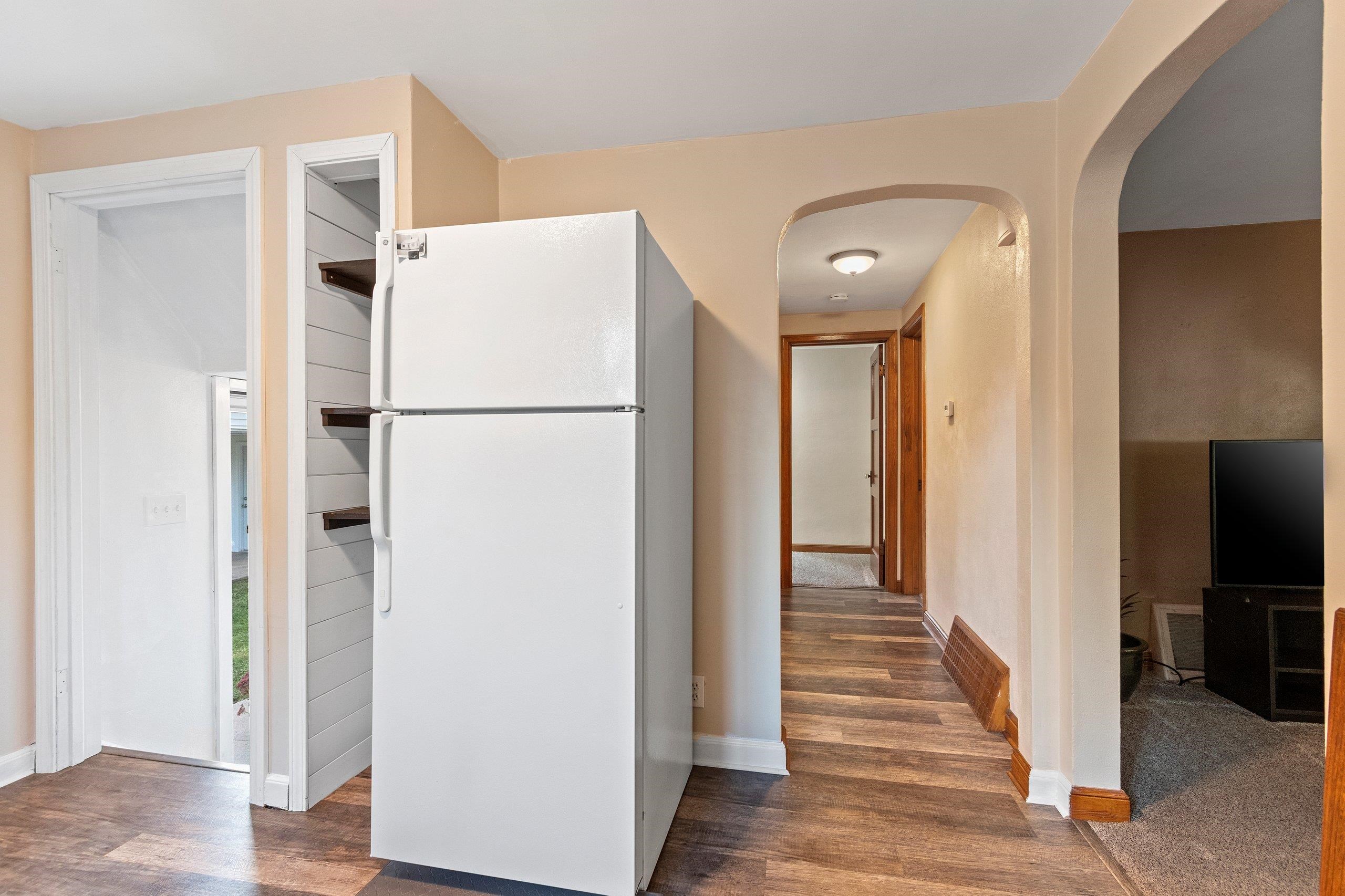 Refrigerator, range, washer, dryer, storage in basement