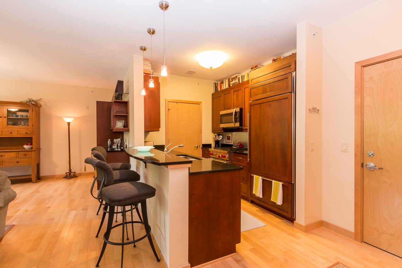 Live in the vibrant Atwood-Schenk neighborhood at Kennedy Point! Beautiful 2bd/2ba condo is well-appointed w/Wolf/Sub-Zero/Bosch appliances, cherry cabinets, maple & tile floors, granite/corian ctrs, upgraded fans/lighting, FP, balcony w/gas line, 2 lrg walk-in closets w/organizers & MANY custom built-ins throughout to include thoughtful bar area w/Sub-Zero wine fridge. Tandem prkg for 2 & on-floor strg included! Enjoy a prime urban location surrounded by shops/restaurants & near bike paths, lake & downtown