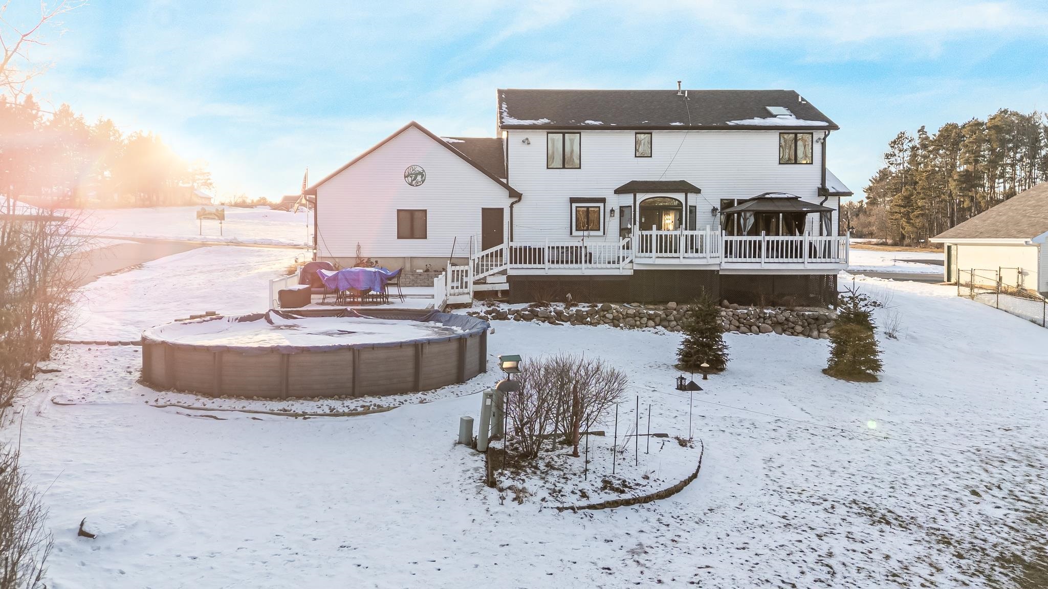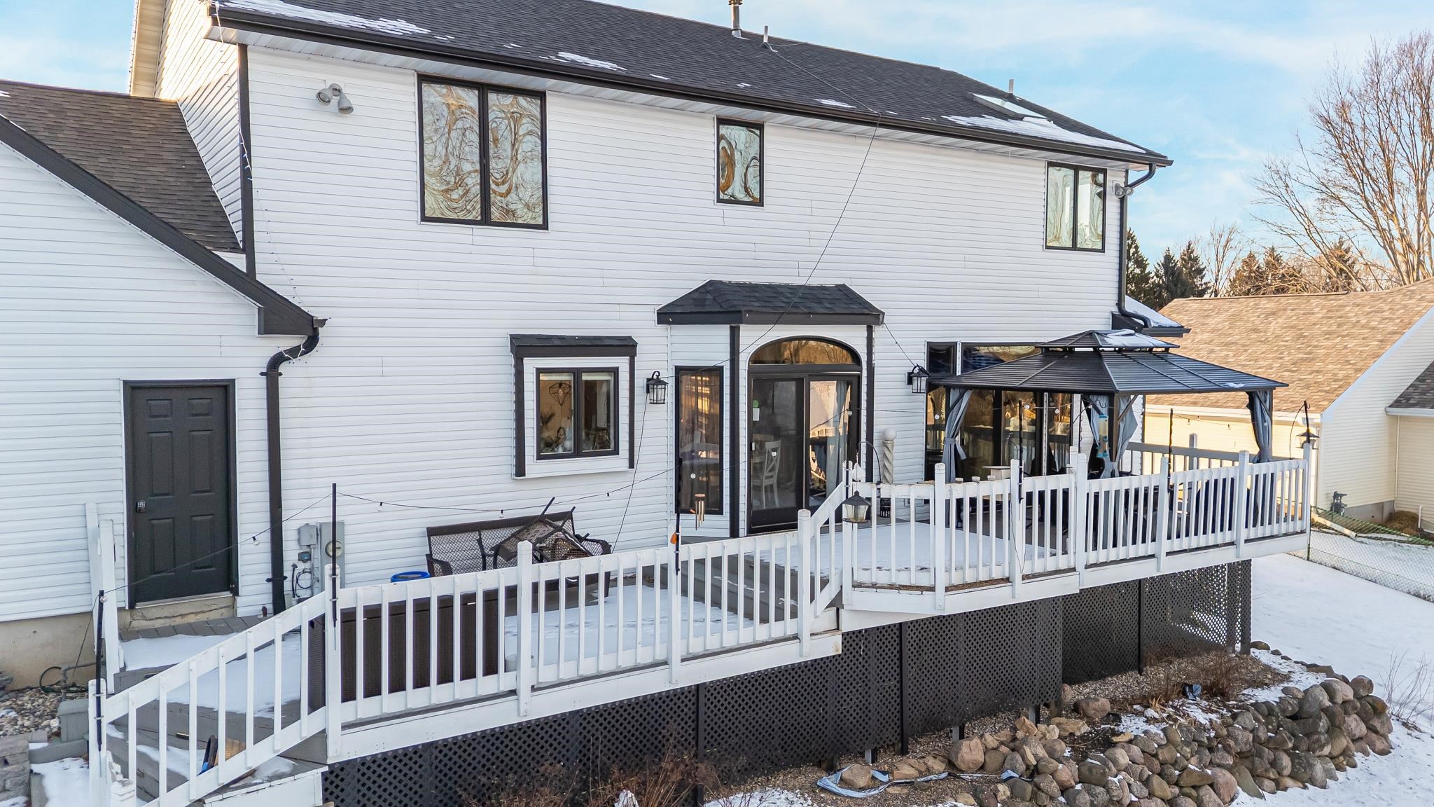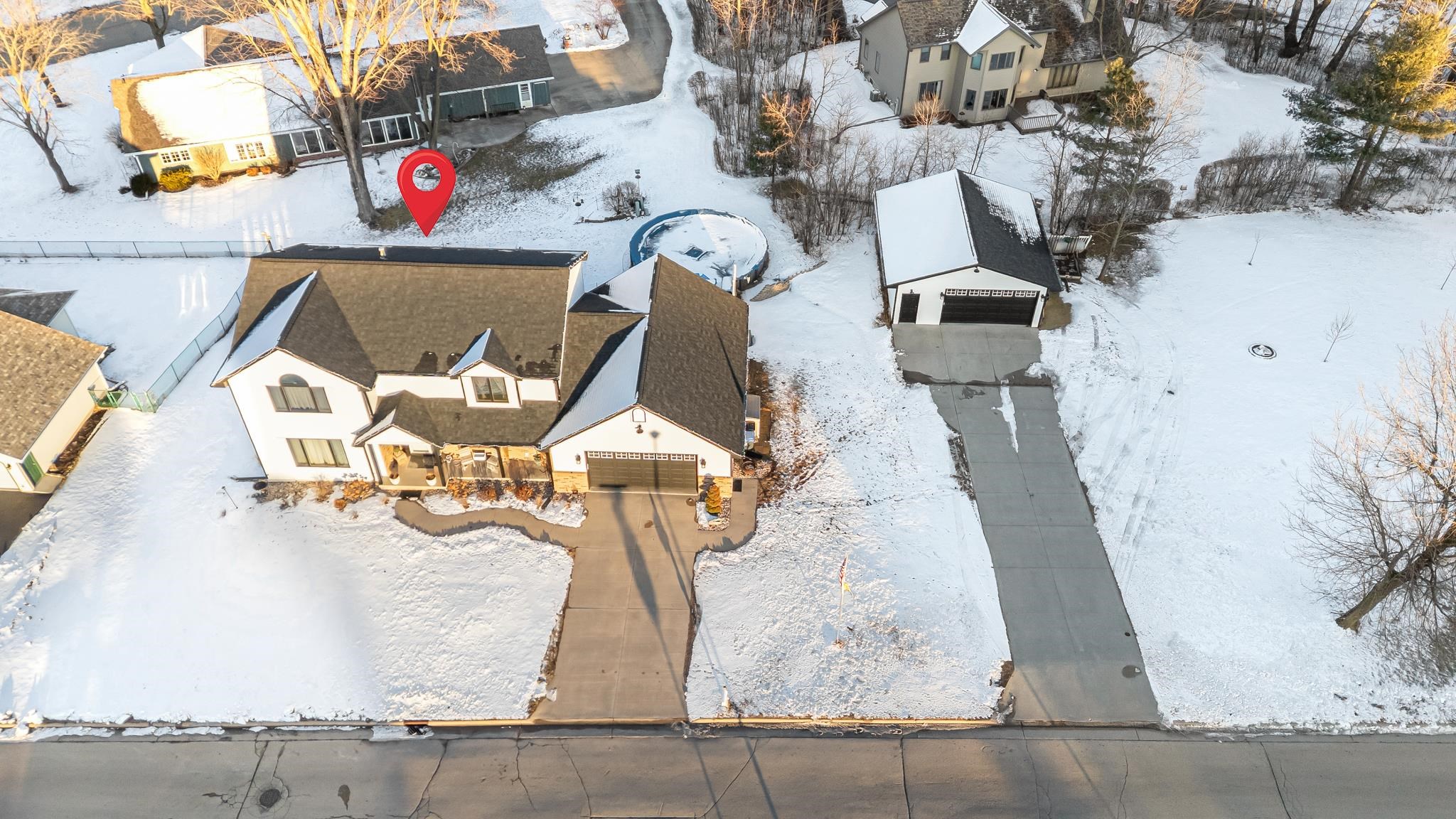 OPEN HOUSE Saturday February 28, 2026 from 11AM-1PM! Well maintained and tastefully updated 2-story home ready for new owners. Main floor features a spacious eat-in kitchen with great natural light flowing into the living room, plus access to the back deck and gazebo. Also includes first-floor laundry, formal dining room, & bonus office/den. Lower level offers a cozy family room and large unfinished utility/storage space. Upstairs you'll find spacious bedrooms, including a primary suite with cathedral ceilings, jacuzzi tub, walk-in shower, & walk-in closet. Backyard features a Carvin pool with pump, heater, lights, and waterfall included, plus 2 large garages. 2nd garage is heated & ready for all your hobby ideas. Don't miss your chance to tour this beautiful home- see you Saturday!