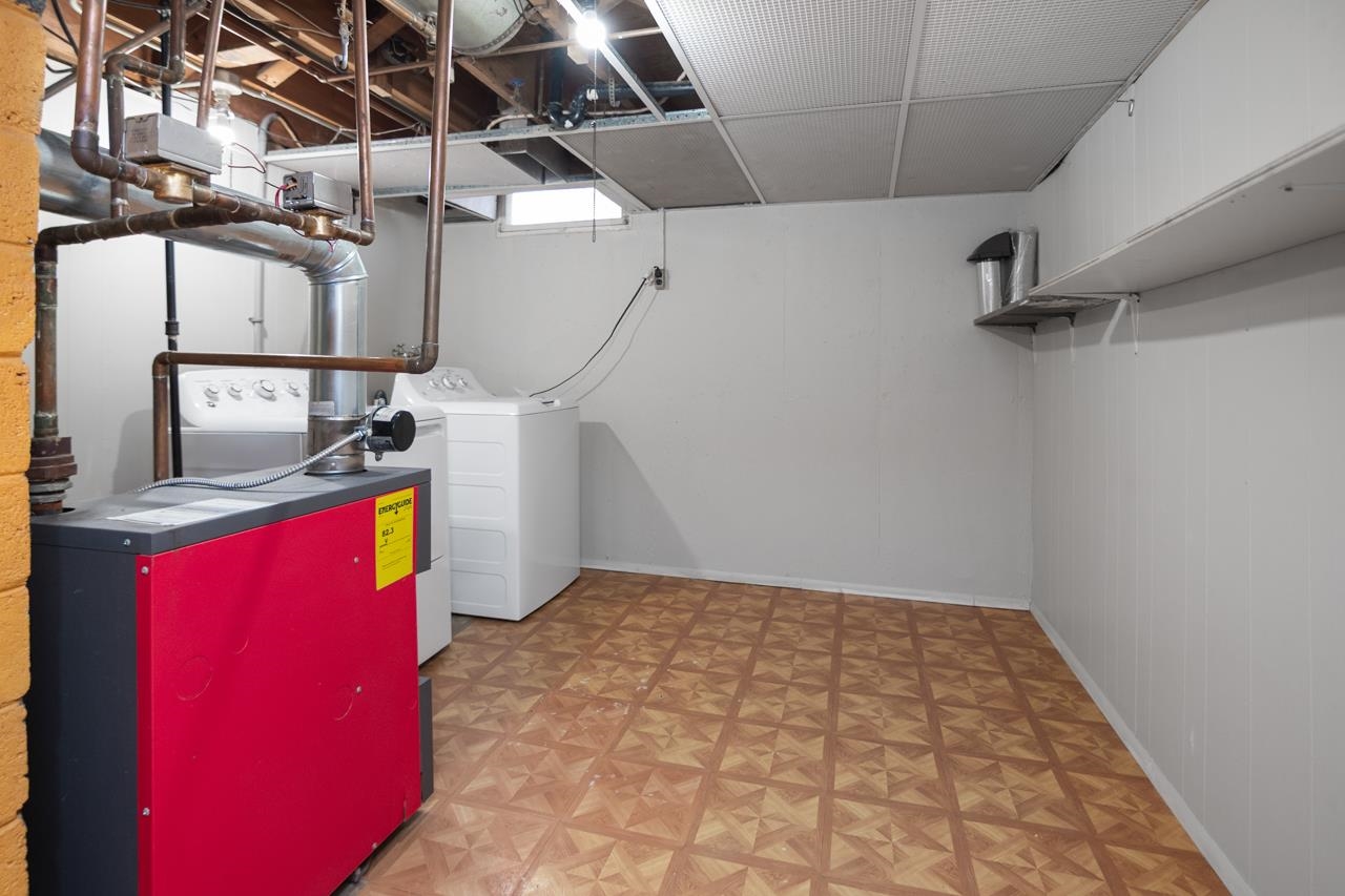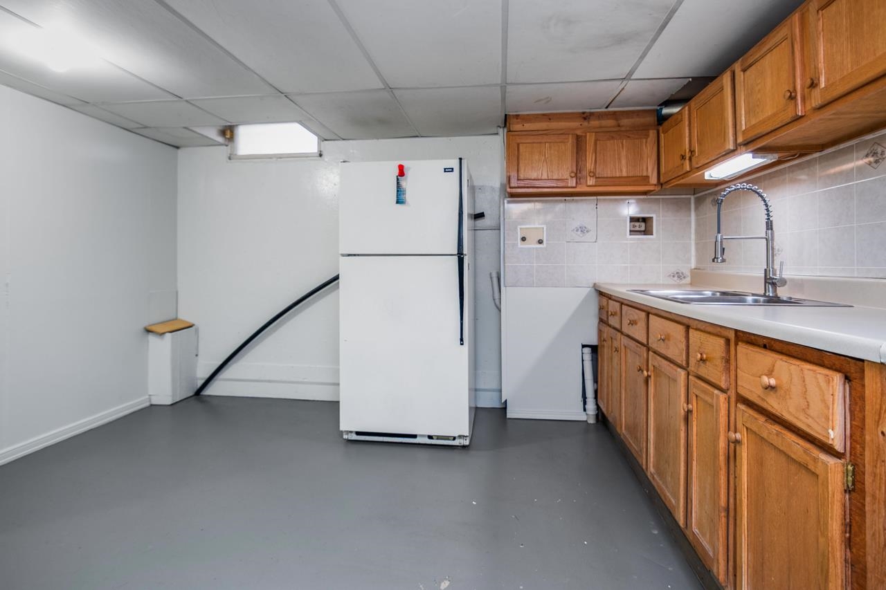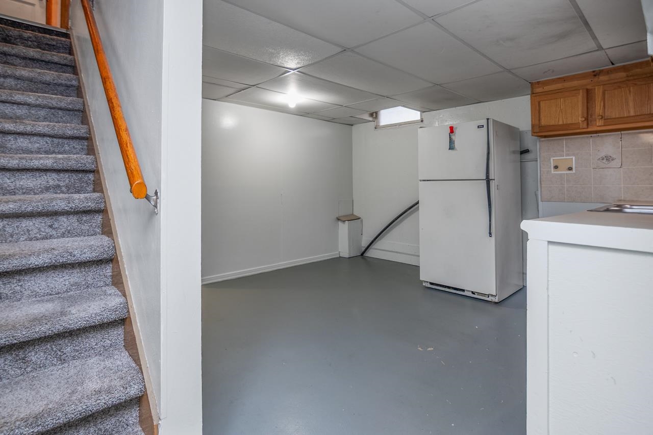 Refrigerator, washer & dryer, stove, refrigerator in basement.