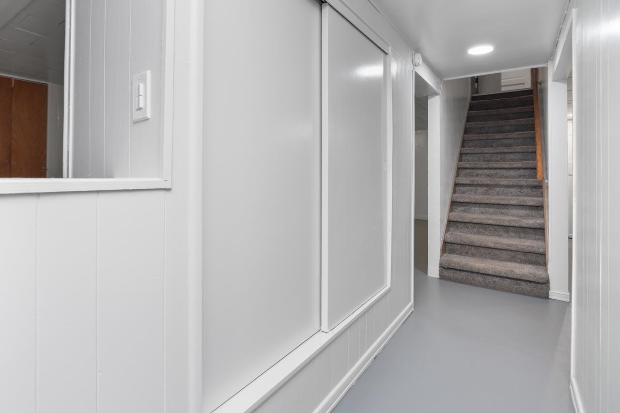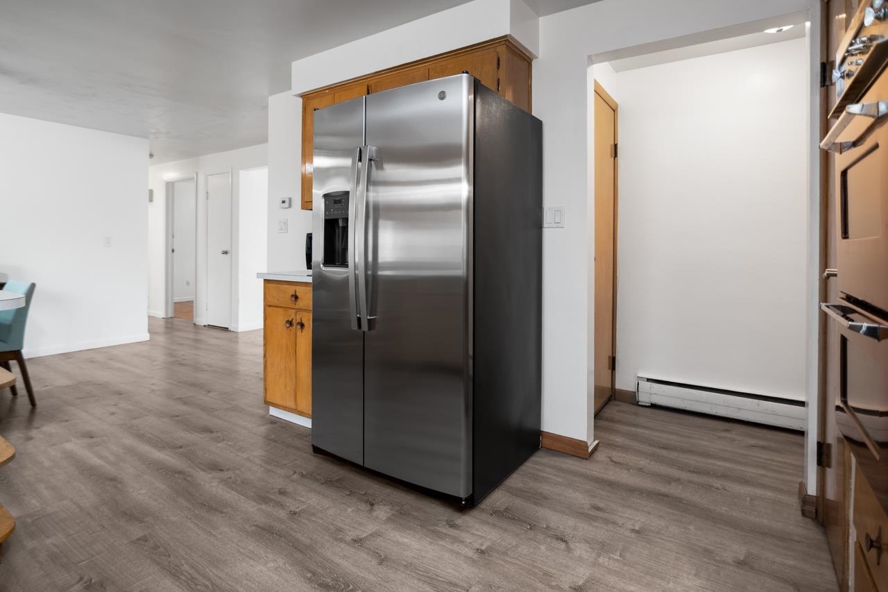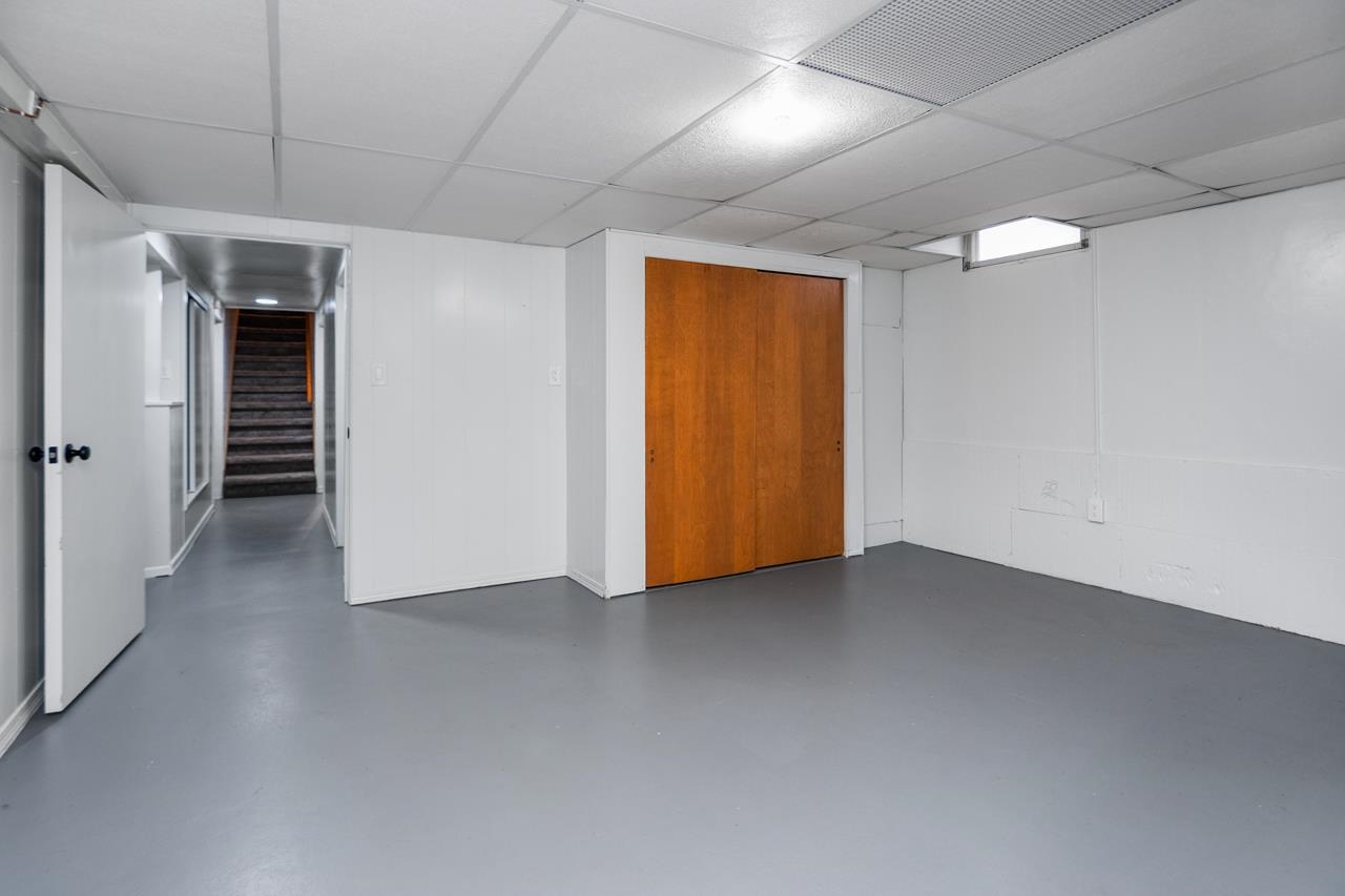 Refrigerator, washer & dryer, stove, refrigerator in basement.