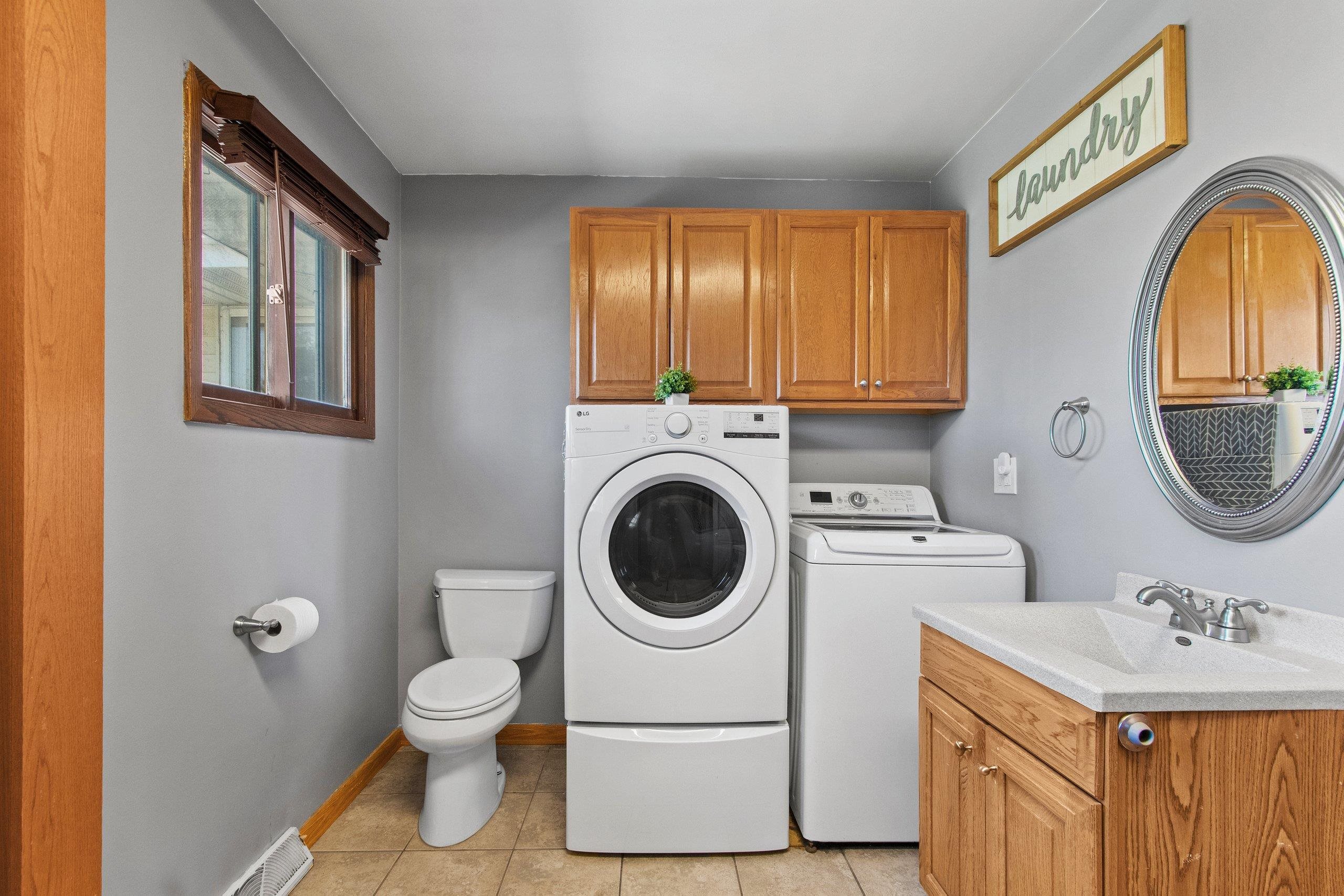 Washer, dryer and drapes
