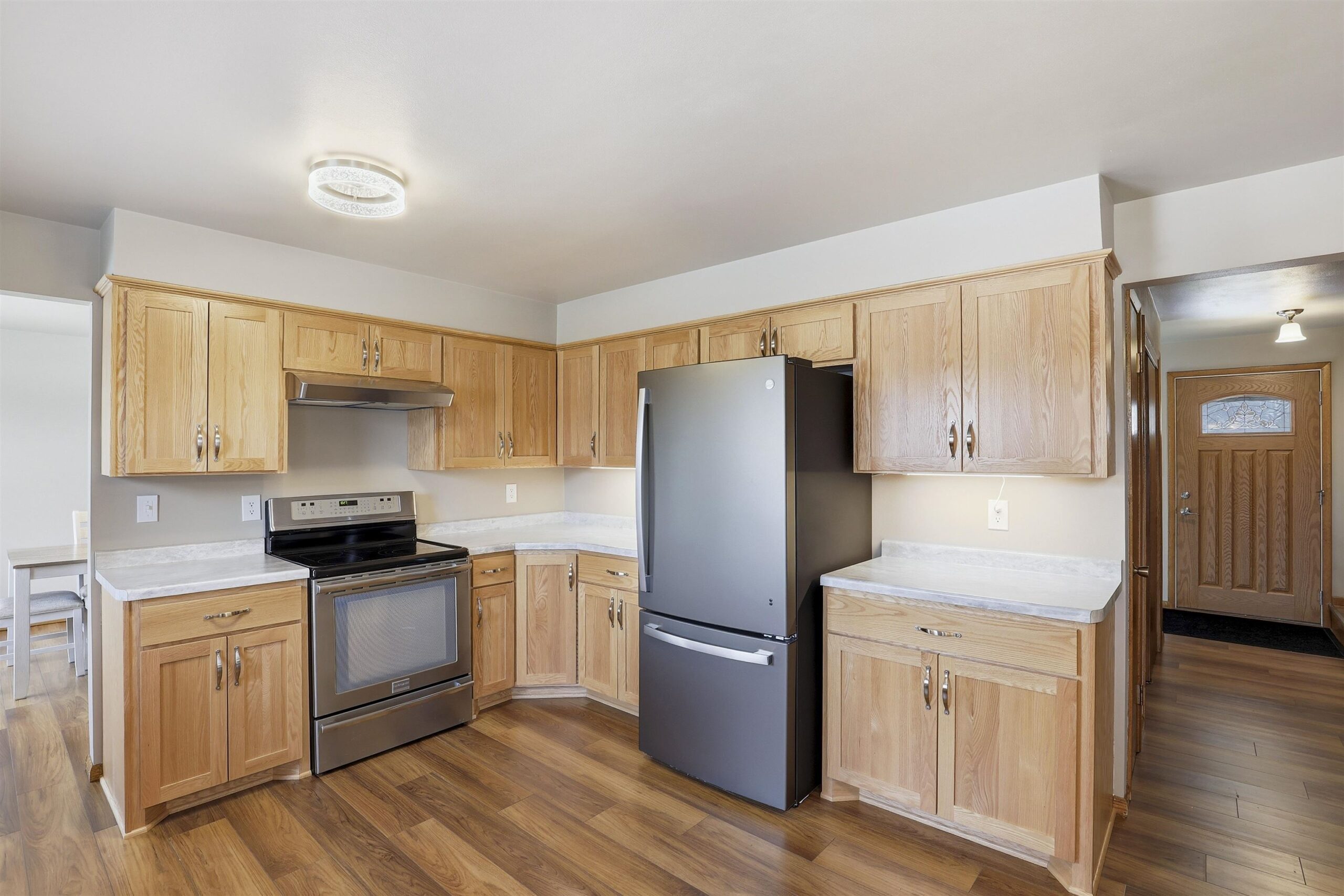Welcome to this spacious, clean, 4 bedroom home with a beautiful large kitchen with plenty of cabinets space. The back yard has plenty of room to enjoy those warm summer nights and includes a shed. Close to walking trails, disc golfing and O'hauser Park. Seller requires 48 hr for binding acceptance. Extra room in the basement has concrete flooring.