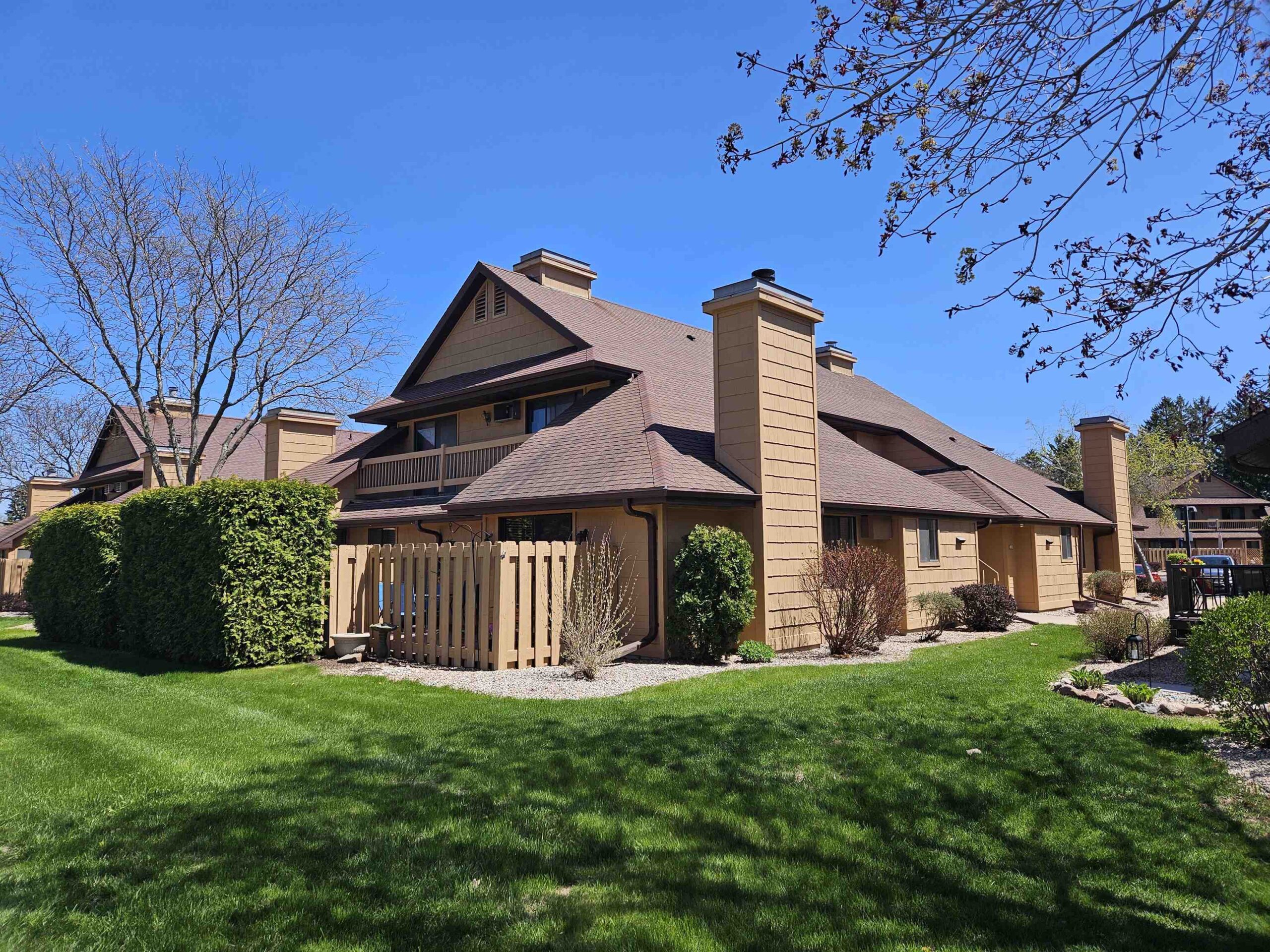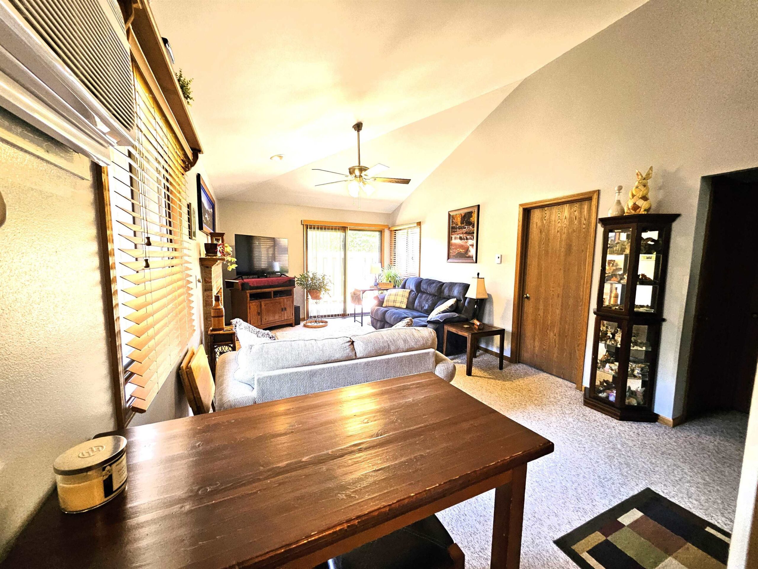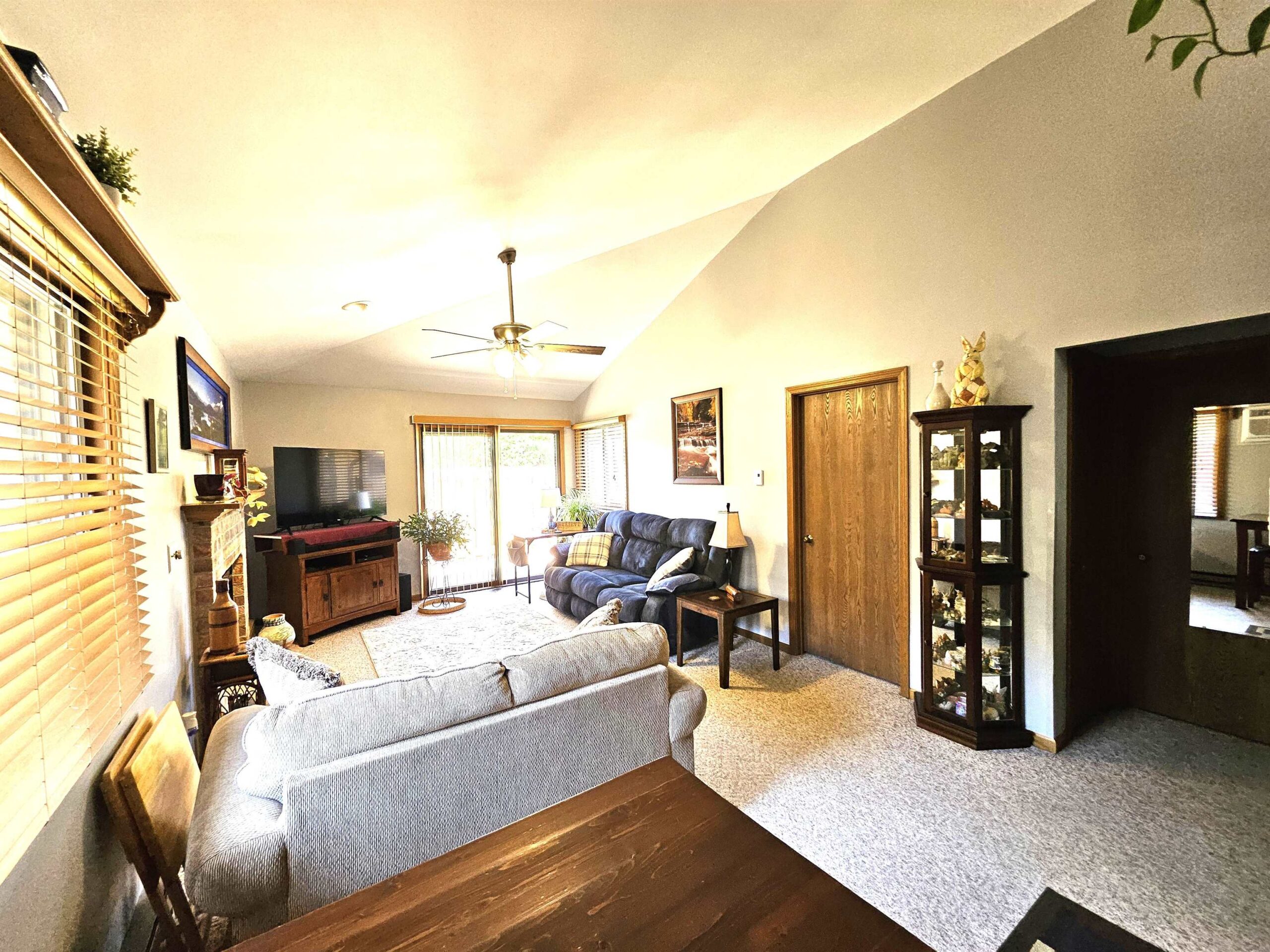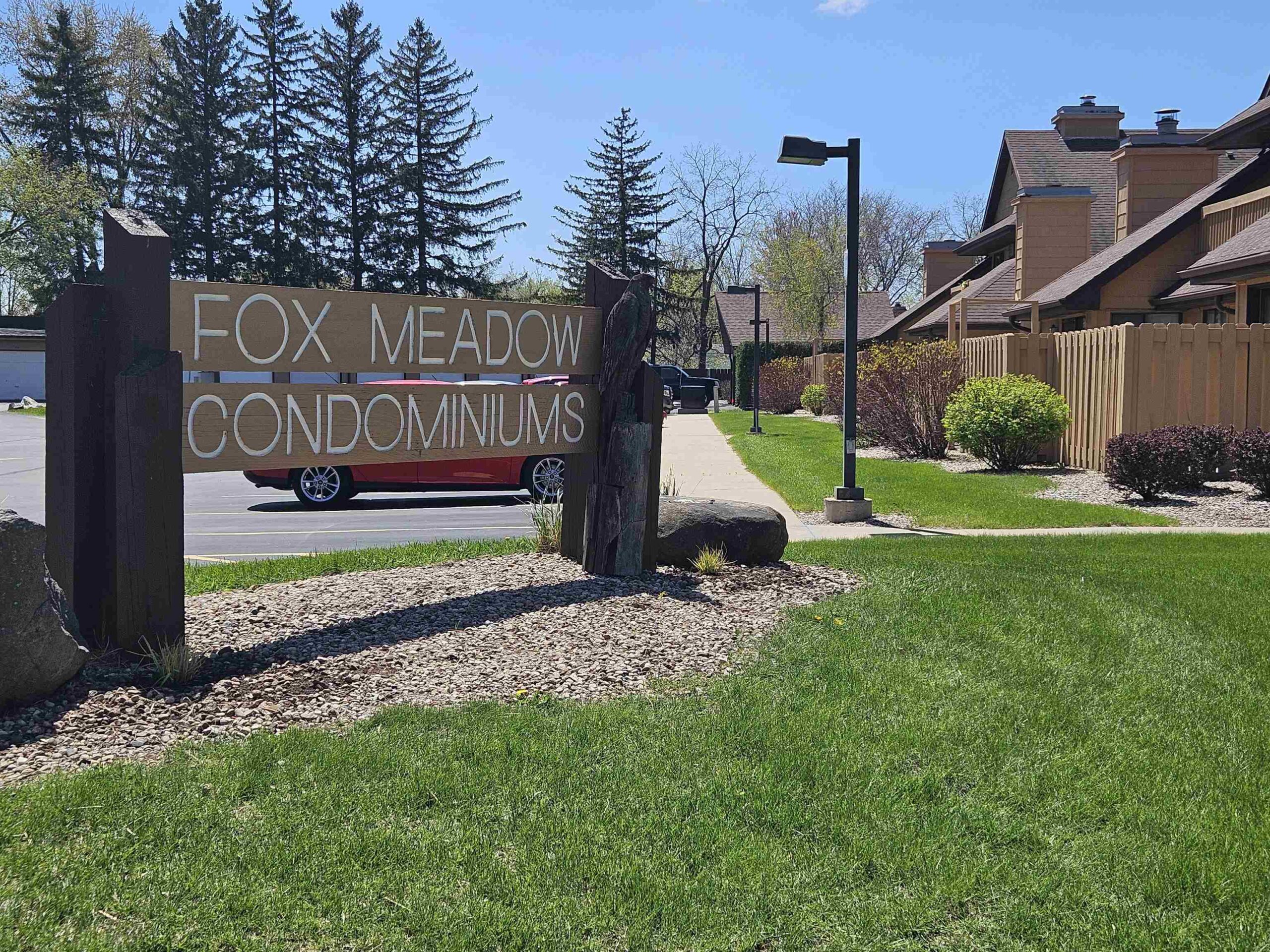 Enjoy hassle-free living in this charming 2-bed, 1-bath, zero-entry 1st floor condo in the beautifully maintained Fox Meadow Condos. The inviting eat-in kitchen features a full-size pantry and flows into a sun-drenched living area with soaring vaulted ceilings and a cozy wood-burning fireplace—perfect for relaxing evenings. The spacious primary suite boasts a generous walk-in closet and private access to the well-appointed en-suite bath. Step outside to your own patio retreat, ideal for morning coffee or unwinding at sunset. Additional perks include in-unit laundry, updated LVP flooring, newer A/C, water heater, and light fixtures. Freshly painted, truly move-in ready. One-car garage. Seller requires 48 hours for acceptance. Showings begin 5/12.
