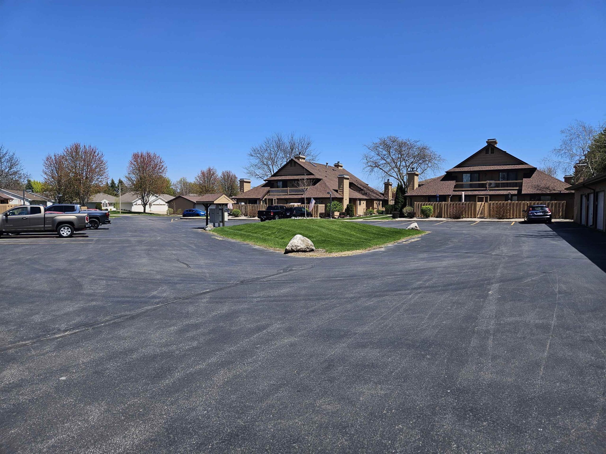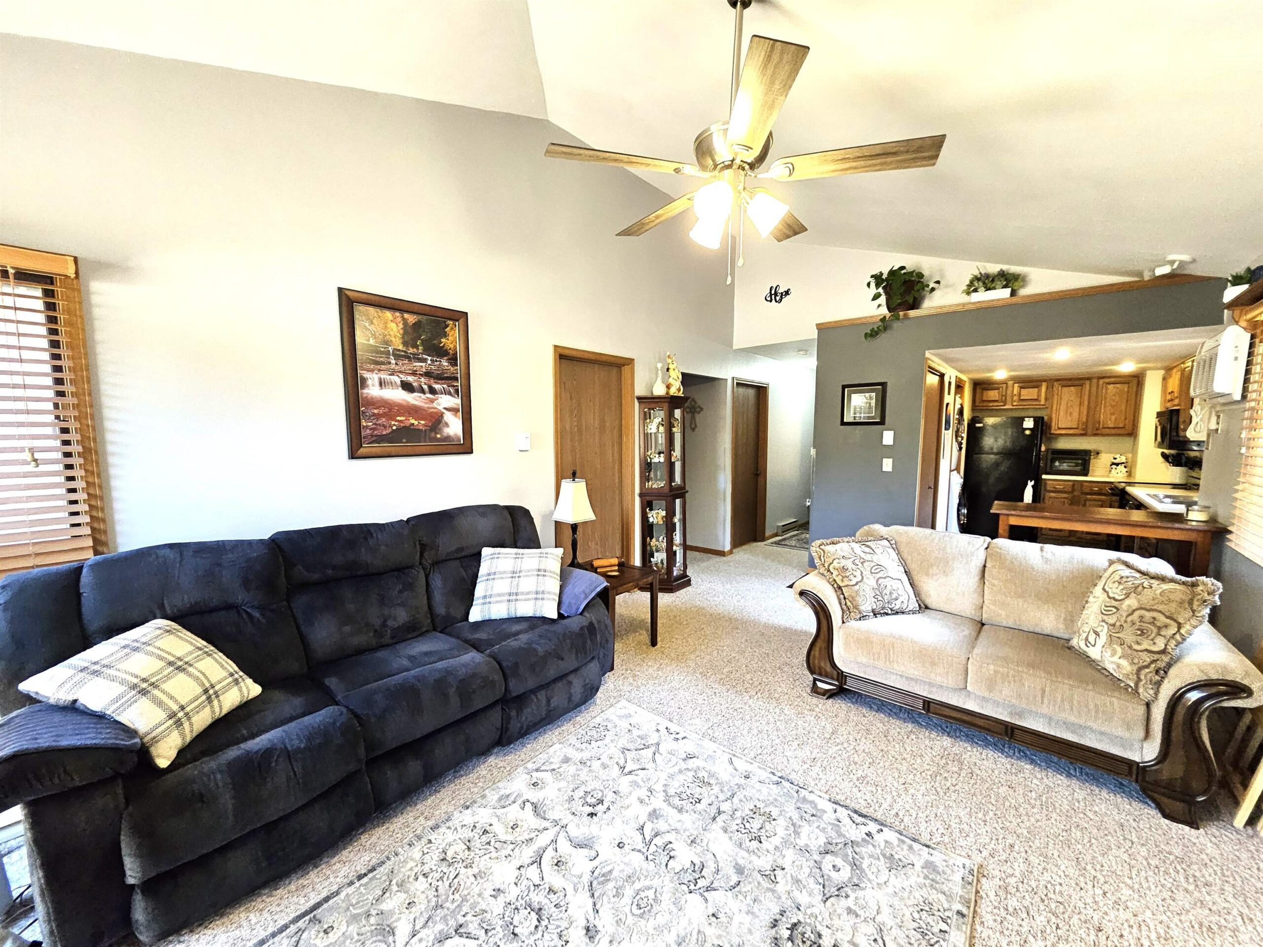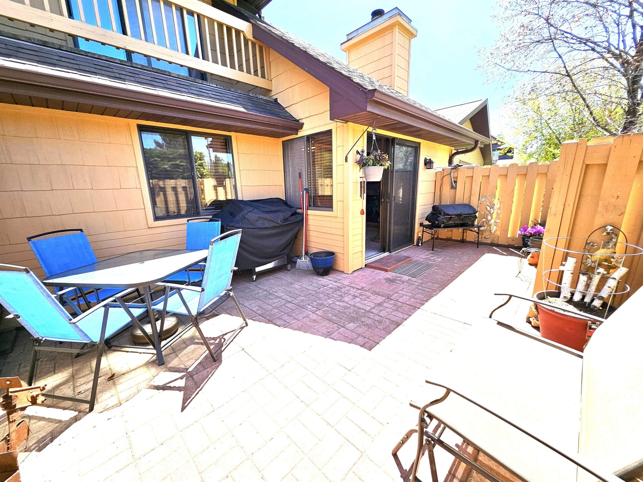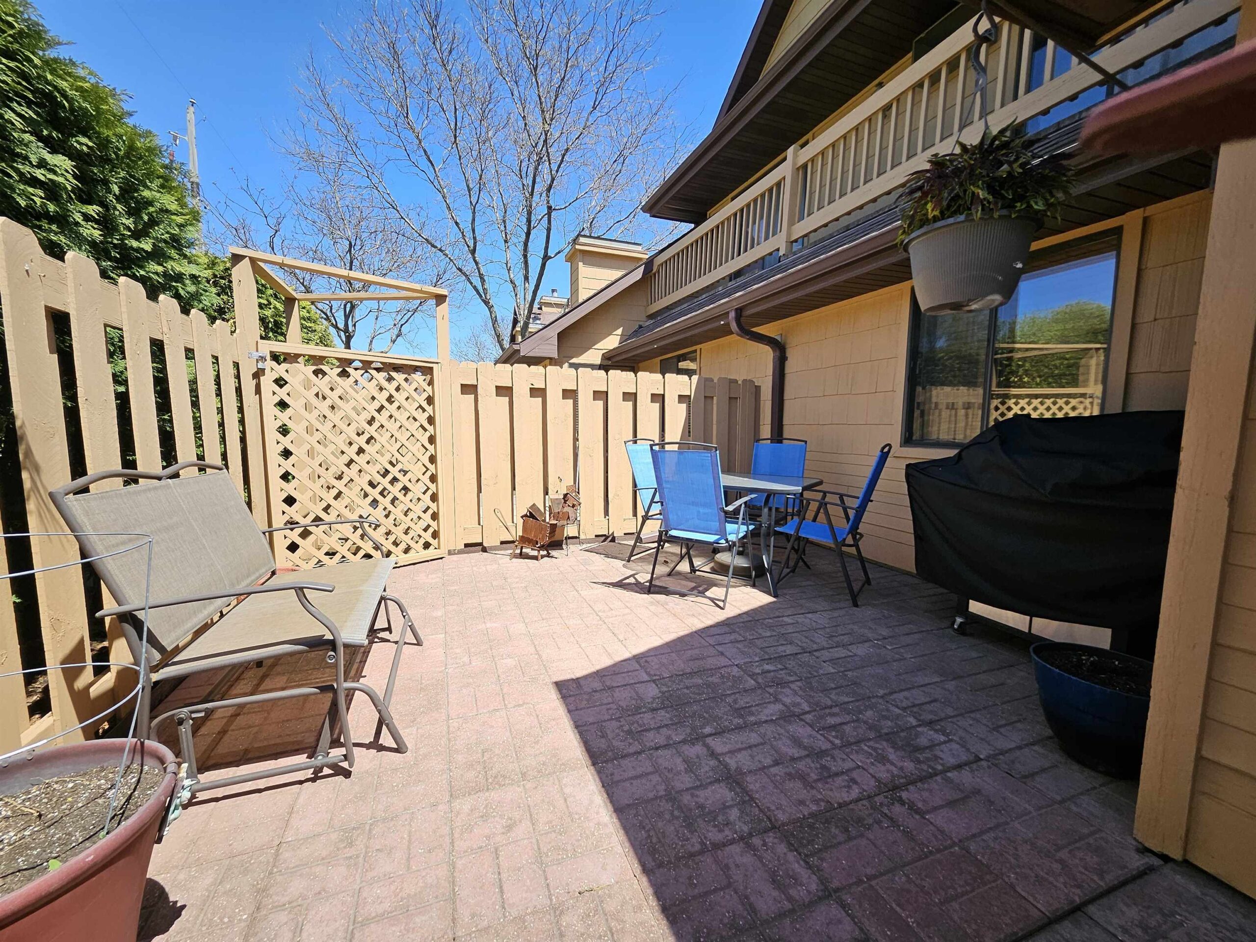 Enjoy hassle-free living in this charming 2-bed, 1-bath, zero-entry 1st floor condo in the beautifully maintained Fox Meadow Condos. The inviting eat-in kitchen features a full-size pantry and flows into a sun-drenched living area with soaring vaulted ceilings and a cozy wood-burning fireplace—perfect for relaxing evenings. The spacious primary suite boasts a generous walk-in closet and private access to the well-appointed en-suite bath. Step outside to your own patio retreat, ideal for morning coffee or unwinding at sunset. Additional perks include in-unit laundry, updated LVP flooring, newer A/C, water heater, and light fixtures. Freshly painted, truly move-in ready. One-car garage. Seller requires 48 hours for acceptance. Showings begin 5/12.