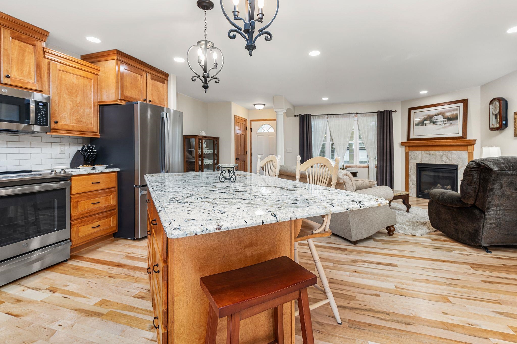 BETTER-THAN-NEW custom-built ranch constructed in 2023; Step inside & be greeted by exquisite finishes & thoughtful touches. The open concept, SPLIT-BEDROOM design creates an inviting atmosphere perfect for everyday living. Maple grade flooring graces the main level. Be wowed by the kitchen featuring stunning "Snowfall" granite countertops, CUSTOM soft-close cabinets & brushed stainless fixtures & appliance package. The FINISHED LOWER LEVEL is an entertainer's delight OR great IN-LAW SUITE with kitchenette/wet bar, granite countertops & custom-built cabinets + additional bedroom & FULL BATH. Meticulously crafted home truly has it all from finishes to thoughtful design. GENEROUS LOT with space to build an extra garage. CALL TODAY to schedule a showing!!