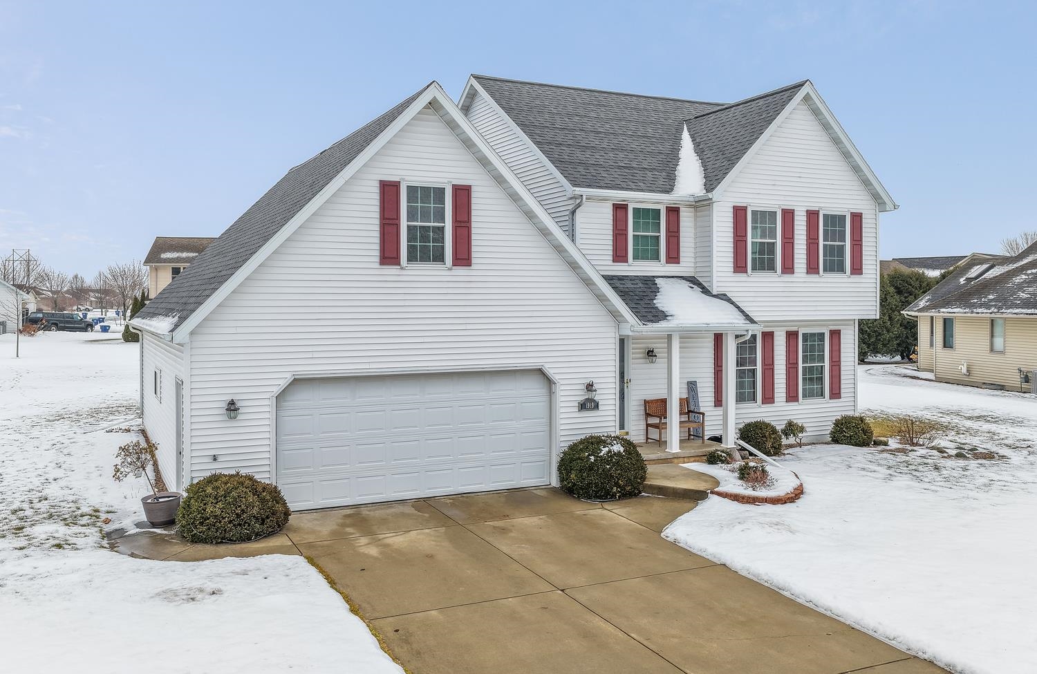 Located near parks & McAuliffe school, this 3BR/2.5BR colonial features living room w/ 2-way shades, gas fireplace & kitchen w/ hw floor, appliances, island, granite counters! Sliding door opens from dining area to composite deck & open back yard. Convenient 1st floor laundry & half-bath includes washer+dryer! Primary bedroom w/ vaulted ceiling, twin closets & en-suite bath w/ shower. Bedrooms 2 & 3 share a 2nd full bath. Nearby, the 12x32 bonus room offers nearly 400 sqft of space for relaxation, recreation, a home office, or all your crafts & hobbies! Clean, dry LL offers great storage! Extra-deep 2.5 stall garage. Roof replaced 2021. Super sharp move-in ready home!
