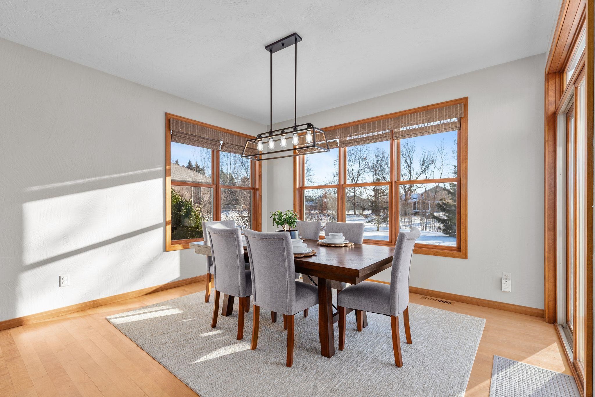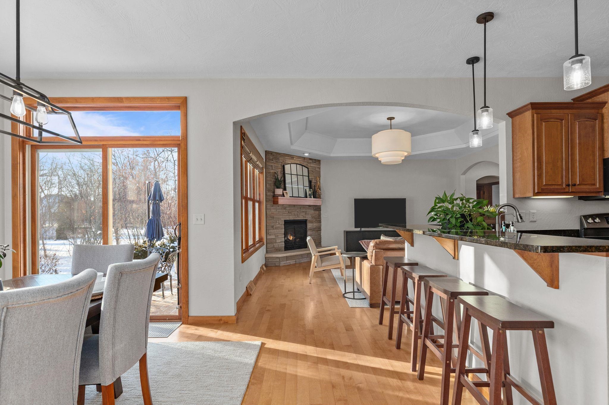 Former PARADE HOME located just 1.5 miles from Lake Butte des Morts Boat & Kayak Landing. This Open Concept Ranch offers 5 bedrooms (split bedroom design), 3.5 baths & 3 Car Heated Garage with epoxy floor & basement access. Rich hardwood floors highlight the sun-filled living room with architectural accents, flowing into the spacious dining area overlooking the extensively landscaped backyard. Gourmet kitchen features granite countertops, maple cabinetry, peninsula, & walk-in pantry. The primary suite offers a walk-in closet and updated ensuite with dual sinks & walk-in shower. Gorgeous lockers and landing area, powder room, and first-floor laundry. The finished lower level offers generous space for recreation & entertaining, perfect for a golf simulator, pool table, or media center.