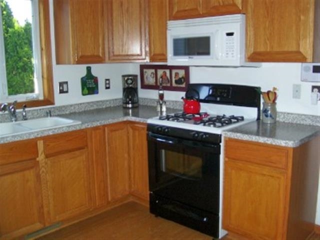 WOW! Gorgeous 3 BR, 2BA newer ranch on south side with vaulted ceilings, master bedroom suite, whirlpool tub, first floor laundry, oak kitchen with breakfast bar, pantry and built in desk area. Spotless throughout and move in ready. Two car attached garage with soft water for washing cars. Full, clean, dry basement stubbed for bath. Landscaped, fenced lot with perennials, garden area, berries, deck and paved patio. Furnace only 5 years old. Priced below assessed value for quick sale.