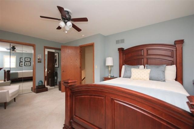 Beautifully updated tri-level home on cul de sac lot w/mature trees & gorgeous landscaping! Oversized 2-car garage! Lovely, spacious stamped concrete patio becomes a hidden room in summer! Inviting living room w/gas fireplace, laminate wood flooring, vaulted ceilings! Charming kitchen w/craftsman-style cabinets, tile backsplash, tile floors, stainless & black appliances! Huge 18x12 master, finished lower level w/surround sound, fashionably updated baths! Big laundry room/office area! See list of updates!